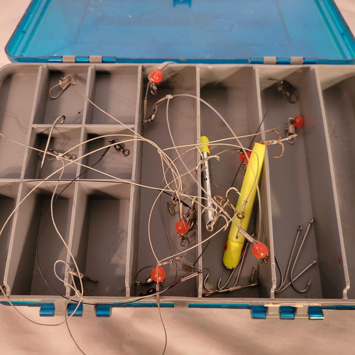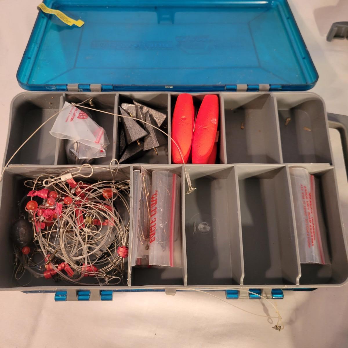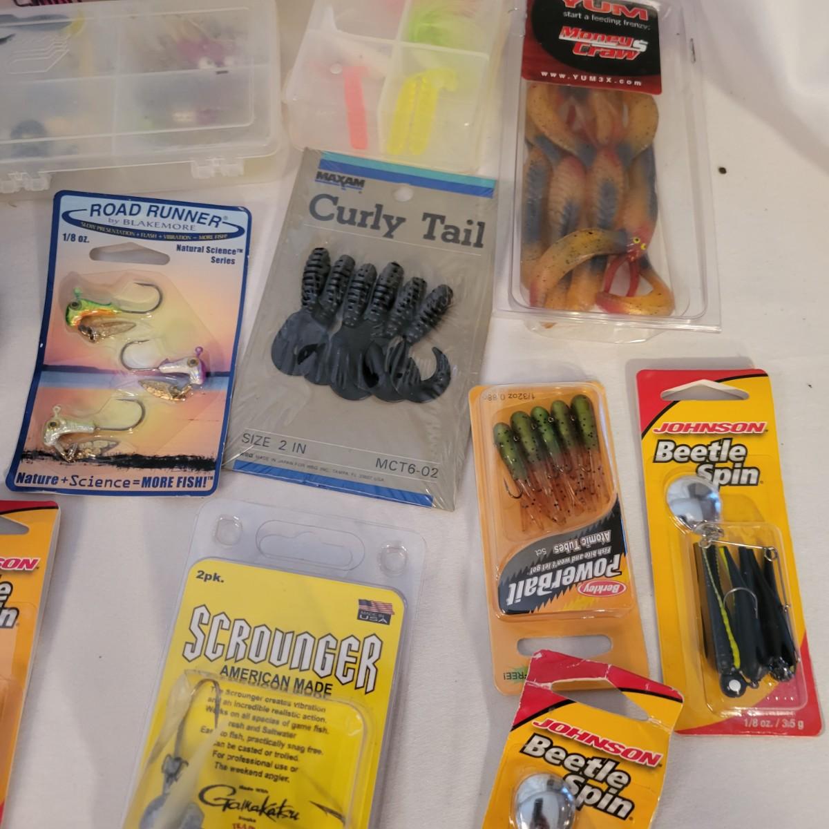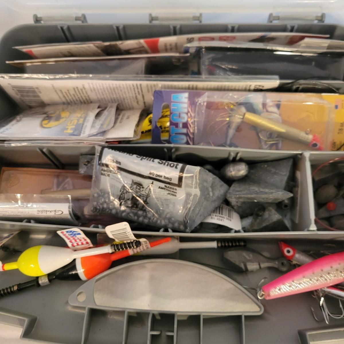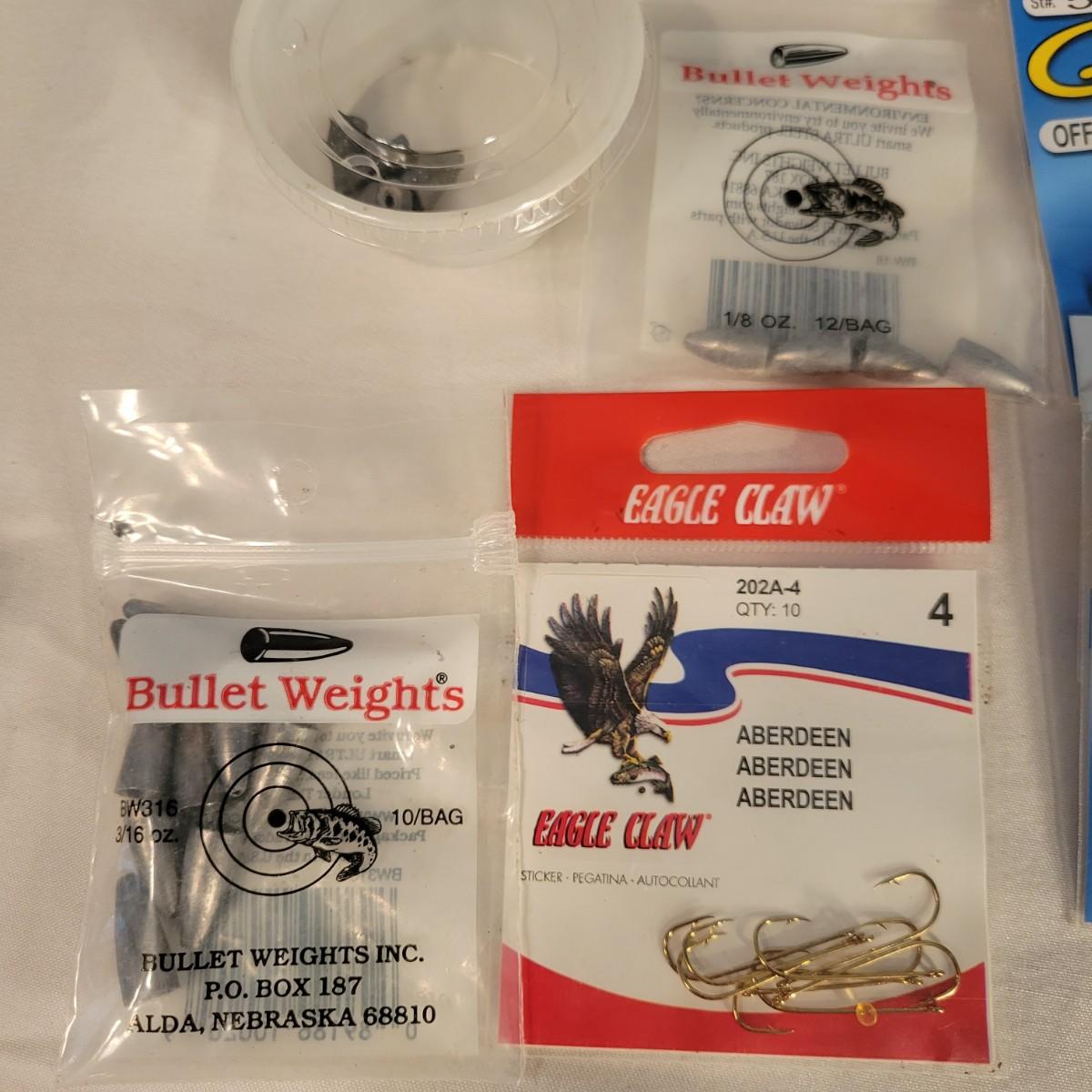 A large assortment of fishing gear, lures, reels and more in good condition. Many items are new and unused. Includes an assortment of crankbaits, soft plastics, jigs, jig heads and tackle boxes. A multitude of different hooks, sinkers, bobbers and leaders are also included. Four bait casting reels, a fly reel, a hand net, a casting net and much more. The grey tackle box with the clear top measures approximately 12.5" x 10" x 2". Shipping available. Shipping can be costly. We suggest calling our local UPS with dimensions and getting an estimate before bidding: (828) 252-6930