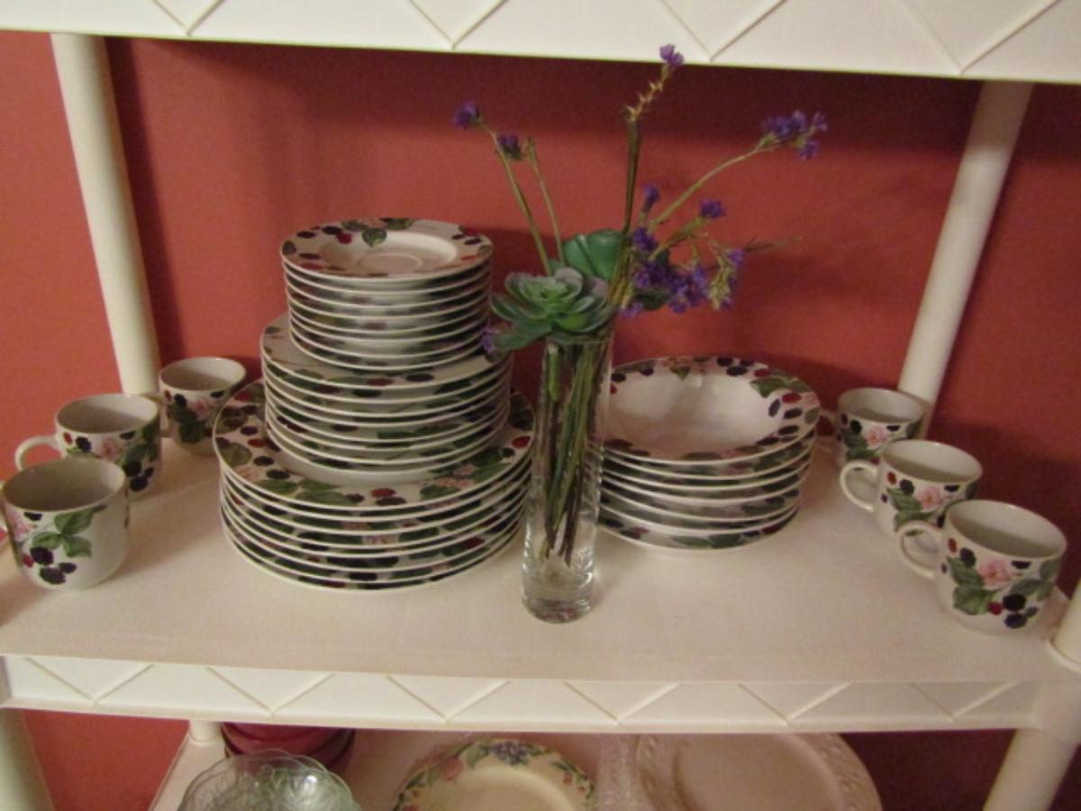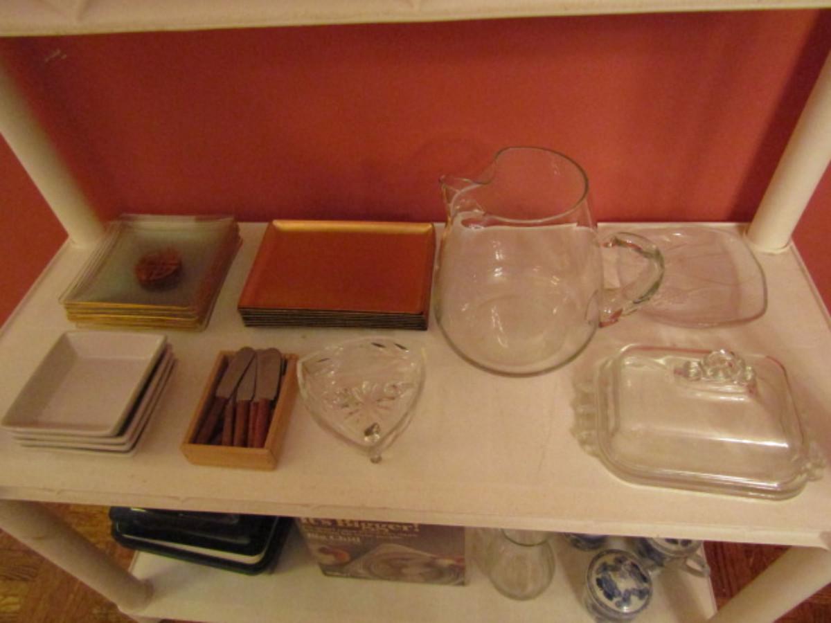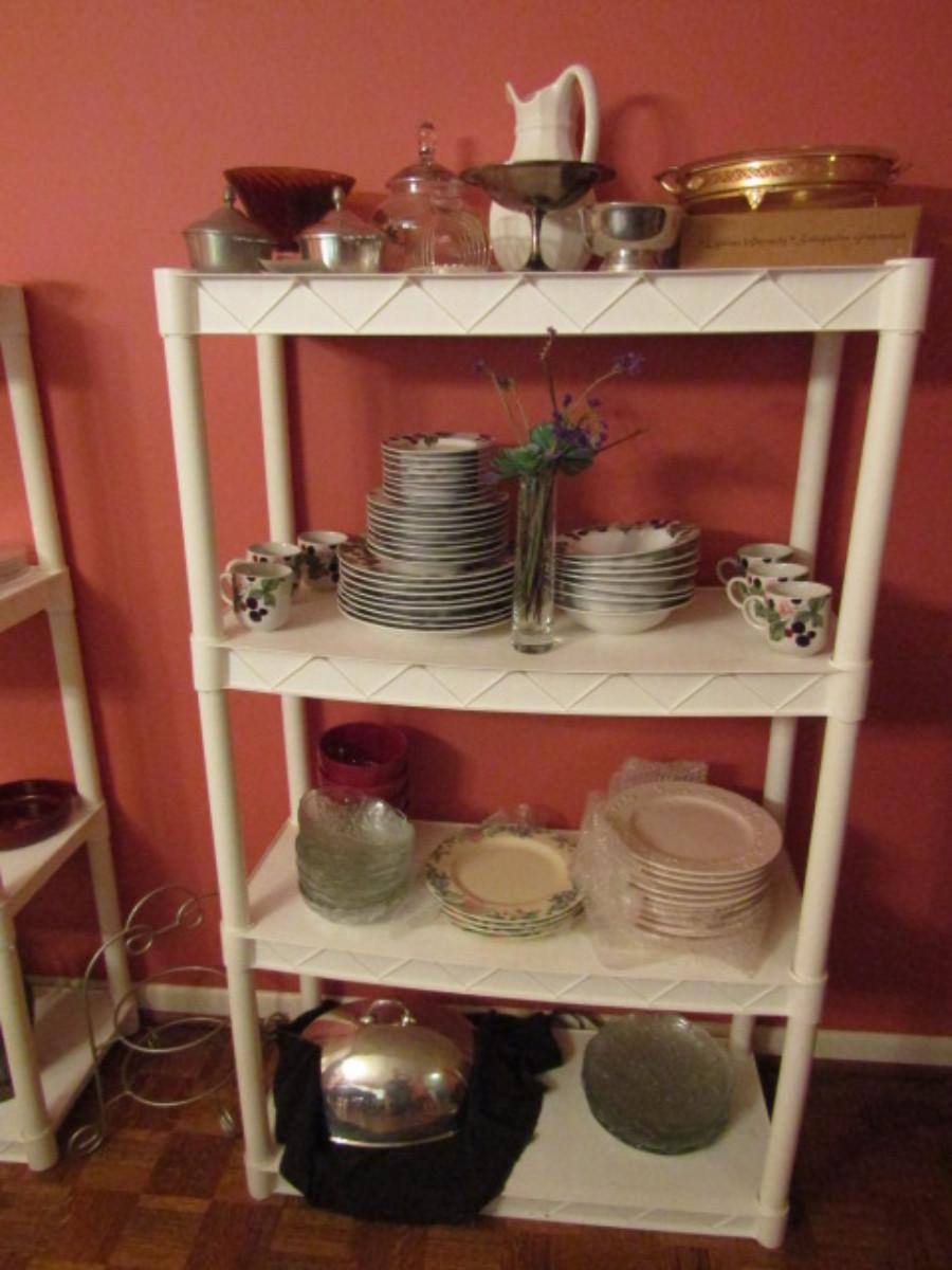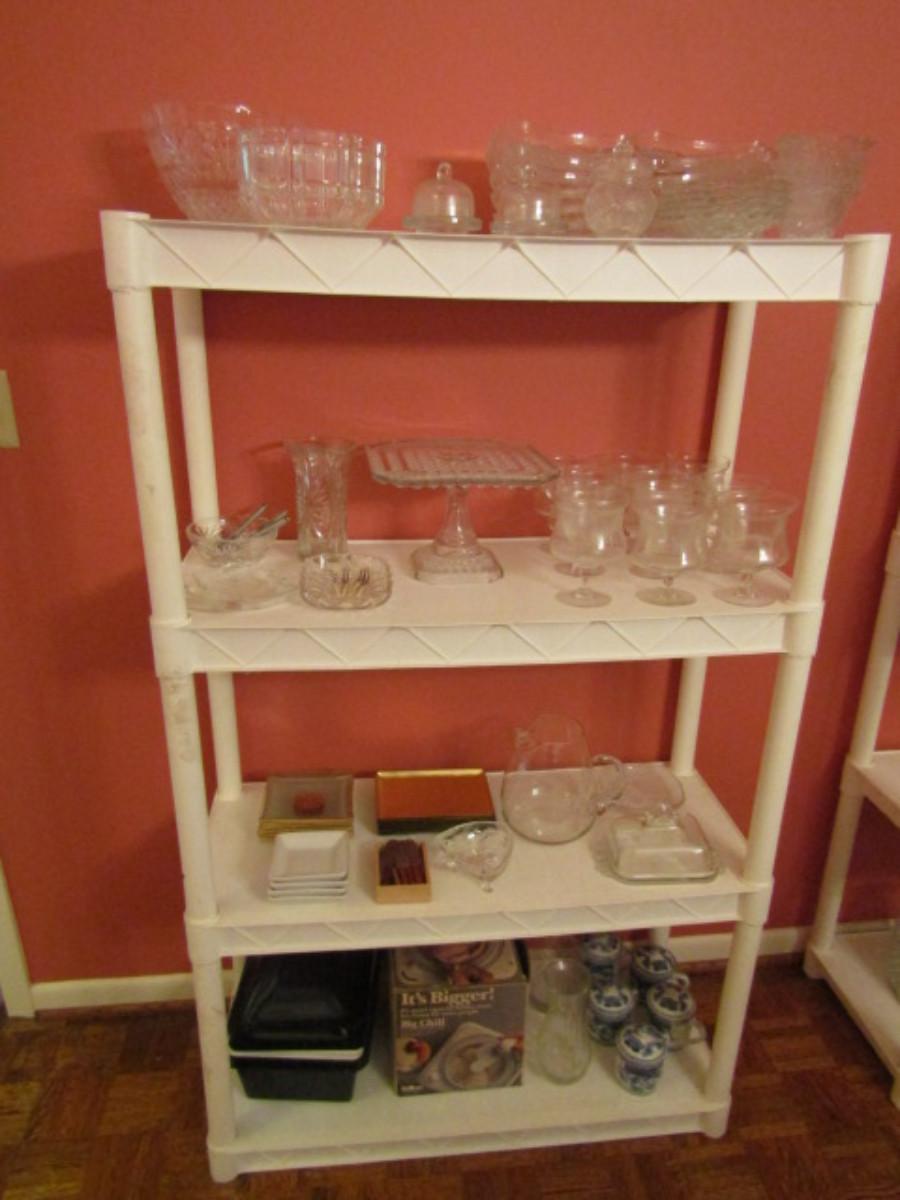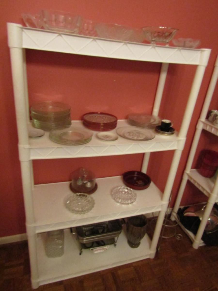 Large Assortment of Dishes and Glassware (Shelving Not Included). Please see all pictures.