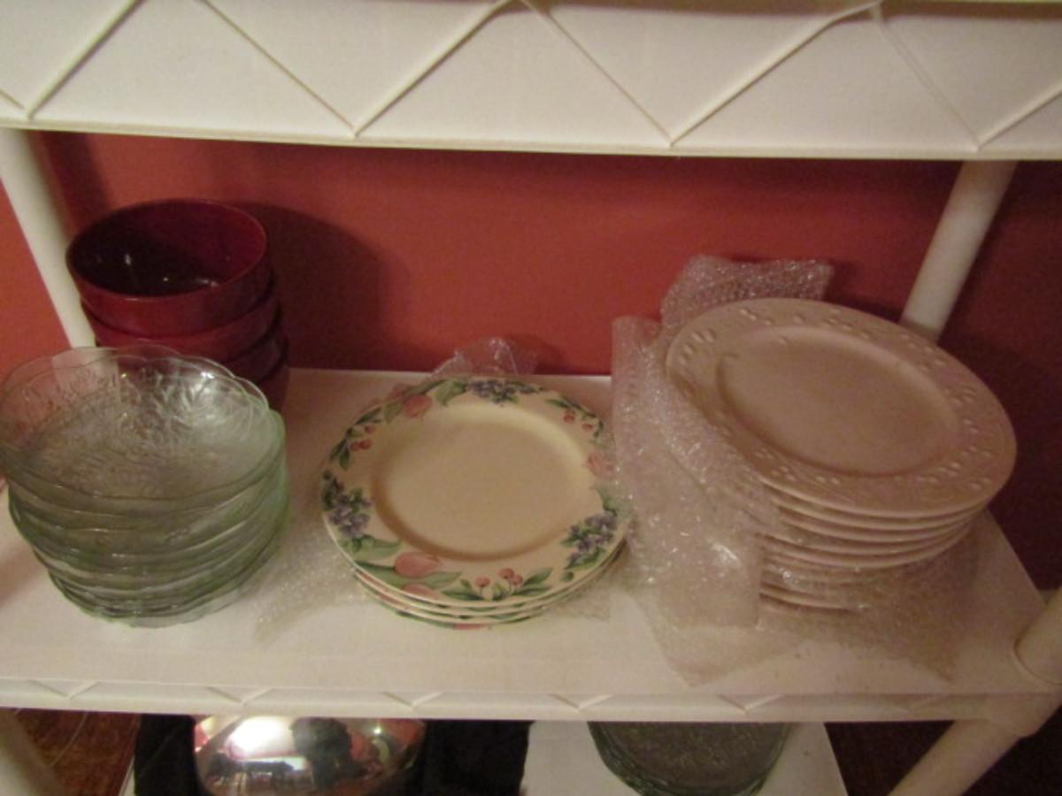 Large Assortment of Dishes and Glassware (Shelving Not Included)