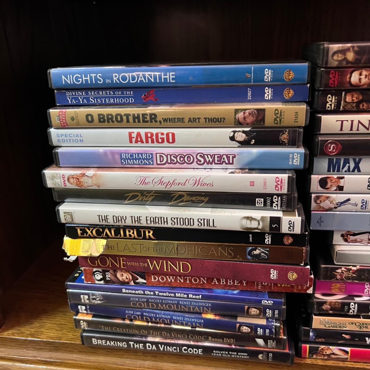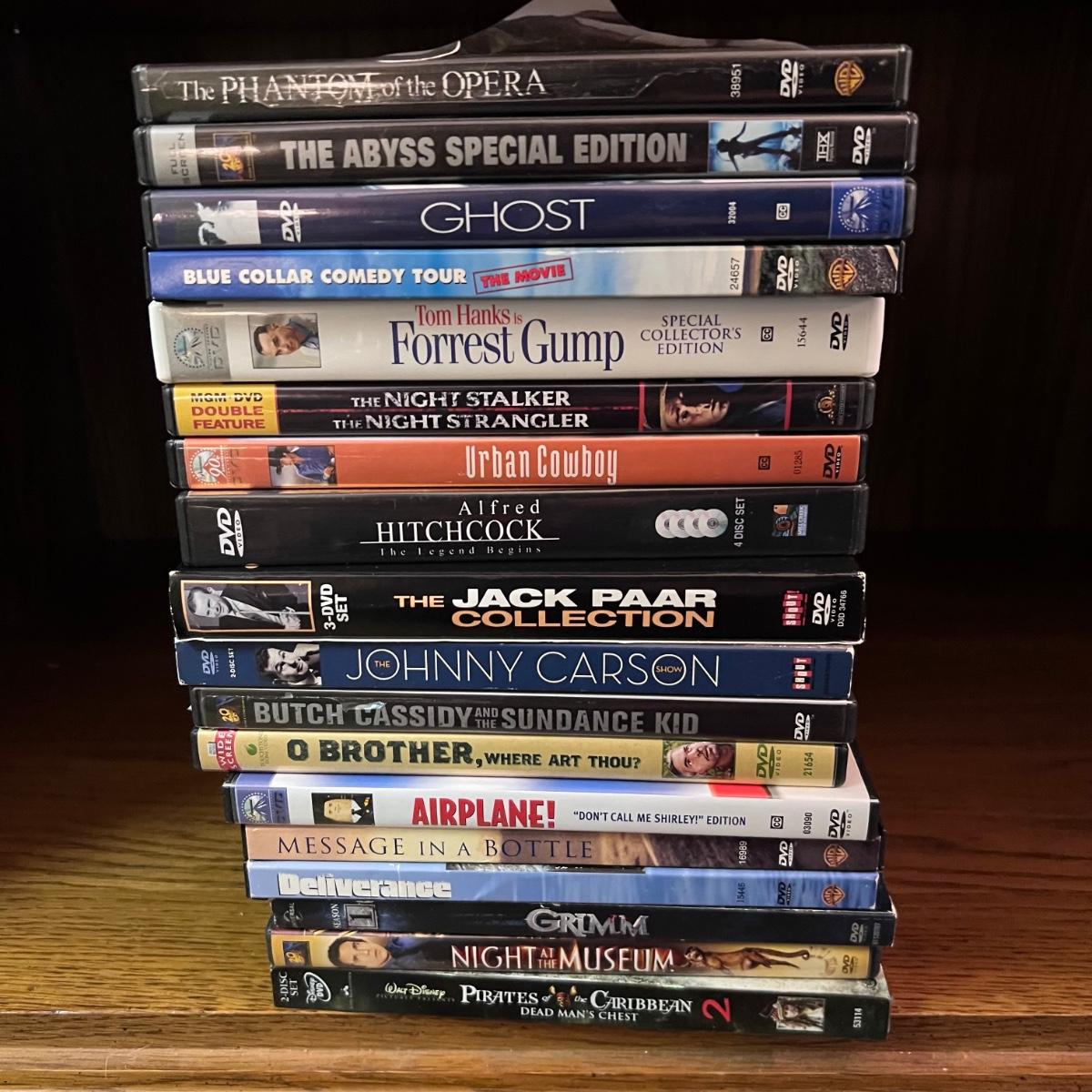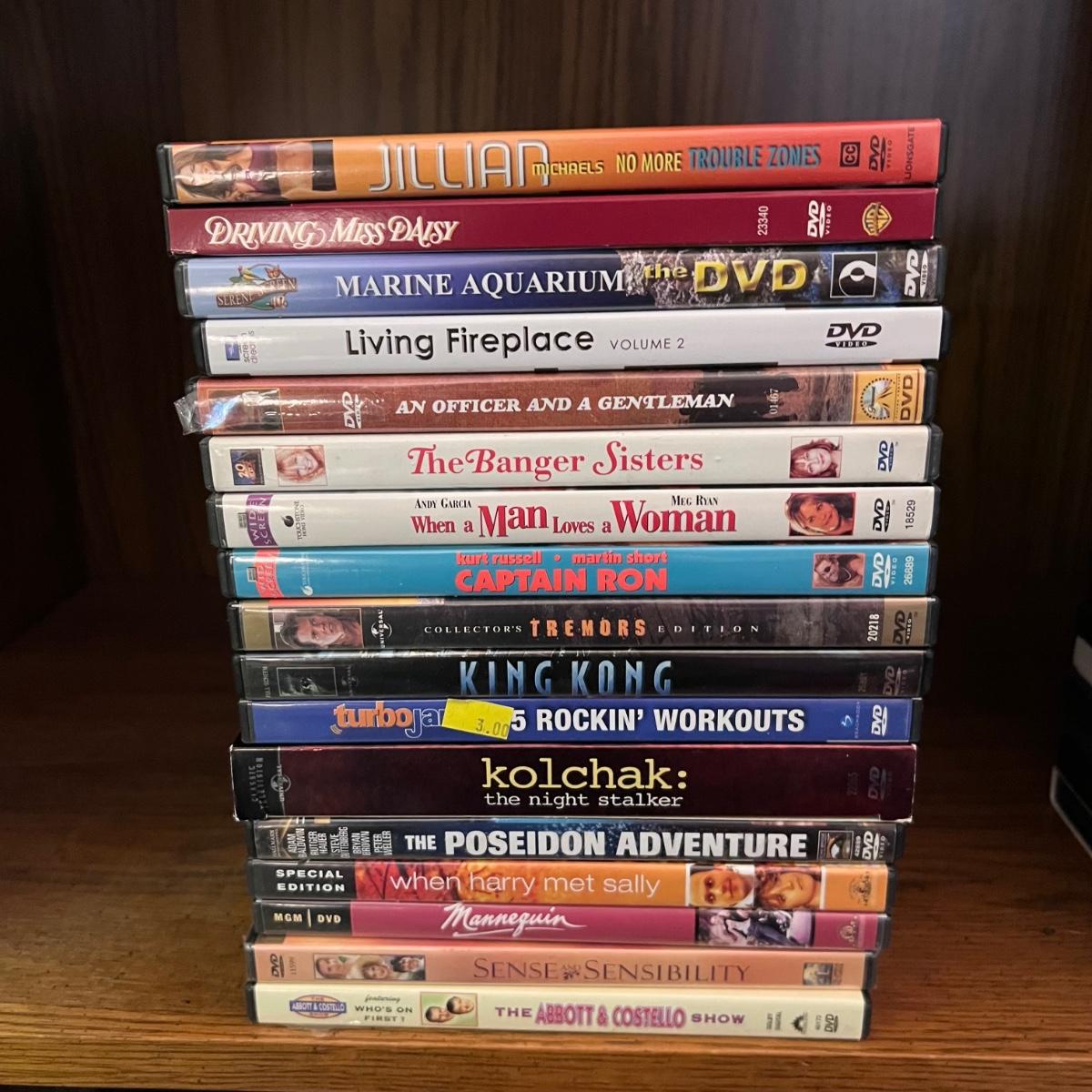 90 plus DVDs includes a couple that are Blu-ray. Lots of different genres, so there is something for everyone, see pics for full inventory. Not every case was opened to see if the disc was inside.