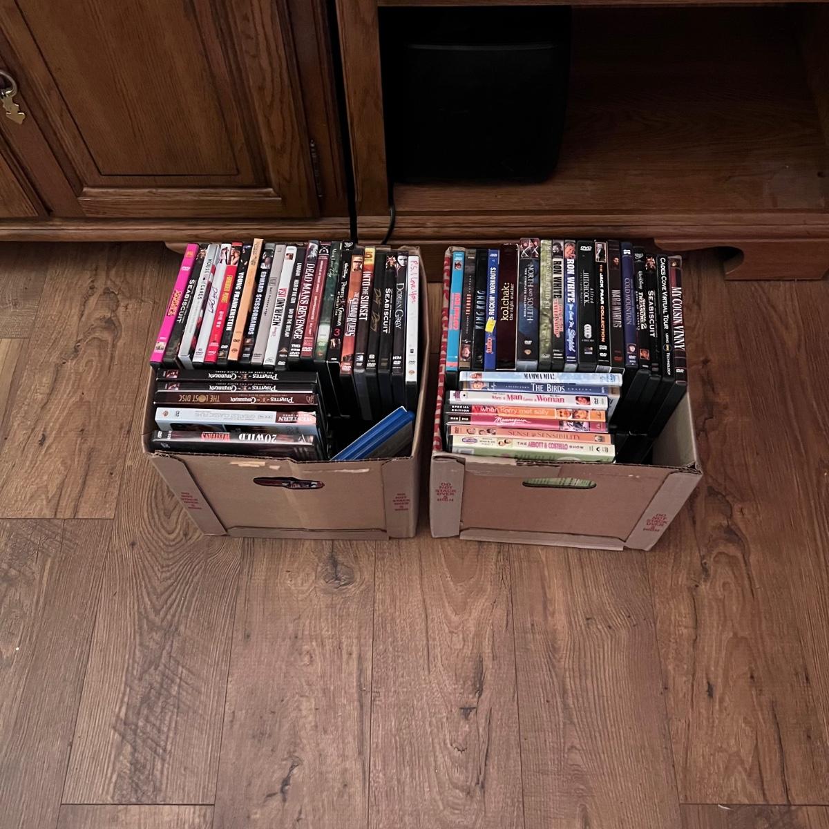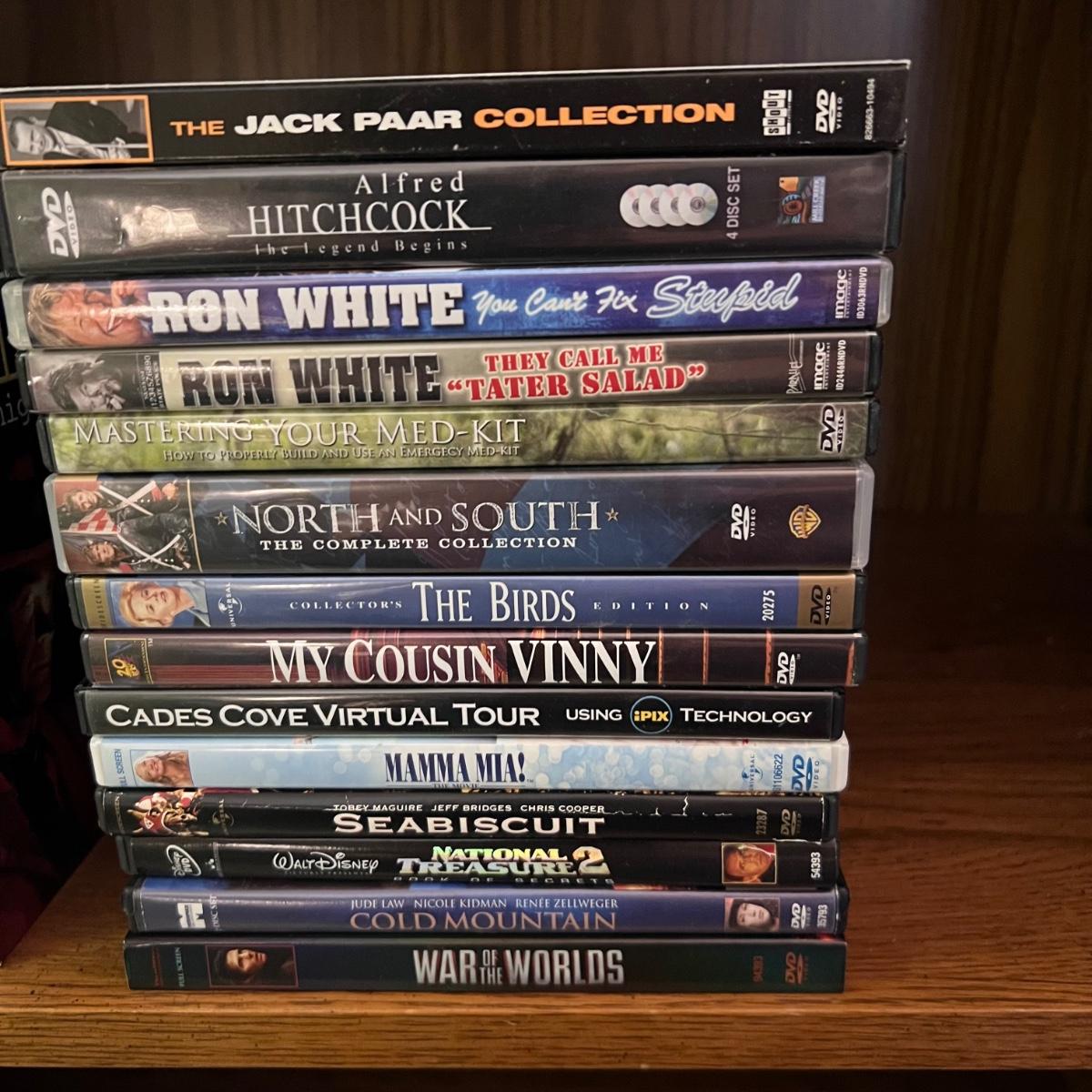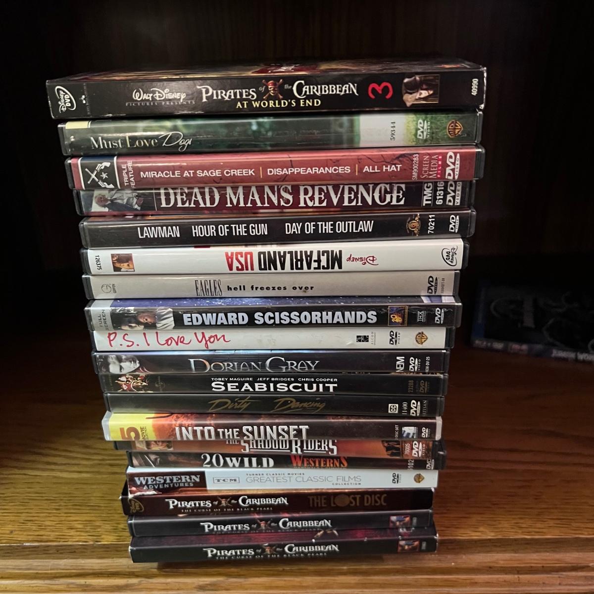 90 plus DVDs includes a couple that are Blu-ray. Lots of different genres, so there is something for everyone, see pics for full inventory. Not every case was opened to see if the disc was inside.