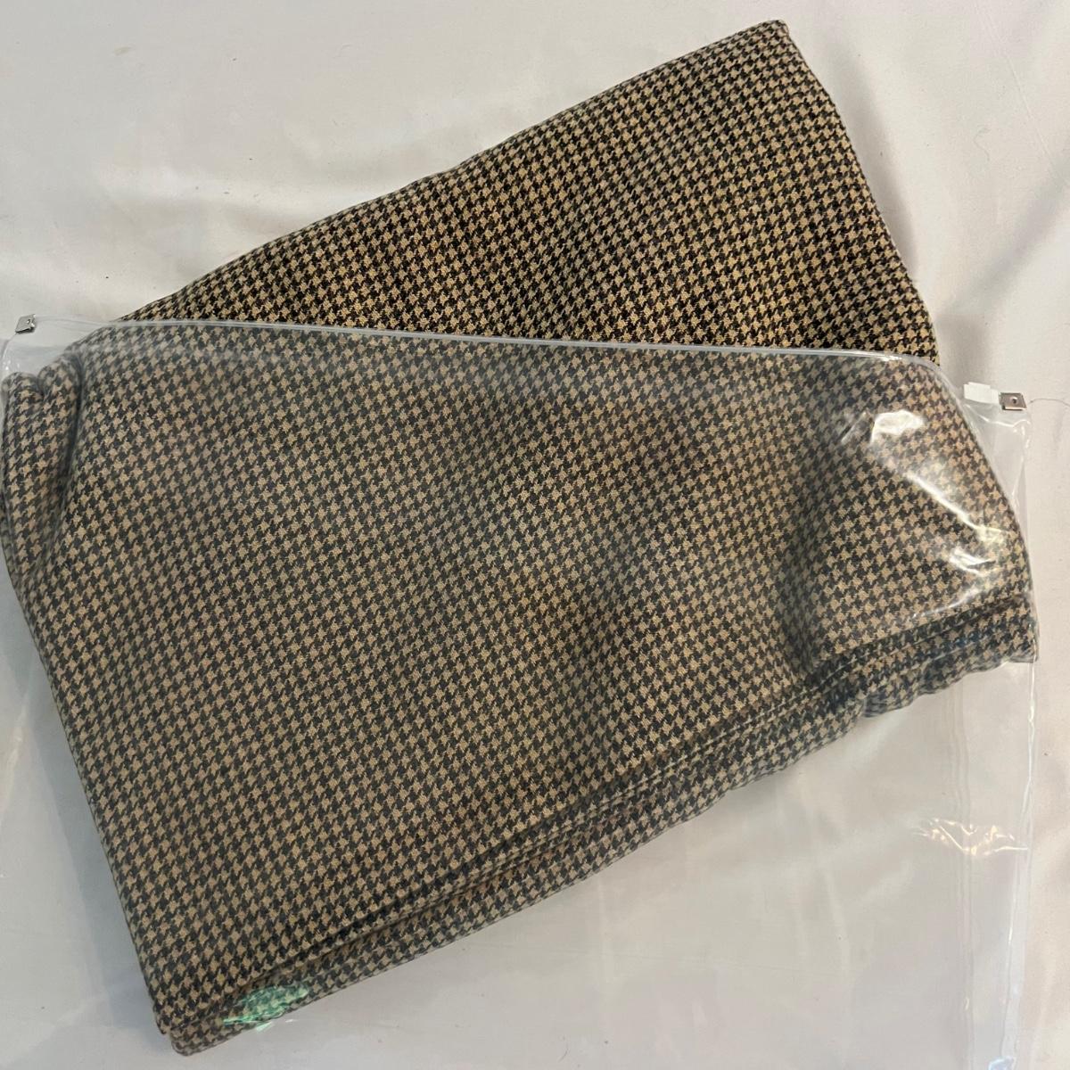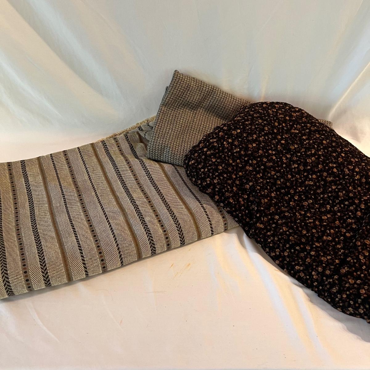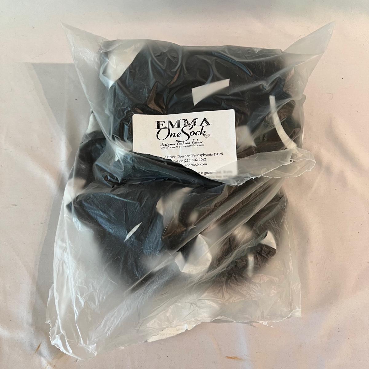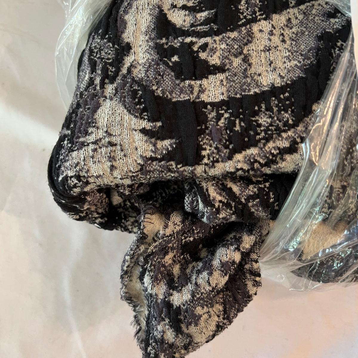 Twenty packages/sections for fabric. Lot includes one large roll of fabric. None of the packages have amounts/yardage notes or fiber content. Some feel wool-like, others acrylic-like (stretchy).