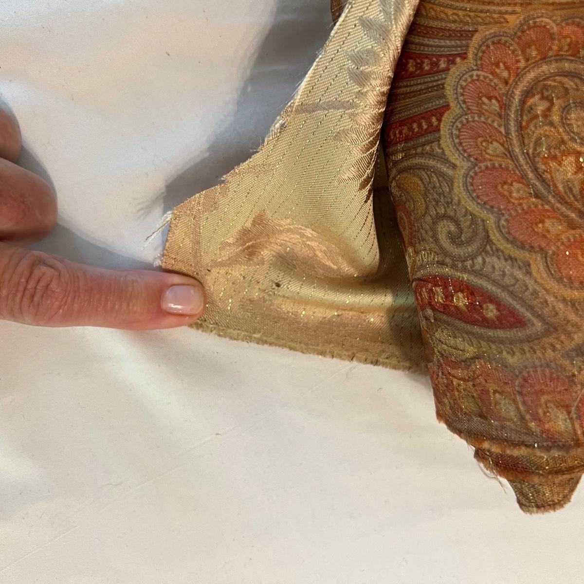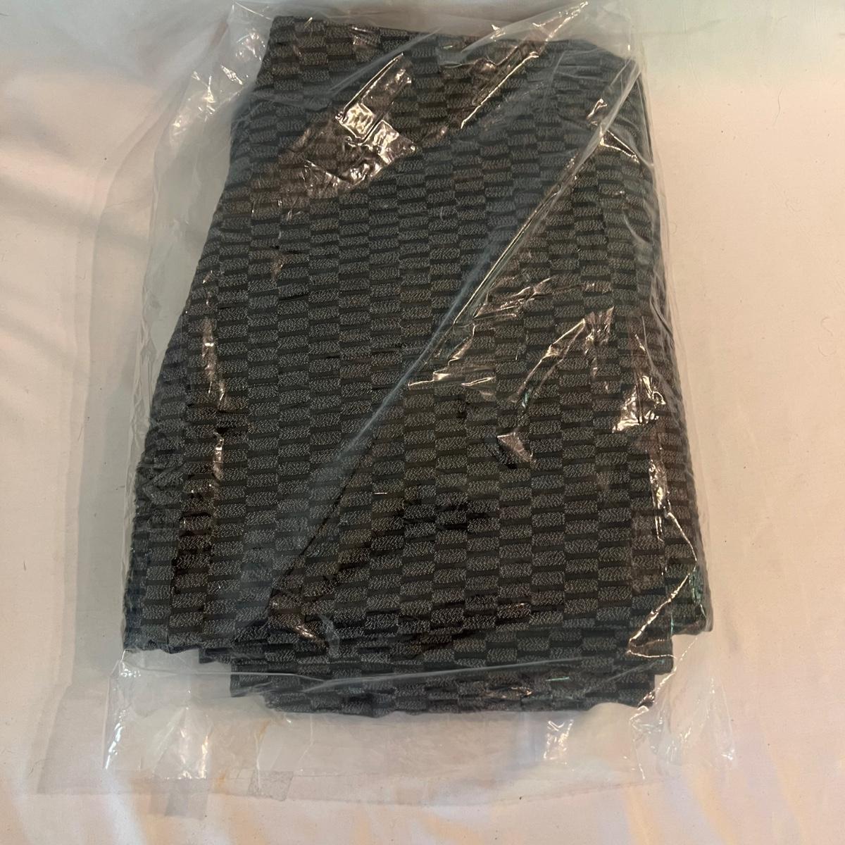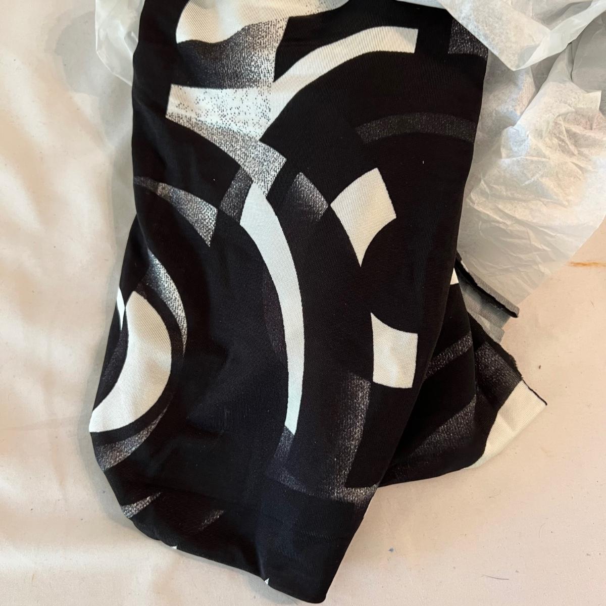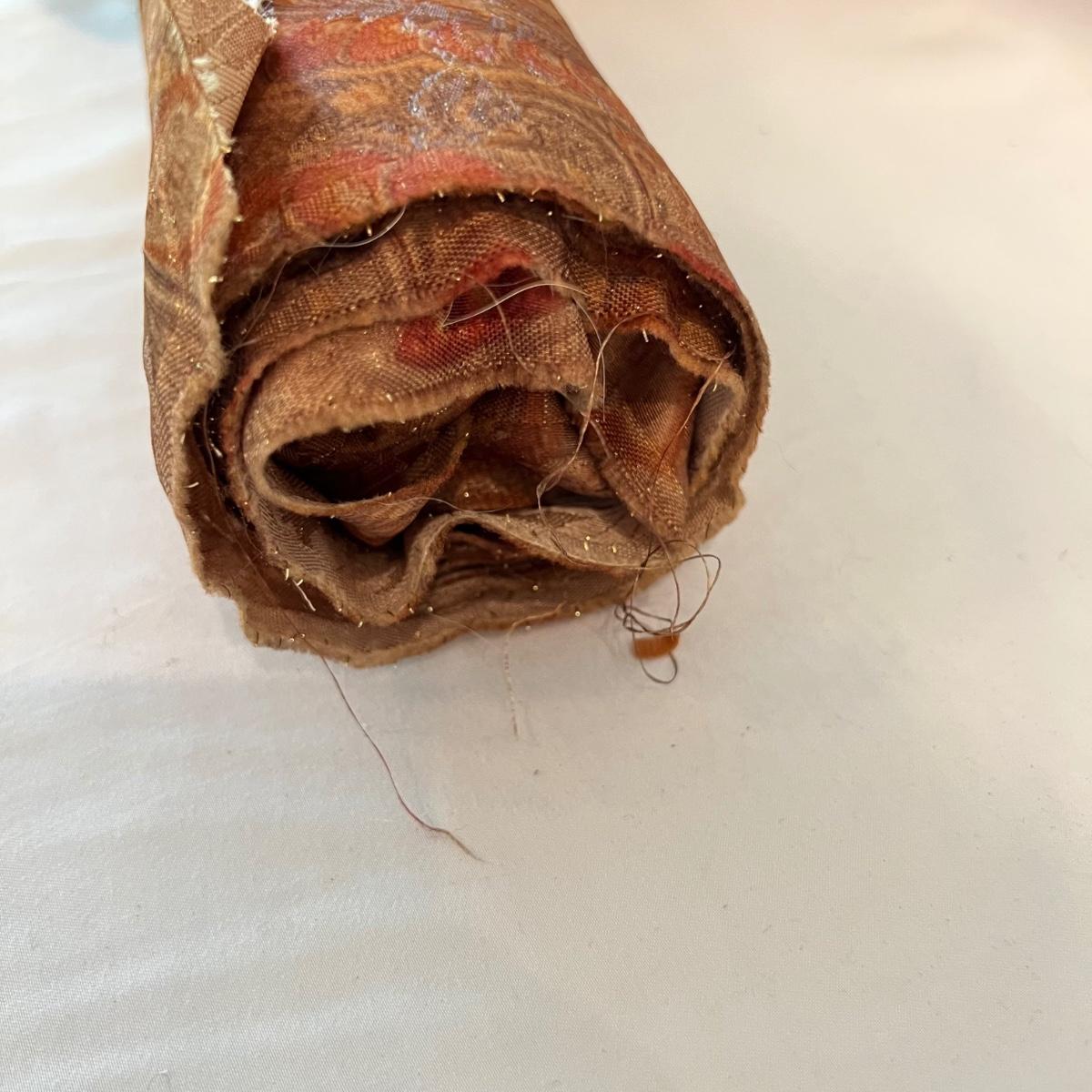 Twenty packages/sections for fabric. Lot includes one large roll of fabric. None of the packages have amounts/yardage notes or fiber content. Some feel wool-like, others acrylic-like (stretchy).