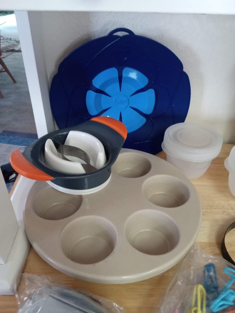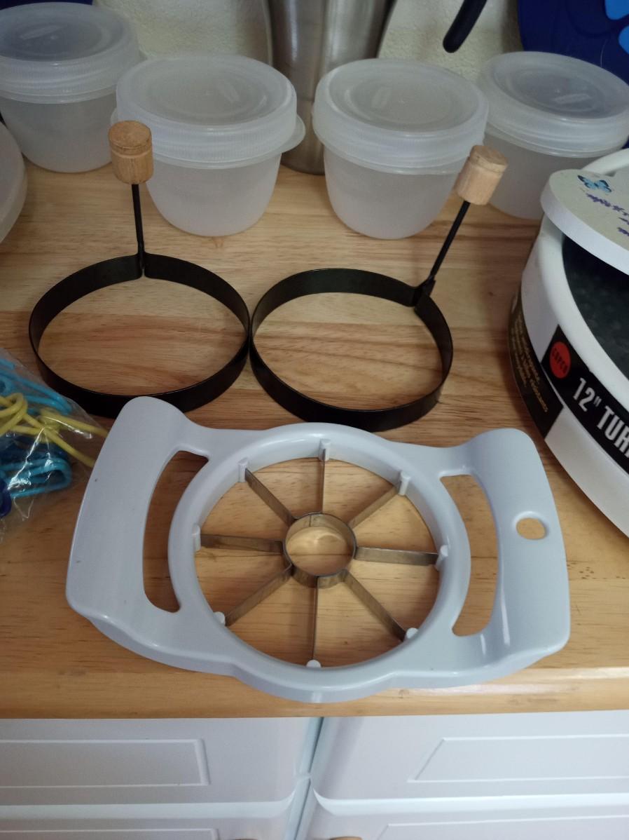 2 LAZY SUSANS, CLIPS, FRUIT CUTTERS