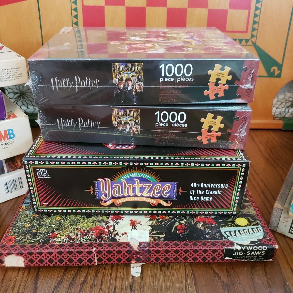 This lot has everything you need for a fun game and puzzle night! The games range from vintage to new in the box Harry Potter puzzles.