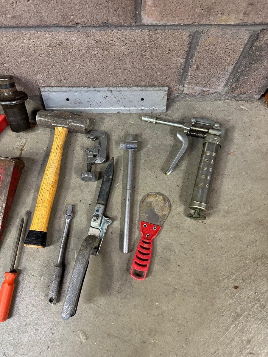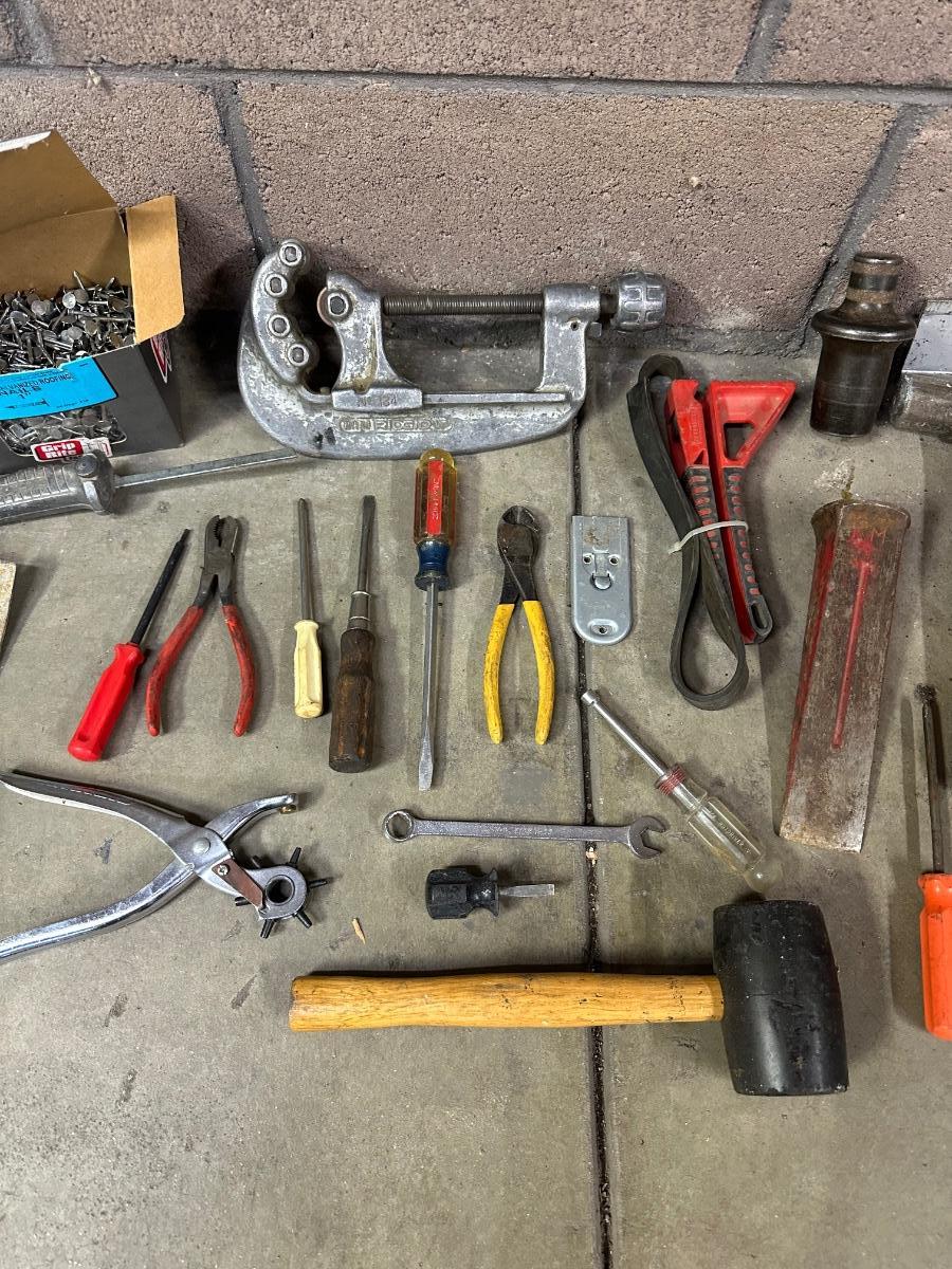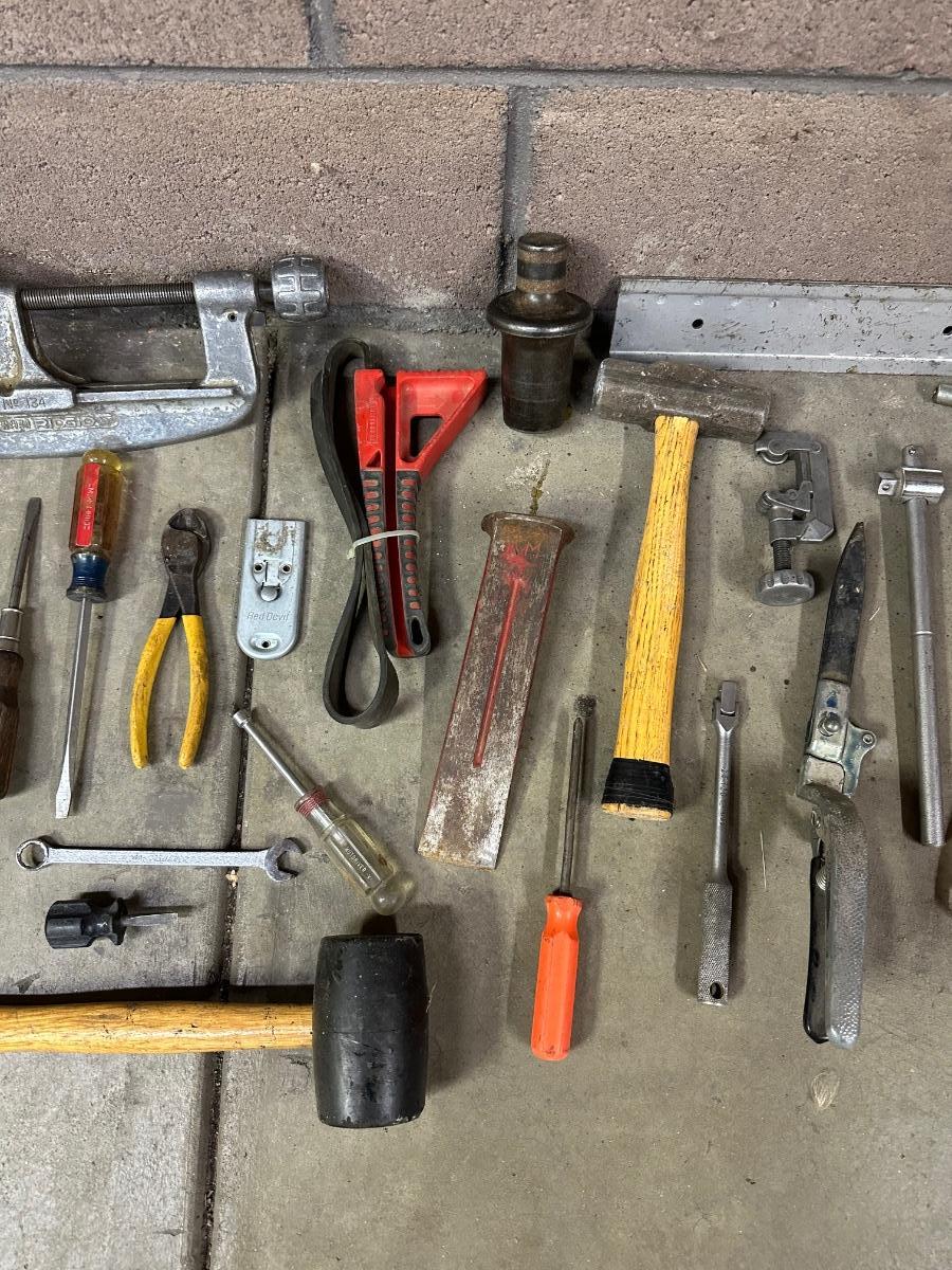 LARGE ASSORTMENT OF HAND TOOLS AND A NIPPLE CADDY