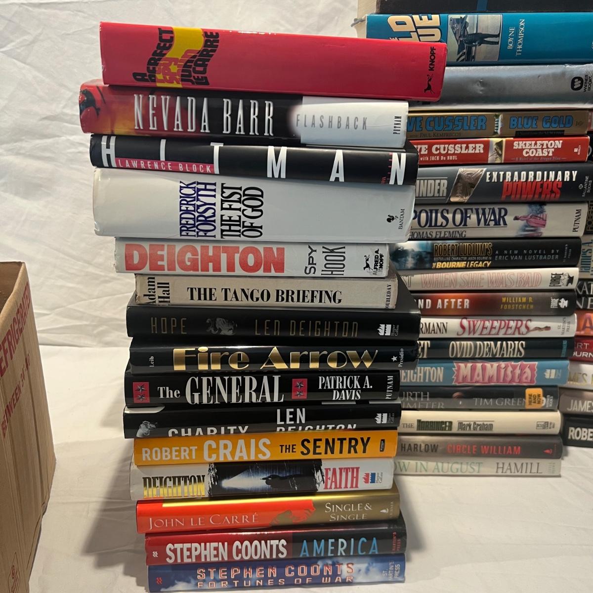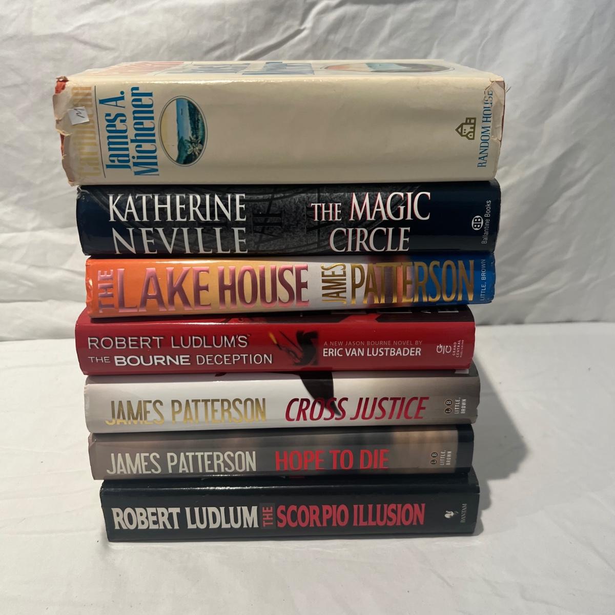 Over 120 hardback books plus a few softbacks as well. Some great authors includes Patterson, Michener and many more; see images for all titles.