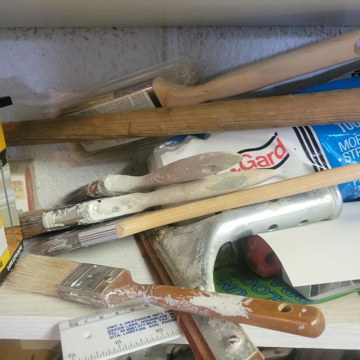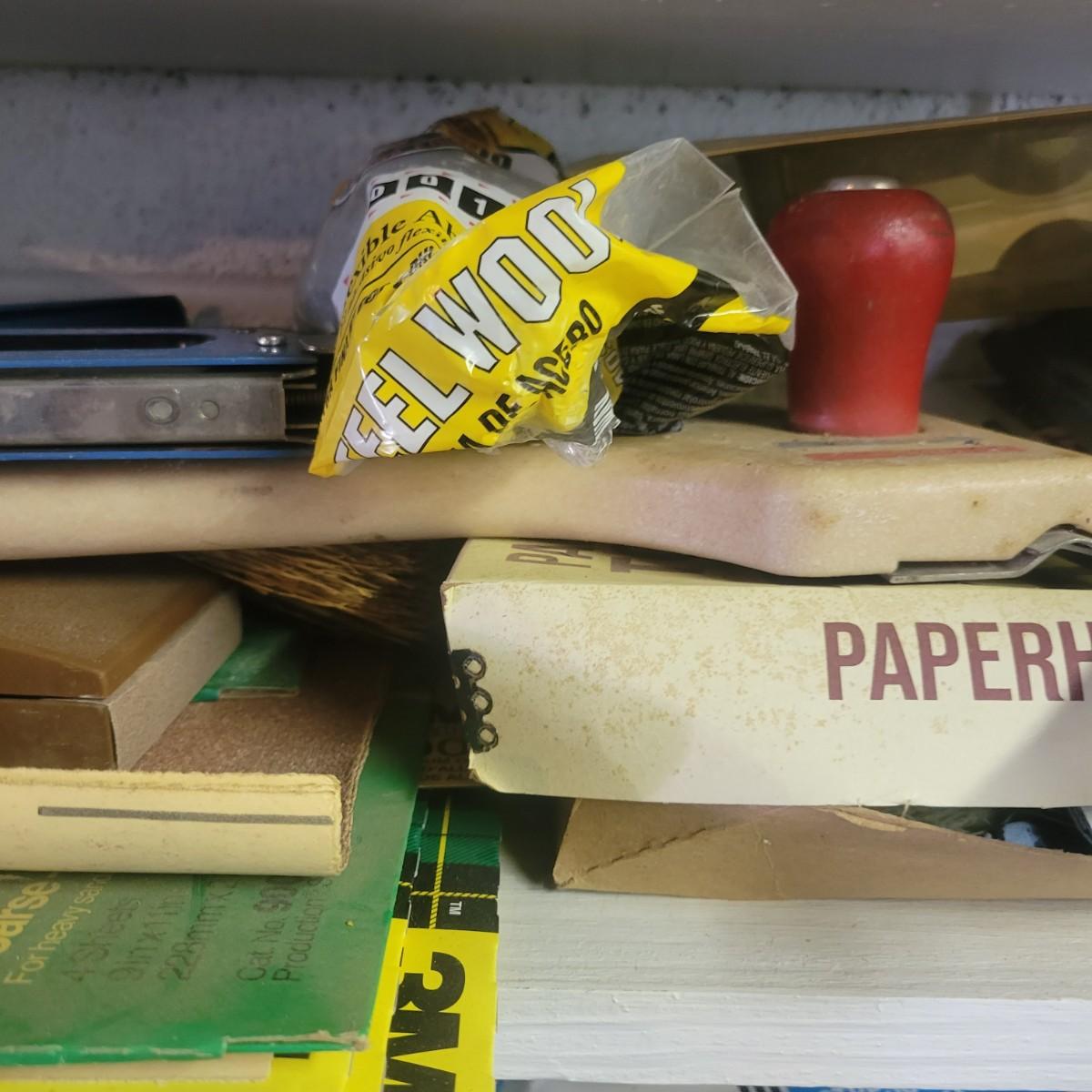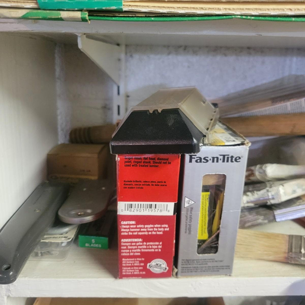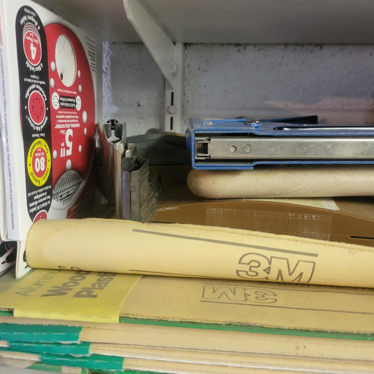 A large assortment of hardware. Lot includes paint brushes, nails, screws, sandpaper, staple gun, weather stripping and more. See attached pictures for full inventory. Local pickup only