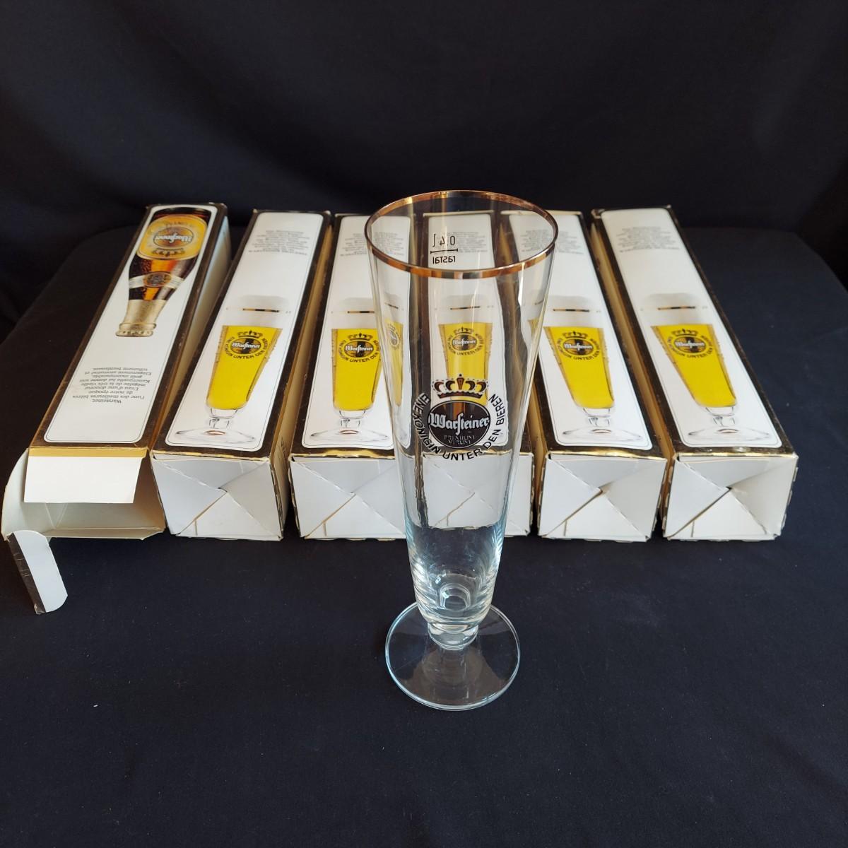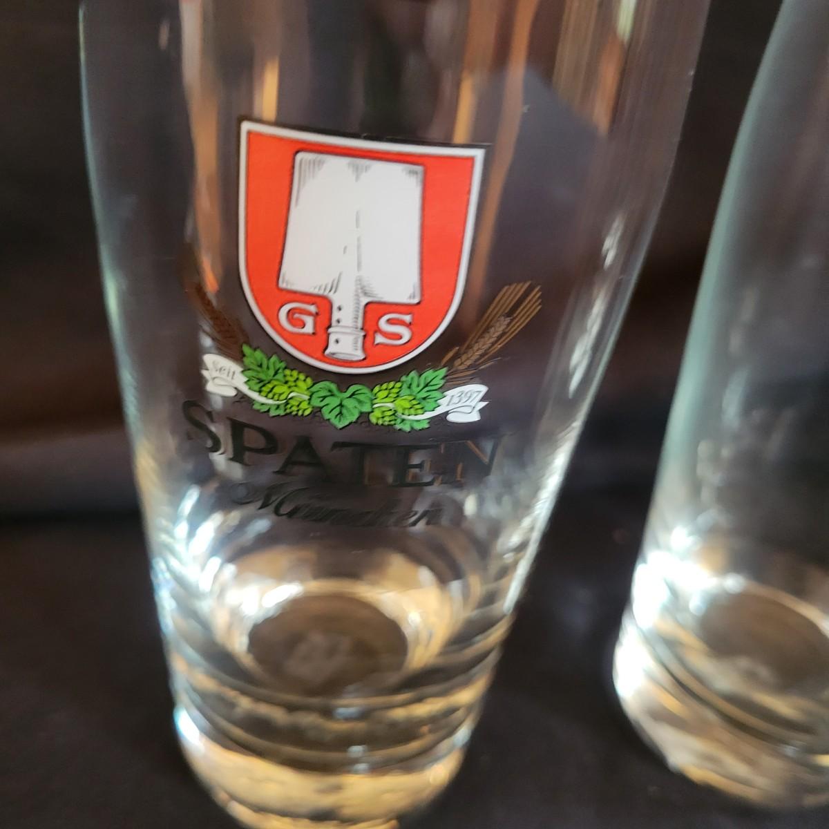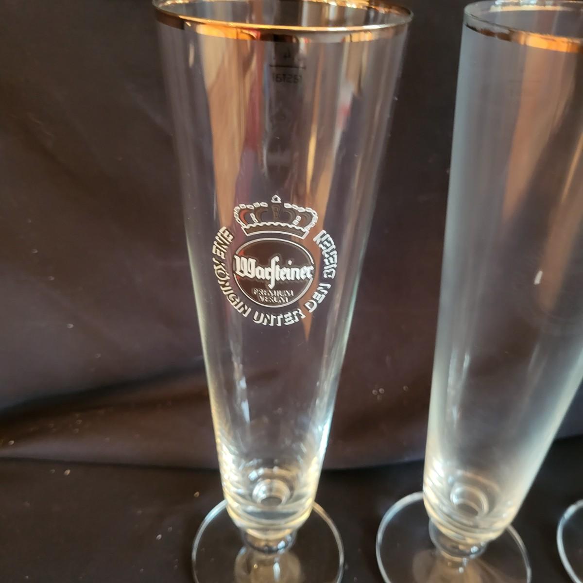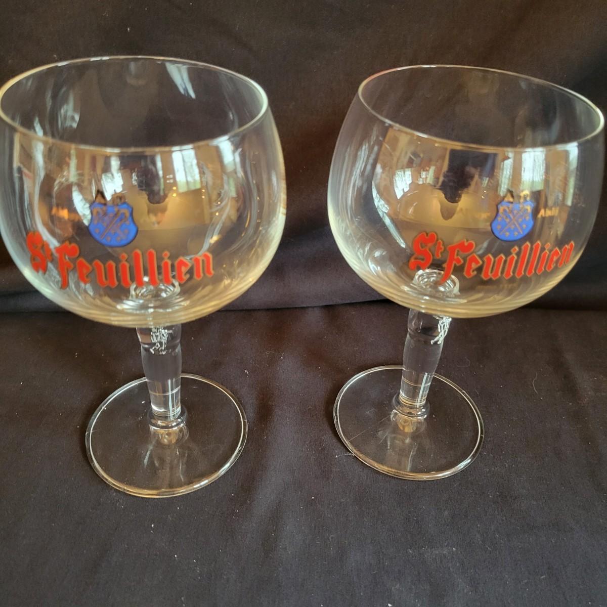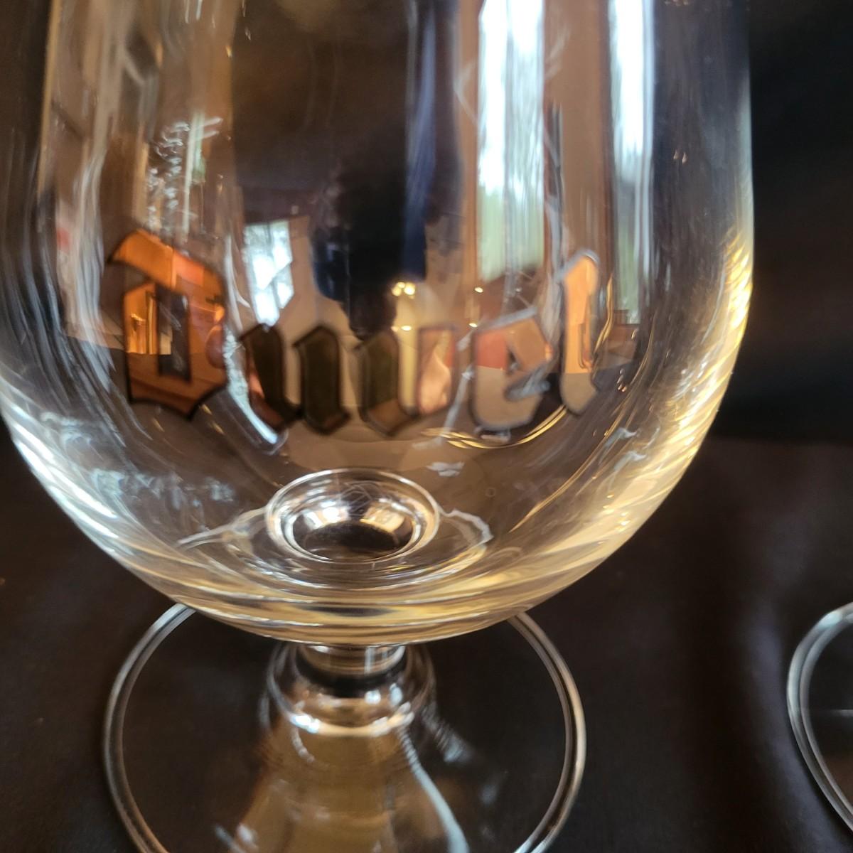 A large assortment of labeled bar glasses in a variety of shapes and volumes. Glass labeled with producers such as Hennessy, Stella Artois, Grand Marnier, Becks and more. The largest glass are approximately 10.25"H. Local pickup only.