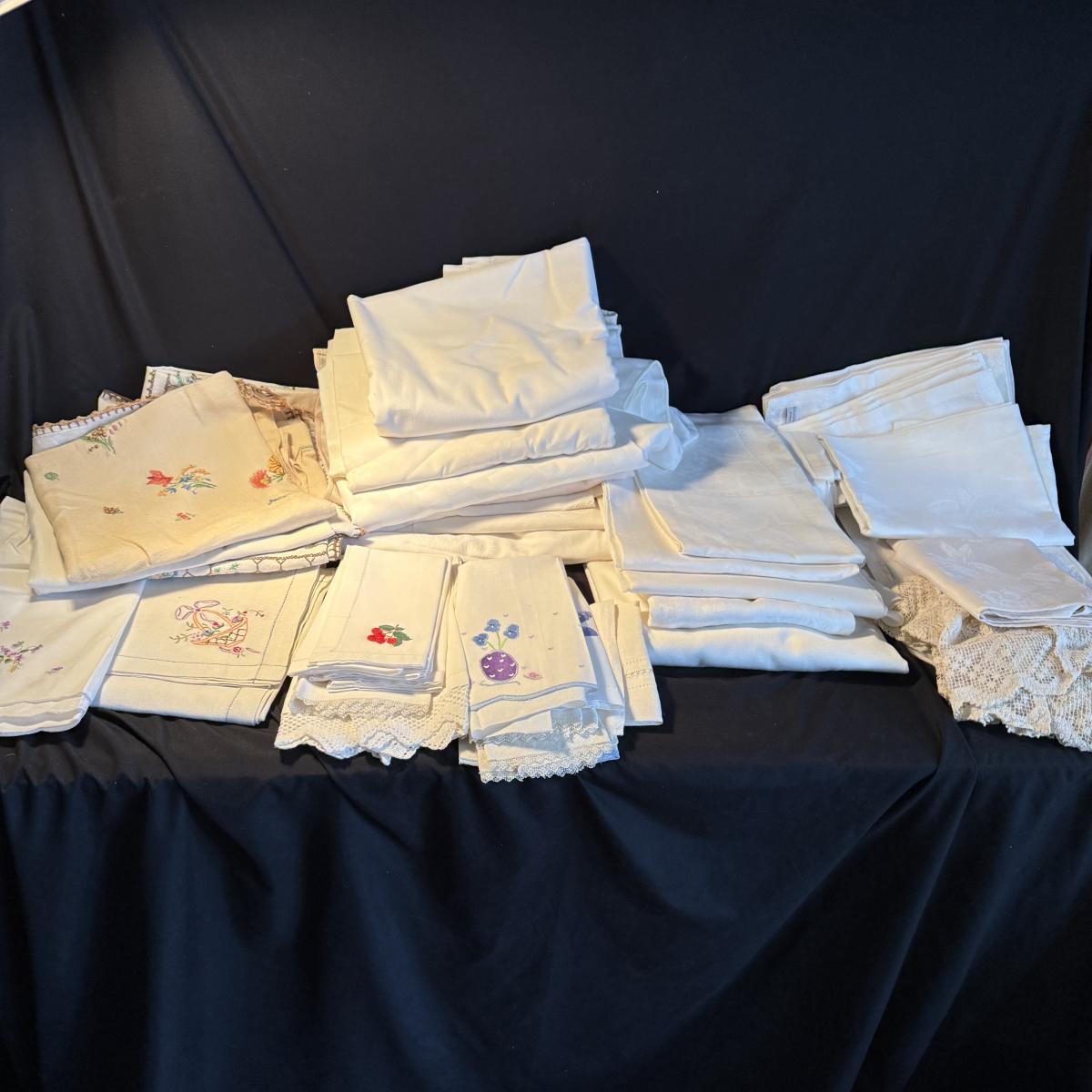 Large Assortment of Linen Tablecloths, Napkins & More (DR-RG)