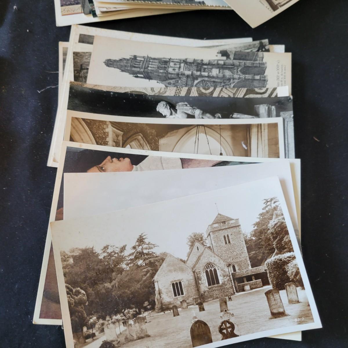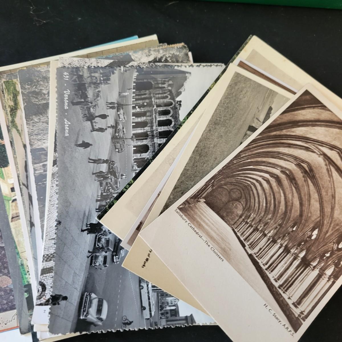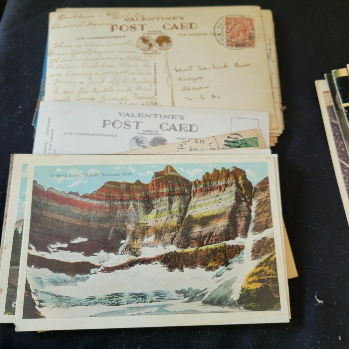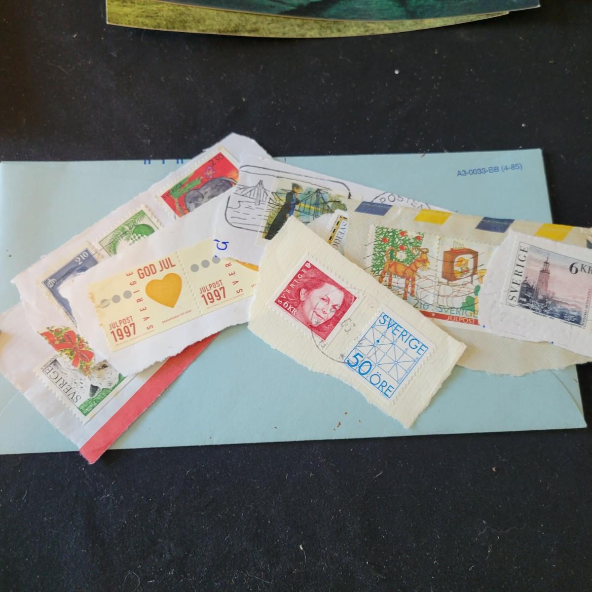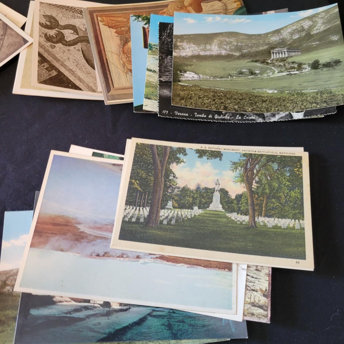 An assortment of patches from Europe, most are unused and some are still in original packaging. A box full of postcard. Most are new, but there are some that have been mailed. Many are vintage and are from Europe and the United States. Also included are stamps and letters from European countries. A majority of theses have been stamped from mailing. Shipping available