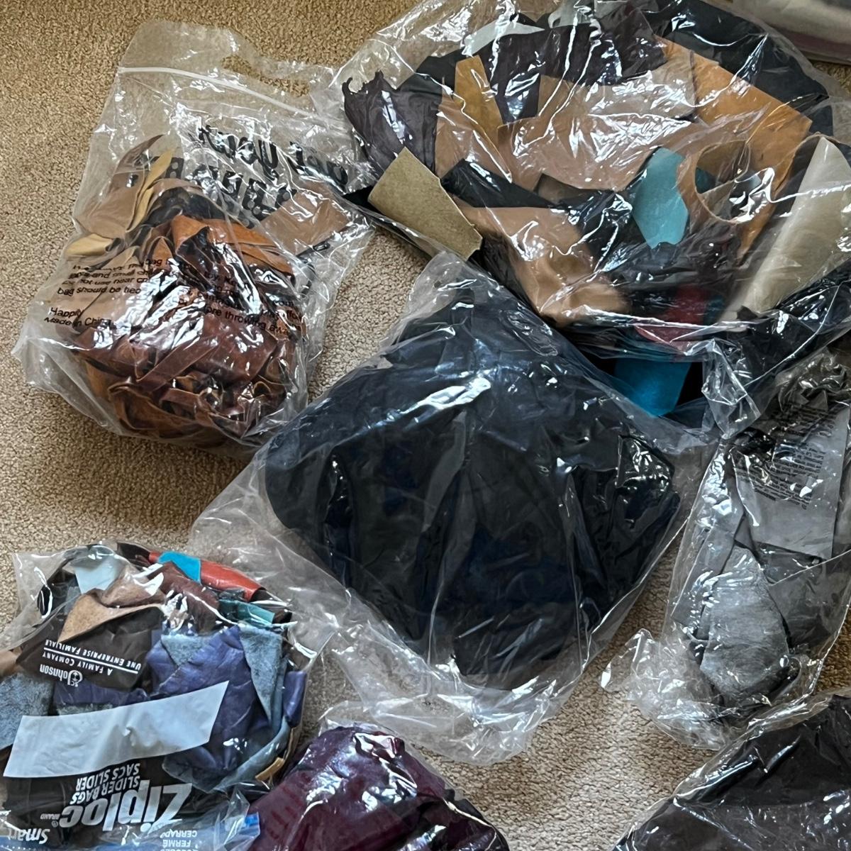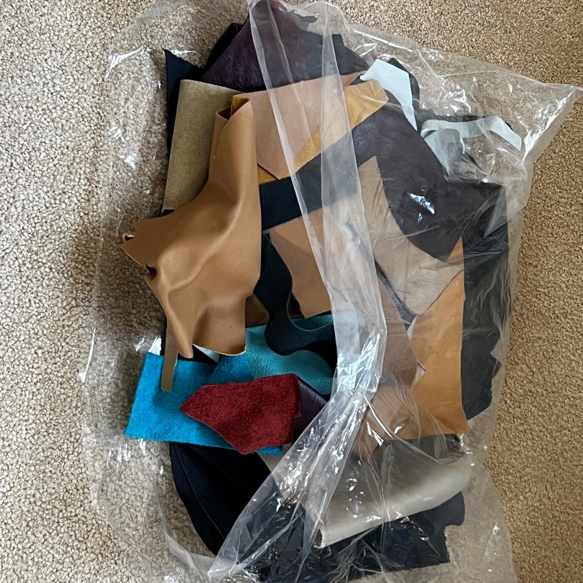 Large Assortment of Leather Scraps Plus Fabric & Sewing (UB1-RG)