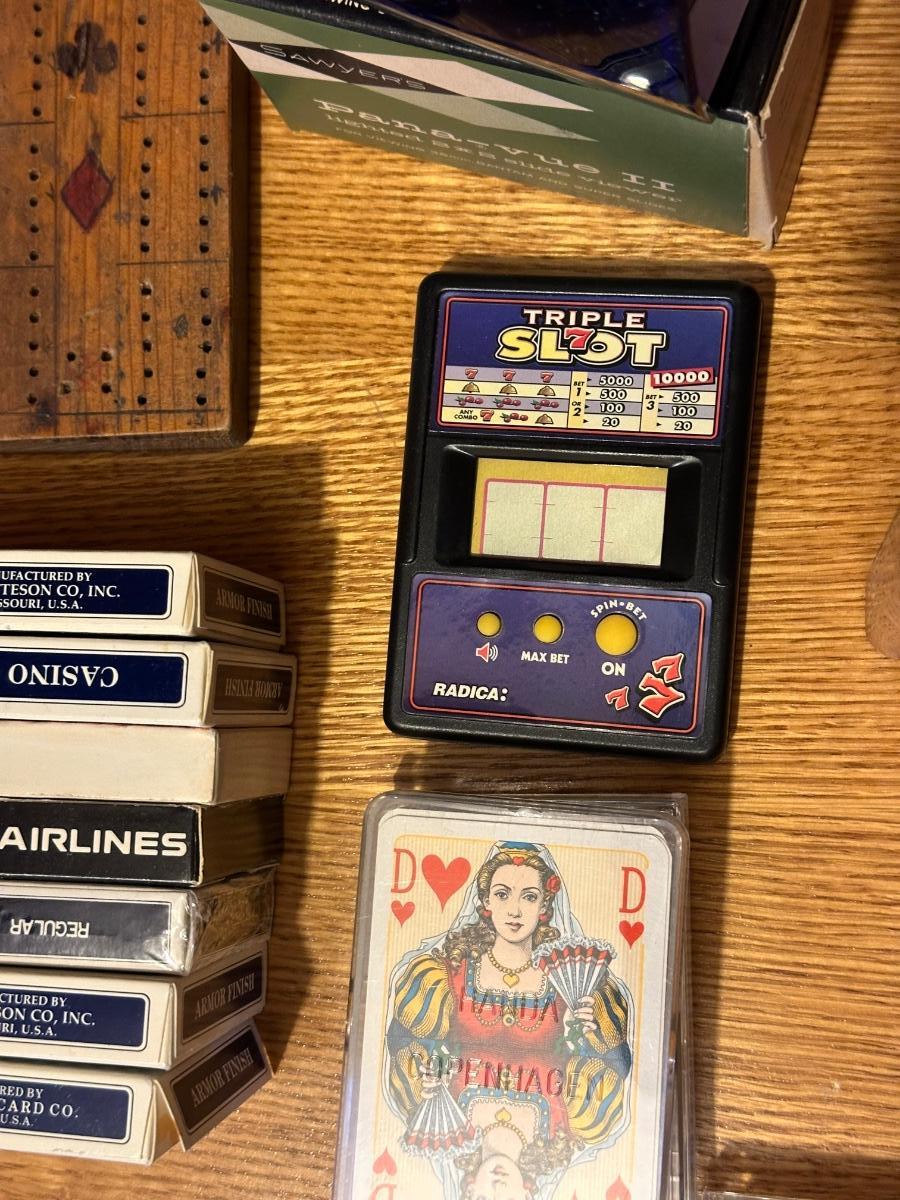 MANY DECKS OF CARDS, BACKGAMMON AND HANDHELD SLOT GAMES