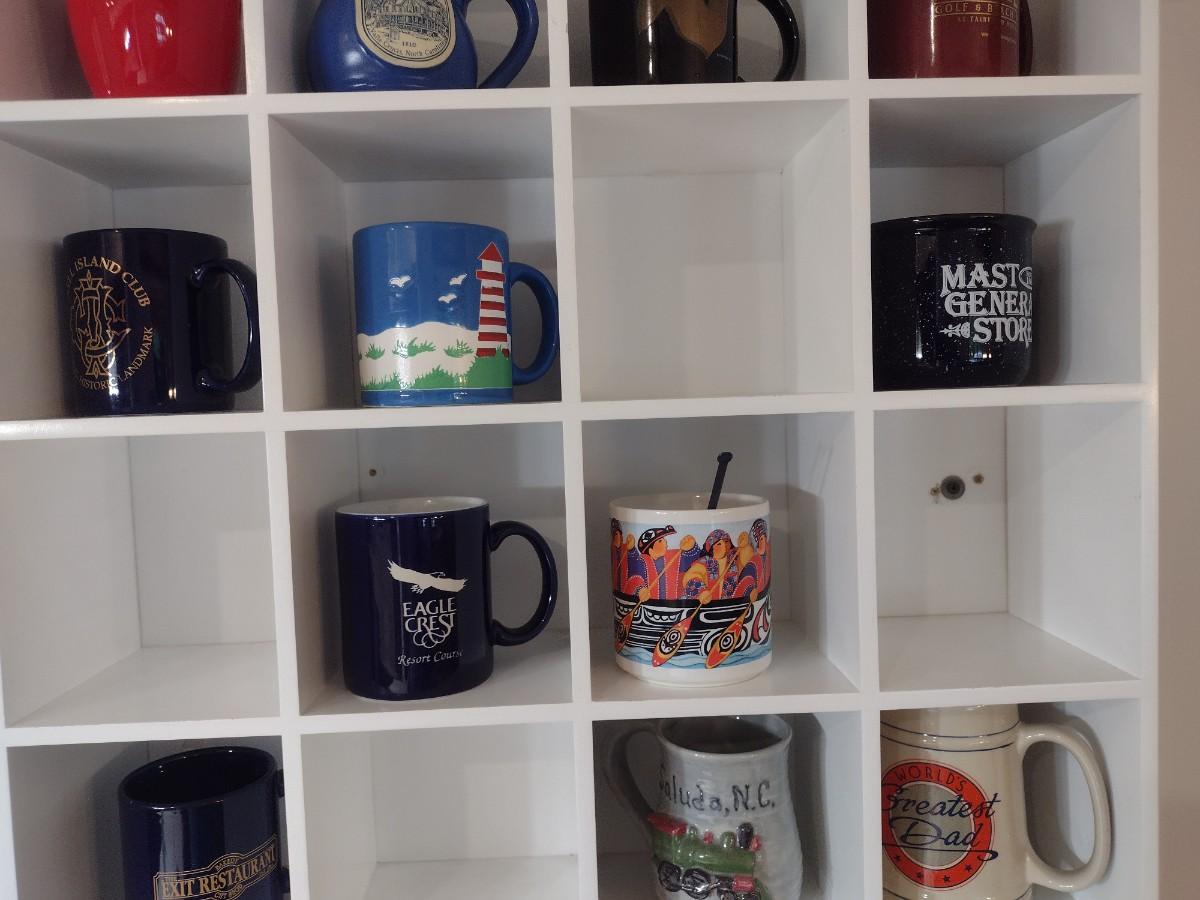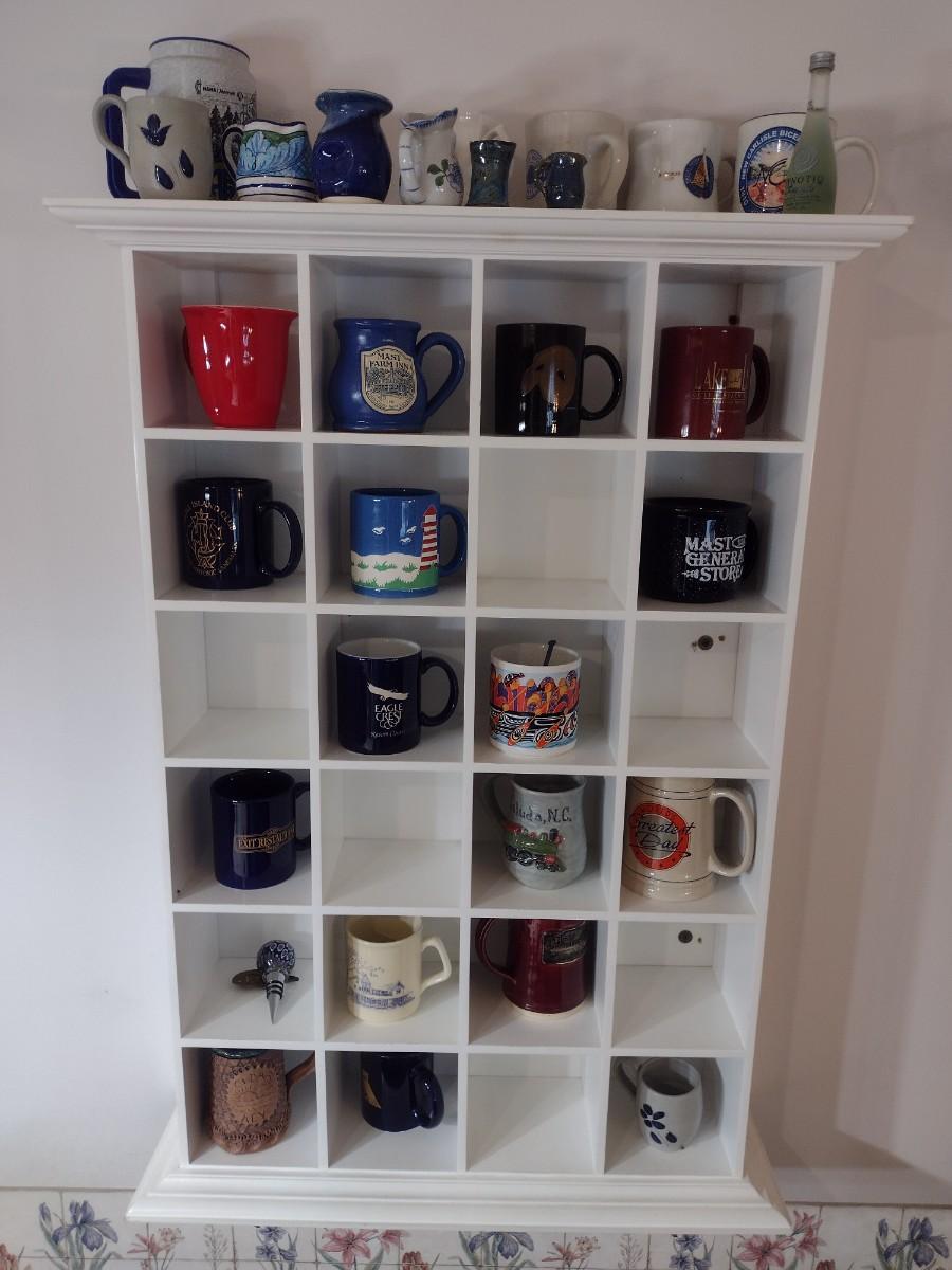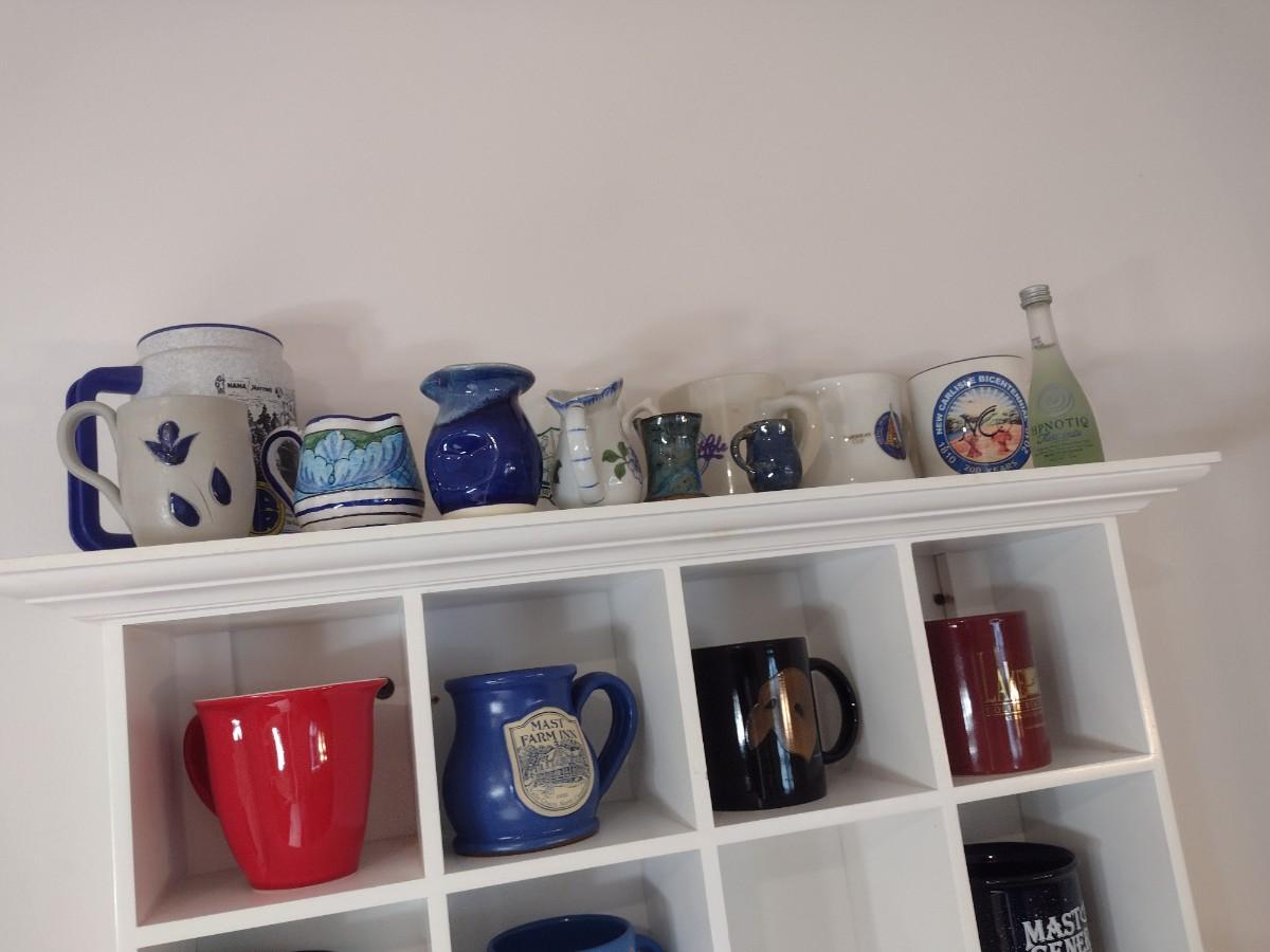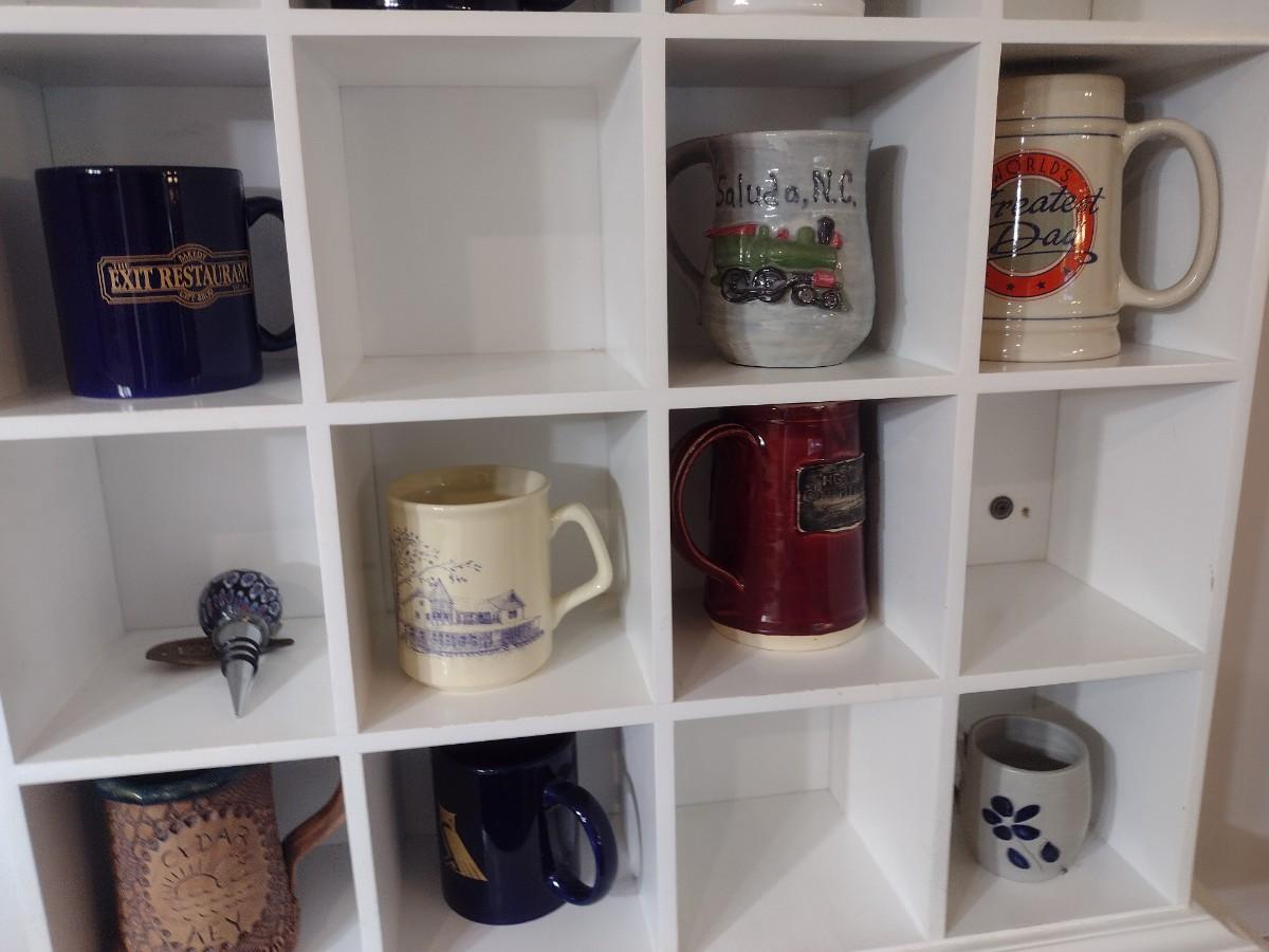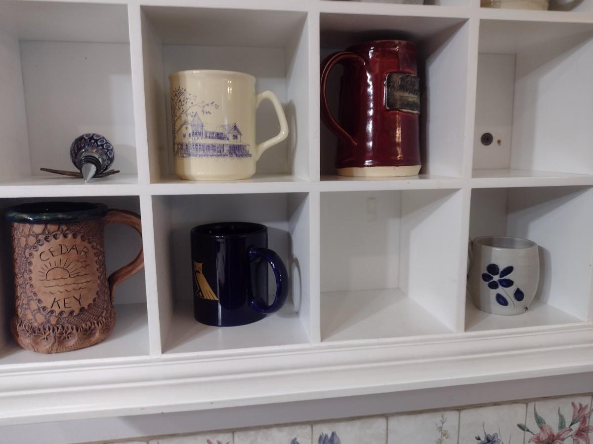 Large Assortment of Pottery and Ceramic Mugs and Small Vases includes Williamsburg Pottery (No Shelf)