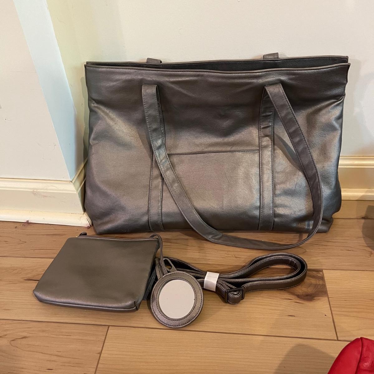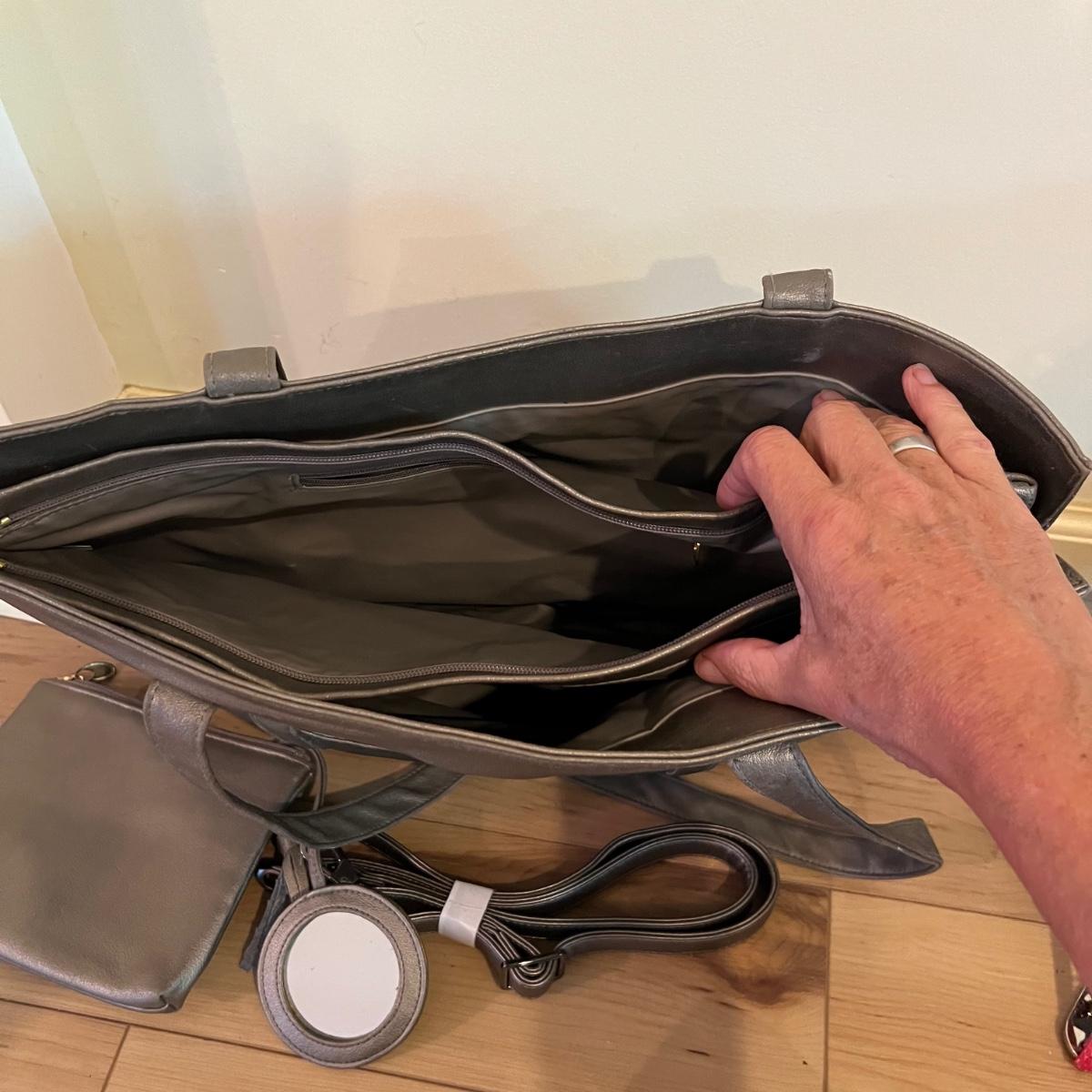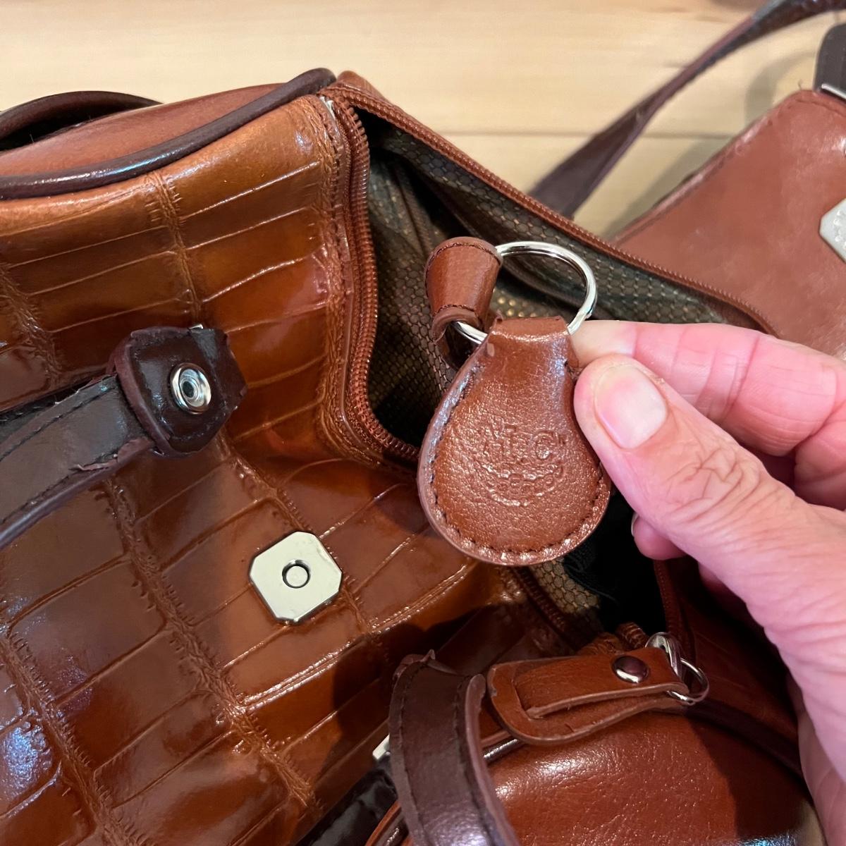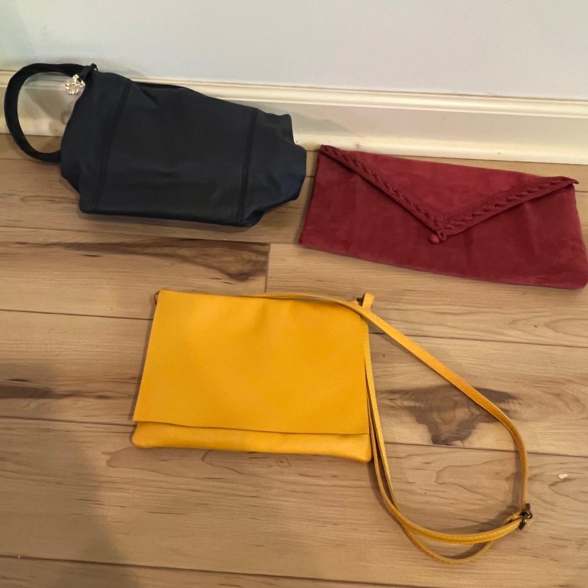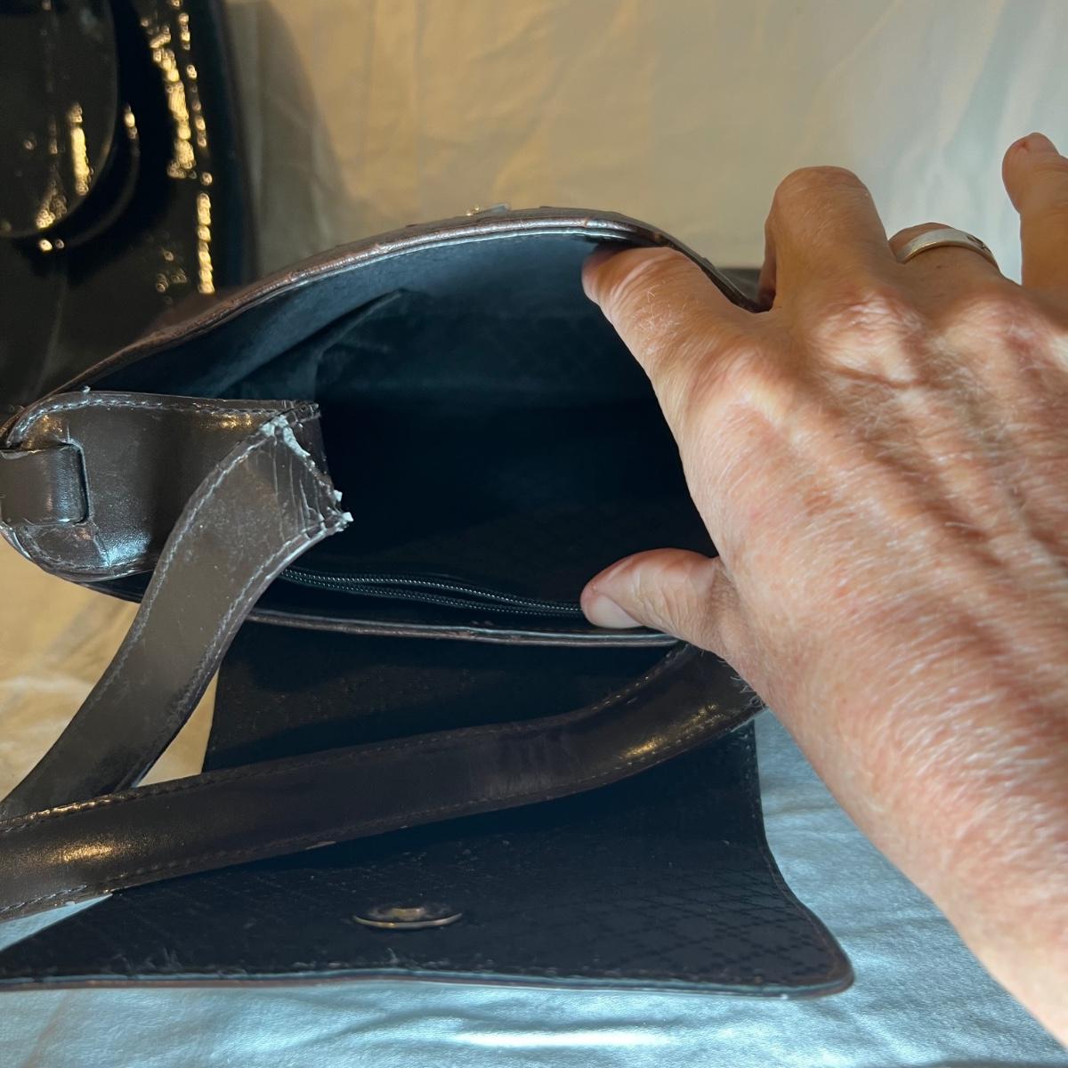 19 purses in this lot that includes some that are genuine leather. Two have Gucci labels but we cannot authenticate them and note the brown purse has some splitting in the handle. See images for tags where found.