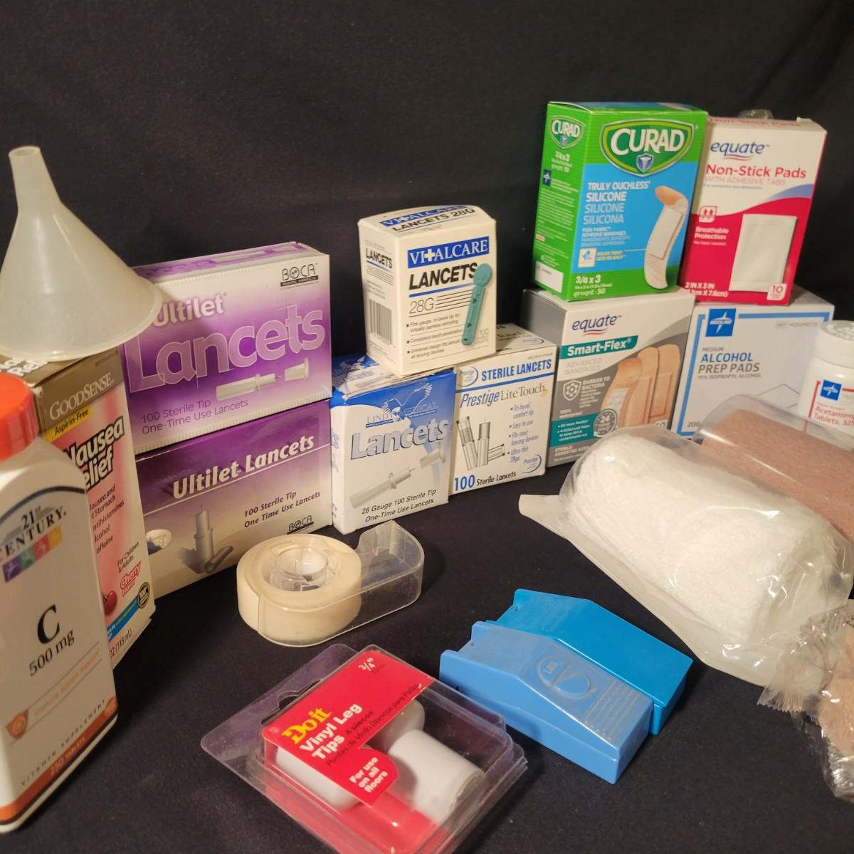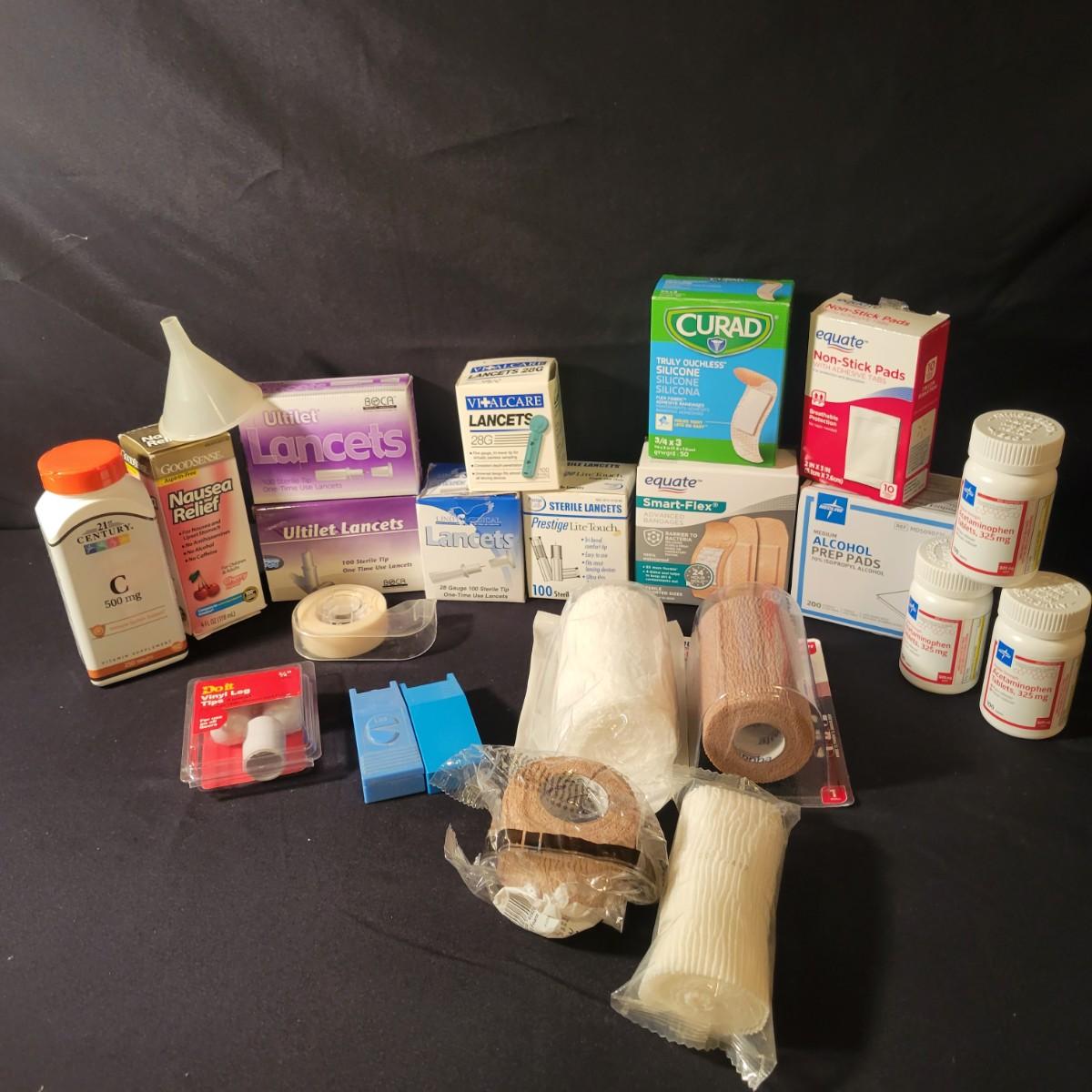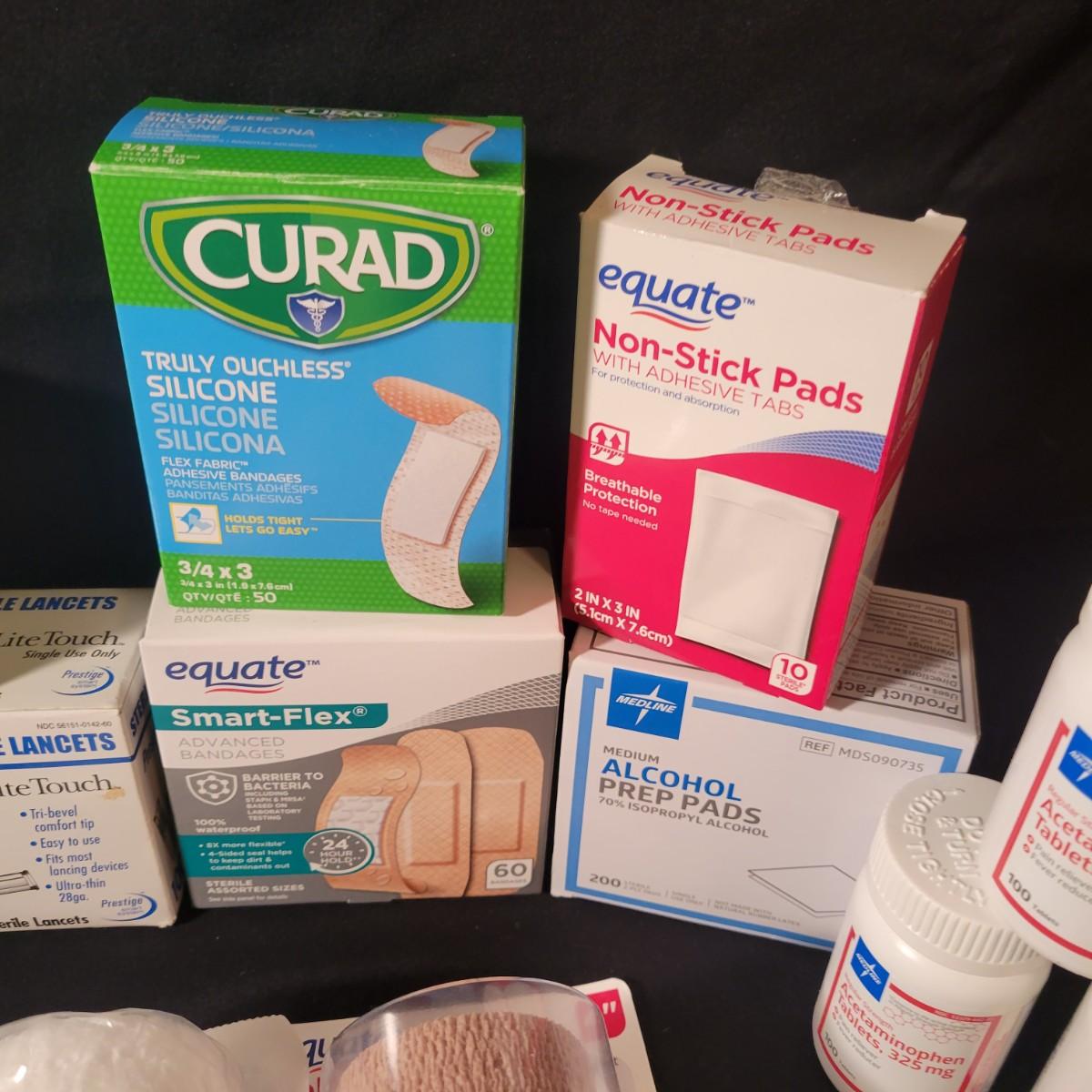 A large assortment of self care products ranging from wraps to bandaids. See attached pictures for all the items in those lot. All items are in unopened packaging. Shipping available