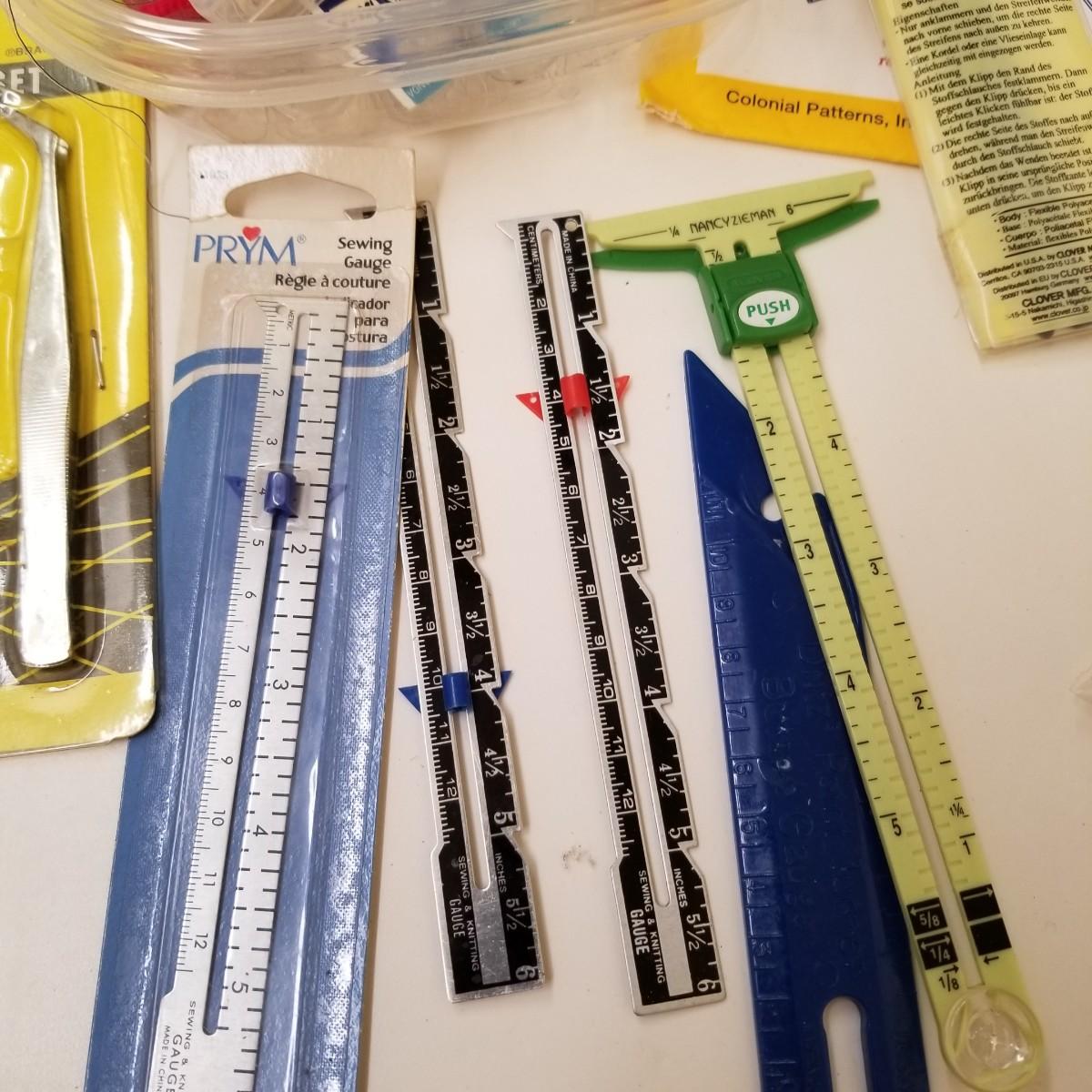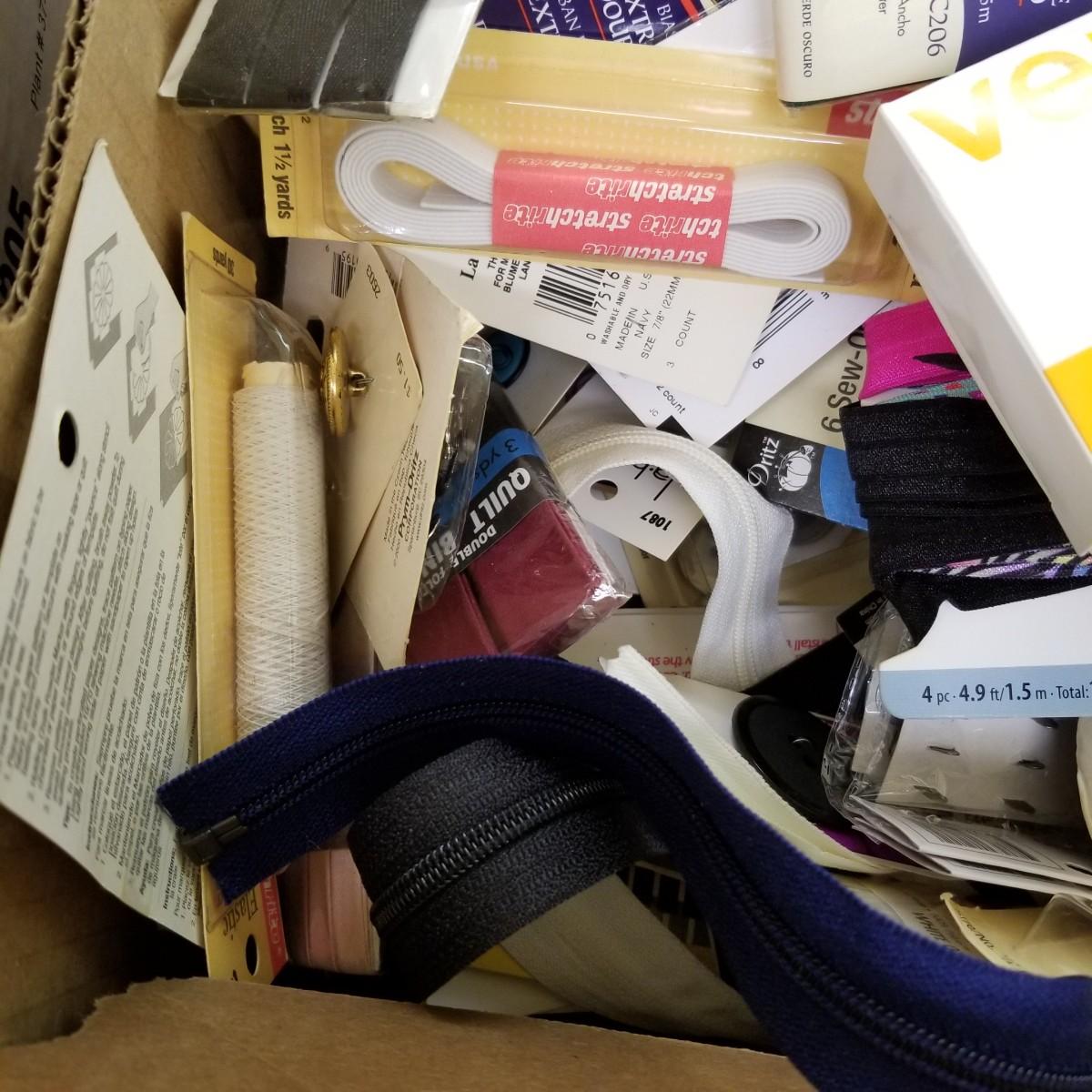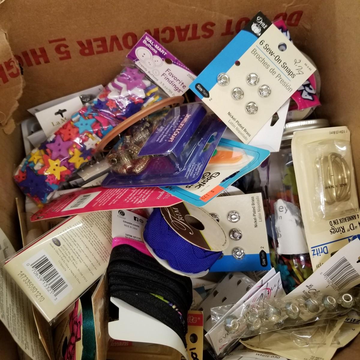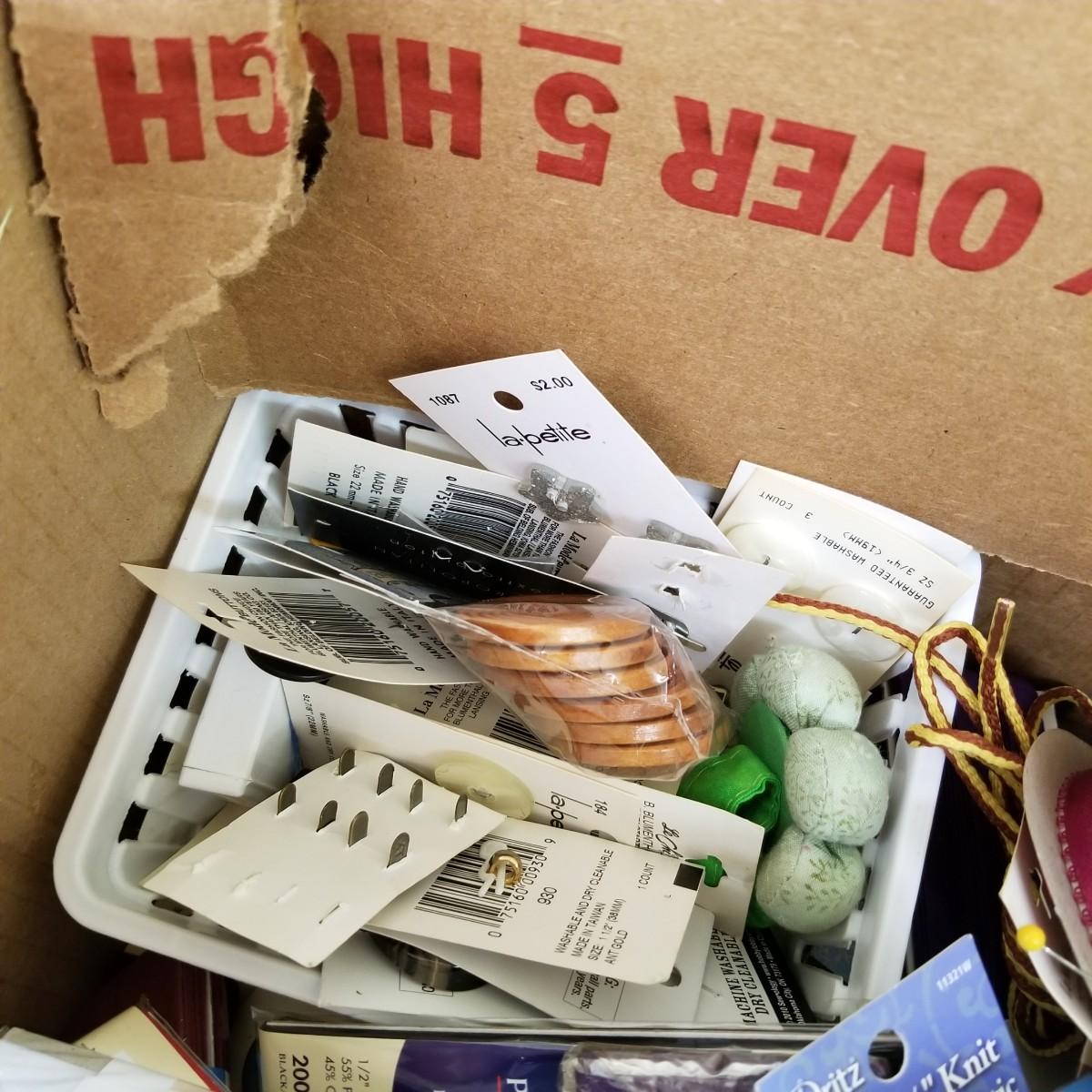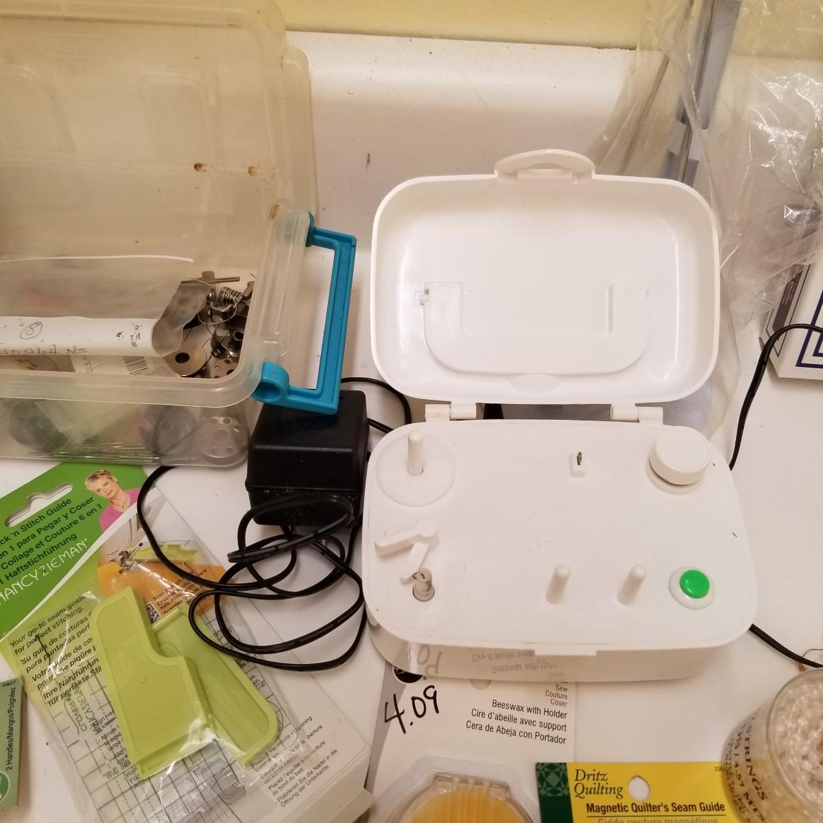The gold mine of sewing stuff. Needles, pins, bobbins, buttons, ribbon, pattern weights, markers, clips, tools, gauges, beads, on and on. Hundreds of pieces. See photos for details. Shipping available.