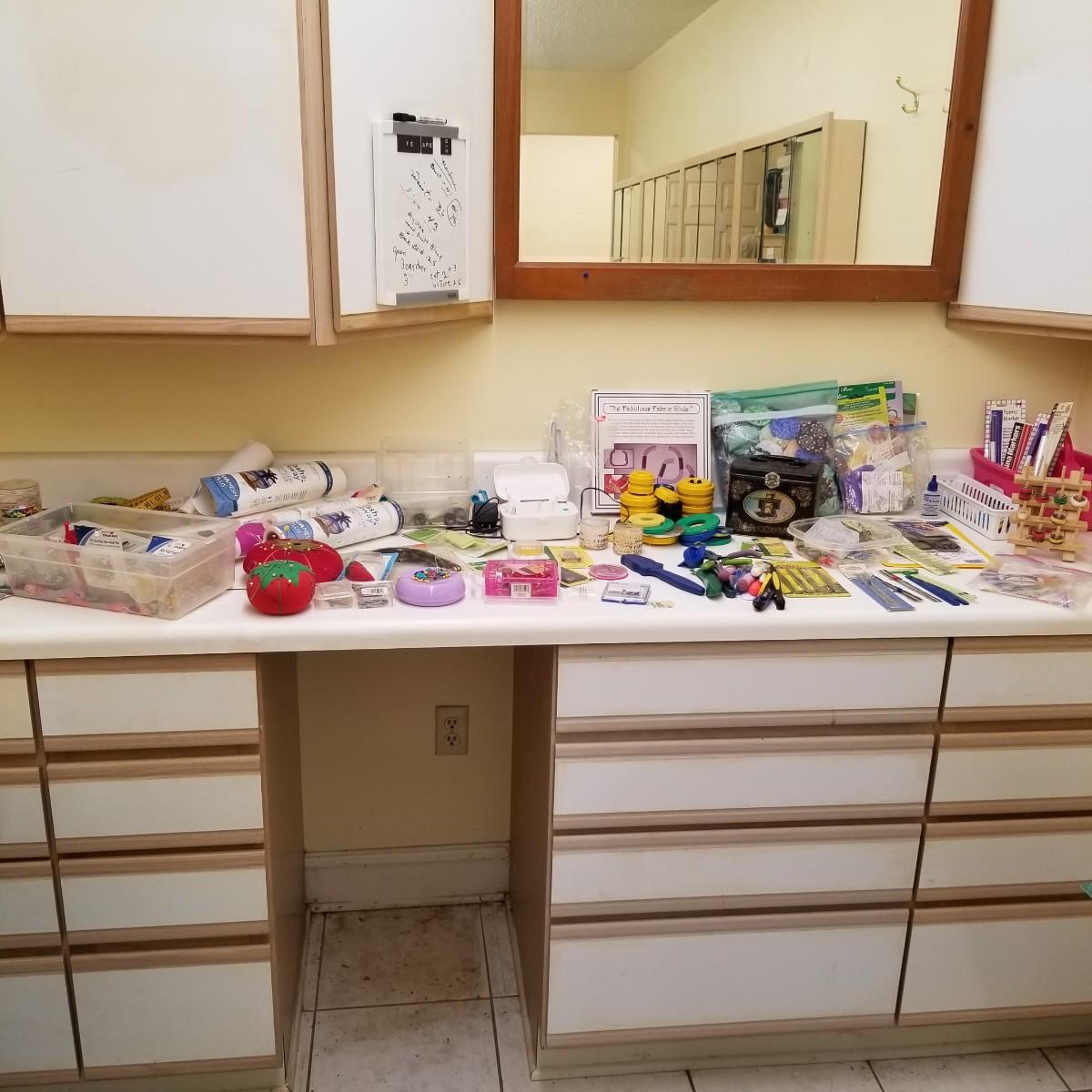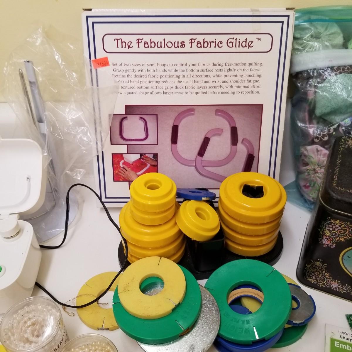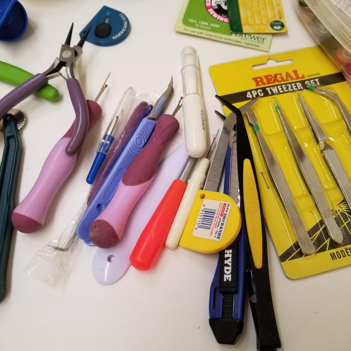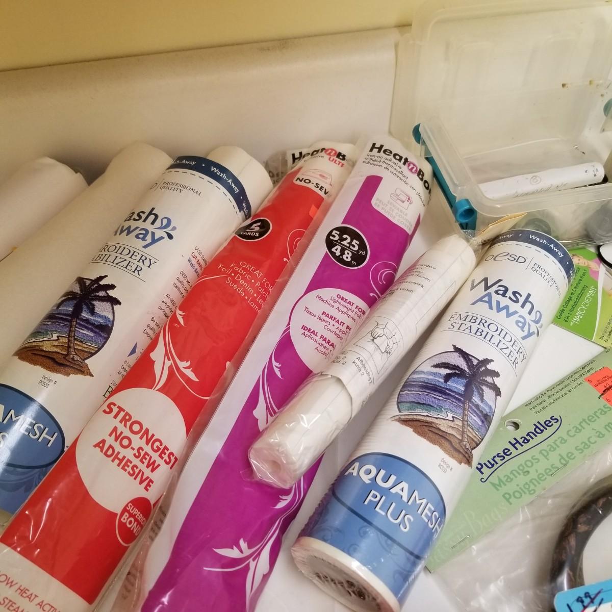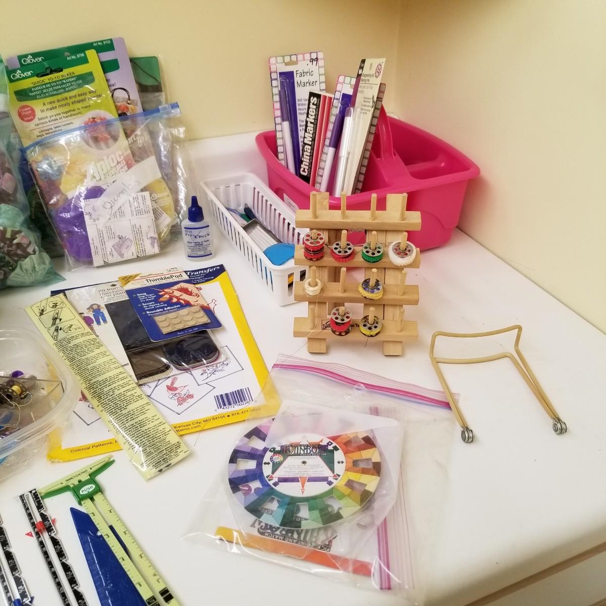 The gold mine of sewing stuff. Needles, pins, bobbins, buttons, ribbon, pattern weights, markers, clips, tools, gauges, beads, on and on. Hundreds of pieces. See photos for details. Shipping available.