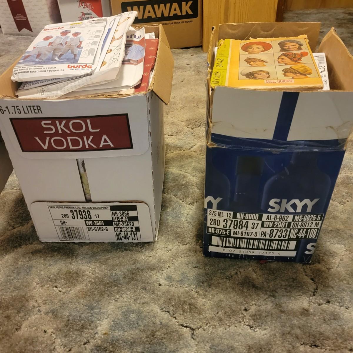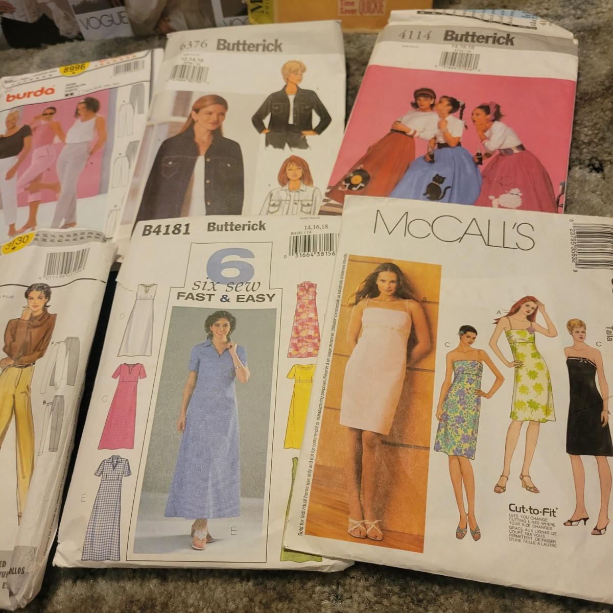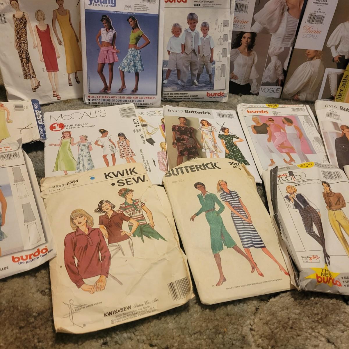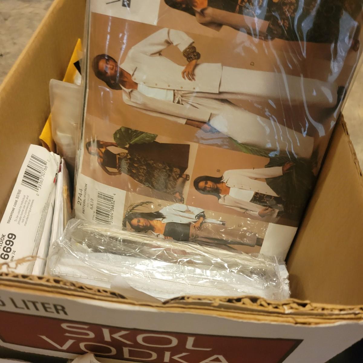Two boxes full of sewing patterns. It appears most have been used, but cut outlines have been put back into their respective packages. Patterns for women's clothing, children's clothing, dolls, etc. Likely ove 80 patterns in this lot. Shipping available