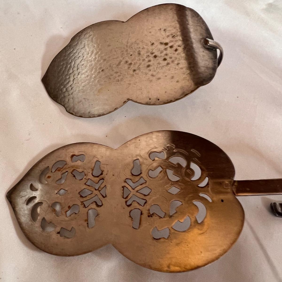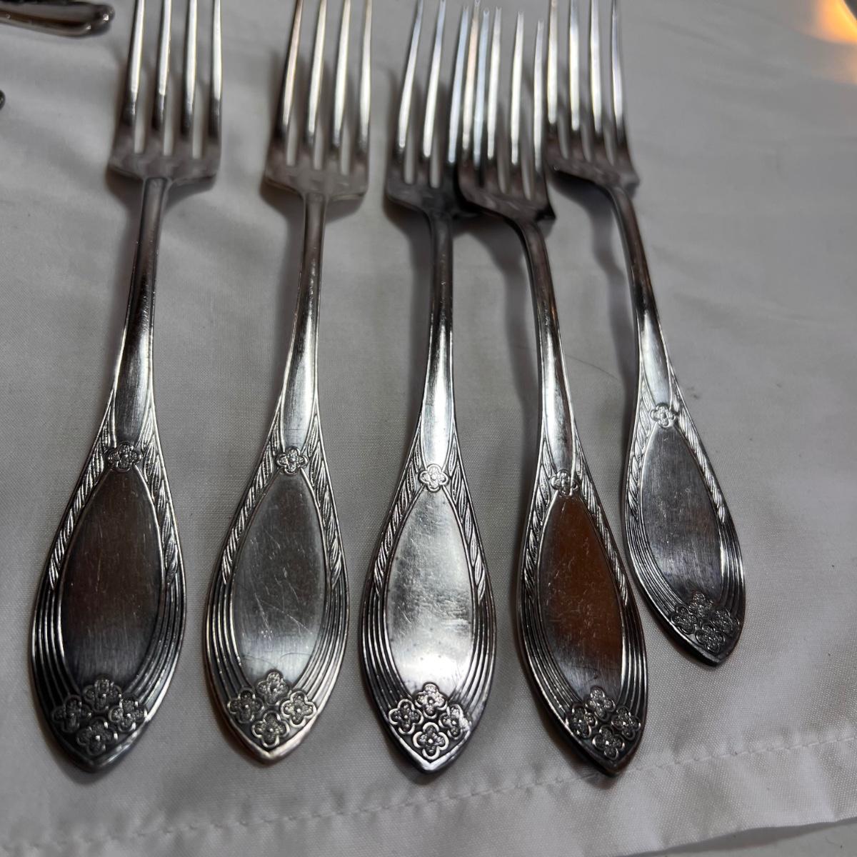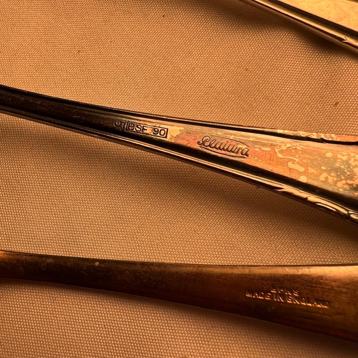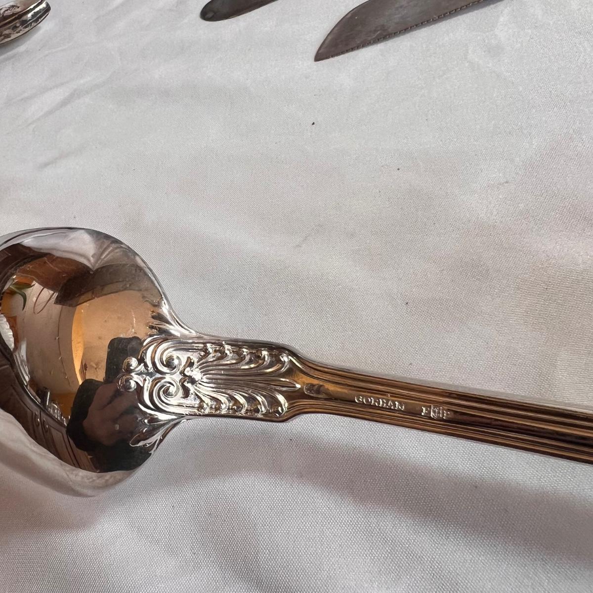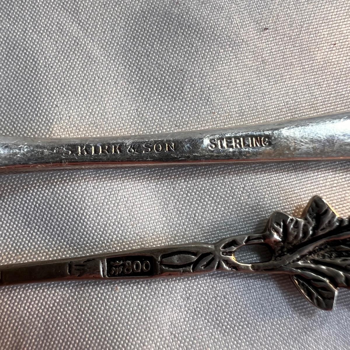This large lot includes lots of silver flatware and serving utensils. All but five are silver plate; items in the last photos are sterling and includes two teaspoons and three small dessert forks.