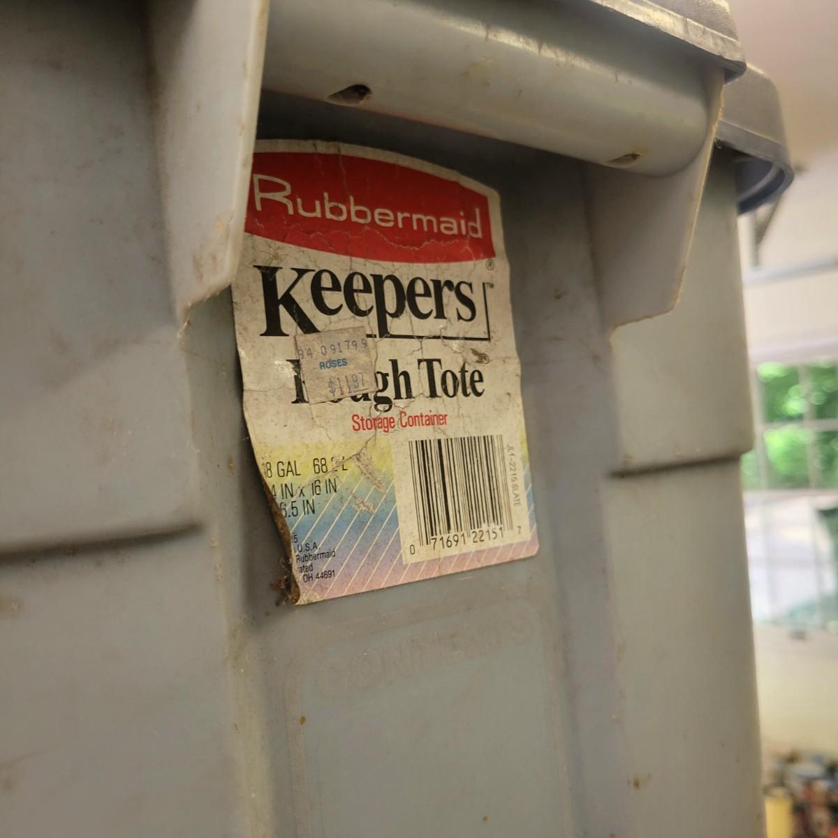 A large assortment of storage bins in a variety of sizes. There are over 15 bins in this lot with the largest purple bin measuring approximately 19" x 32" x 16H with a 33 gallon capacity. Local pickup only