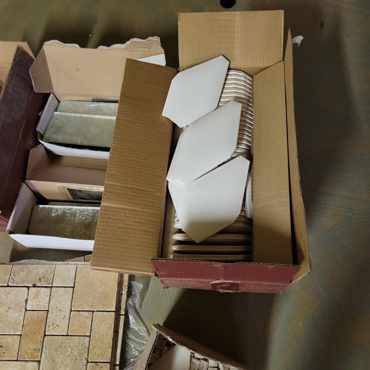 This large lot includes a wide variety of kitchen, bathroom and floor tile, made up of many different materials.  Local pickup only. Winning bidder must bring assistance to help move and load this item due to its weight and/or size.