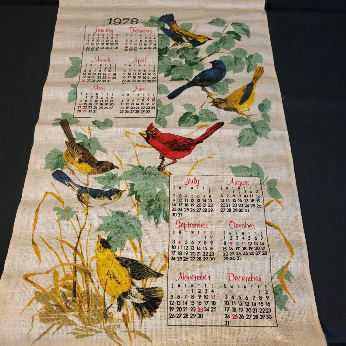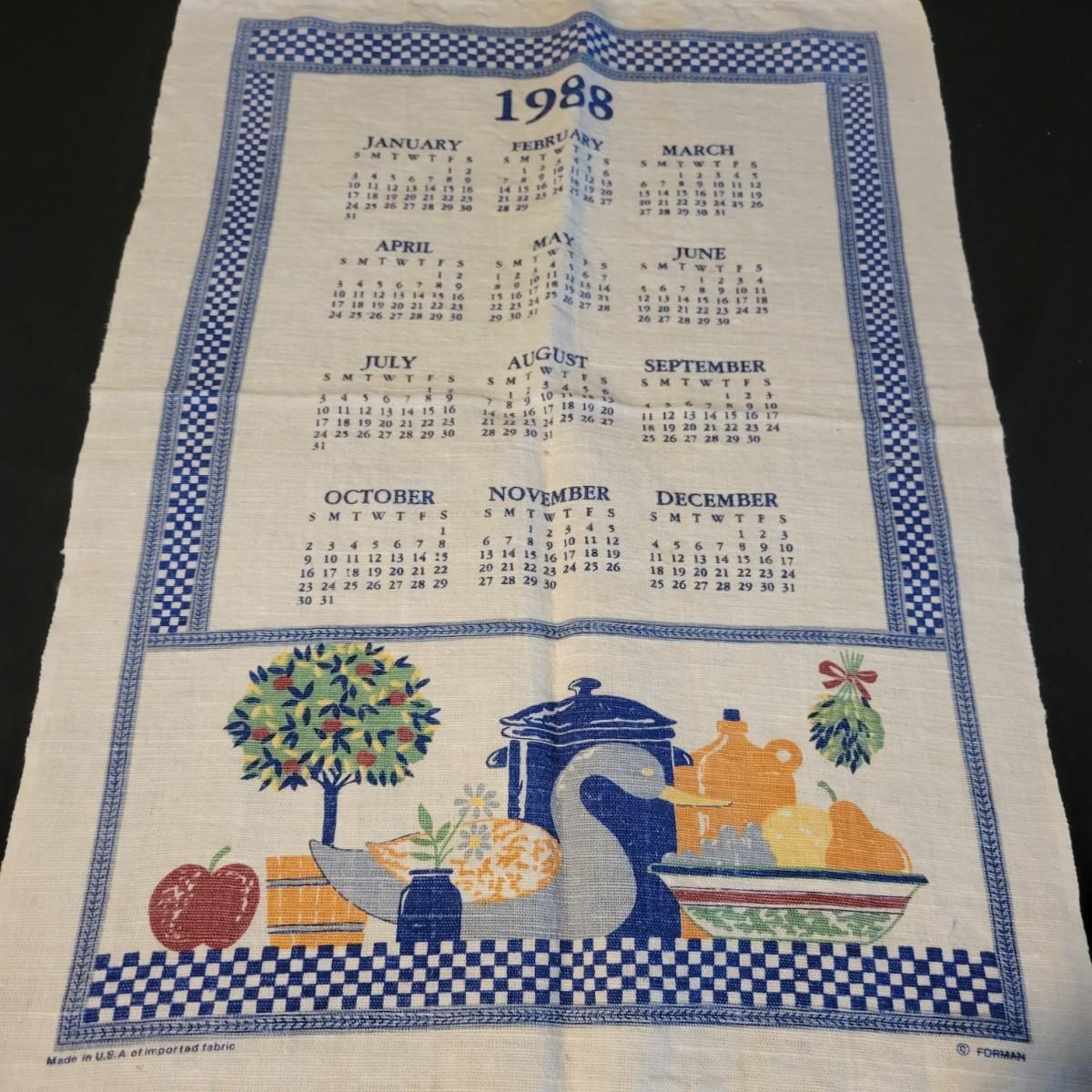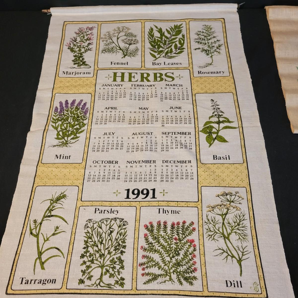 A large assortment of vintage calendars printed on linen and plates. Ranging in dates from 1958 to 1992, many of the linen calendars have nature, herb or seasonal motifs. This lot includes 3 plates and a wooden scroll calendar. There are 16 linen calenders and one seasonal calendar made of felt. Most pieces are in good condition, but a few do have minor stains. Shipping available