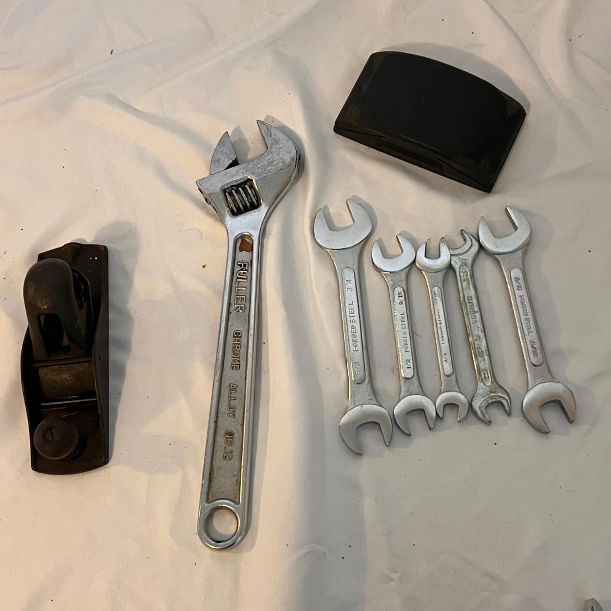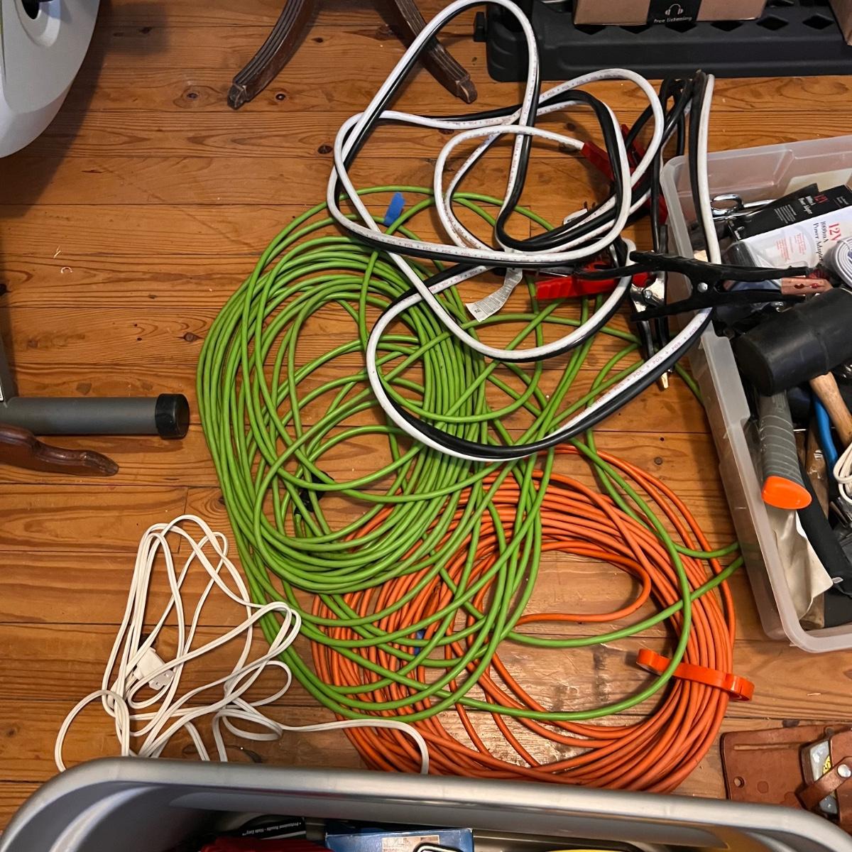 This handy large lot of useful items includes tools, hardware, paintbrushes, extension cords, jumper cables and much, much more. See inventory for everything, tubs (no lids) included. No markings found on the planer.