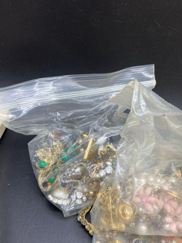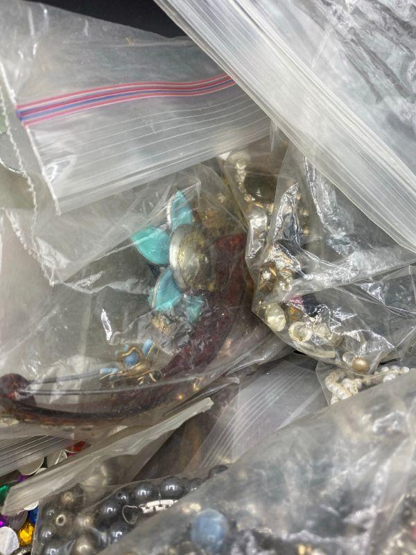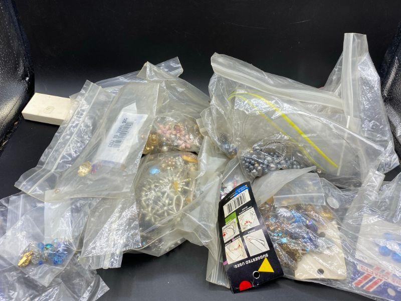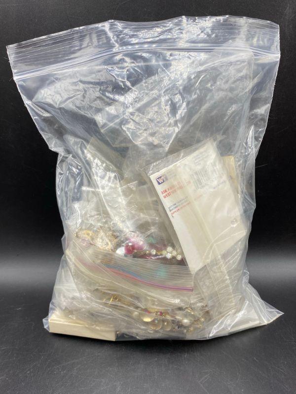 Large bag of jewelry findings. Broken pieces, rhinestones, and other odds & ends.