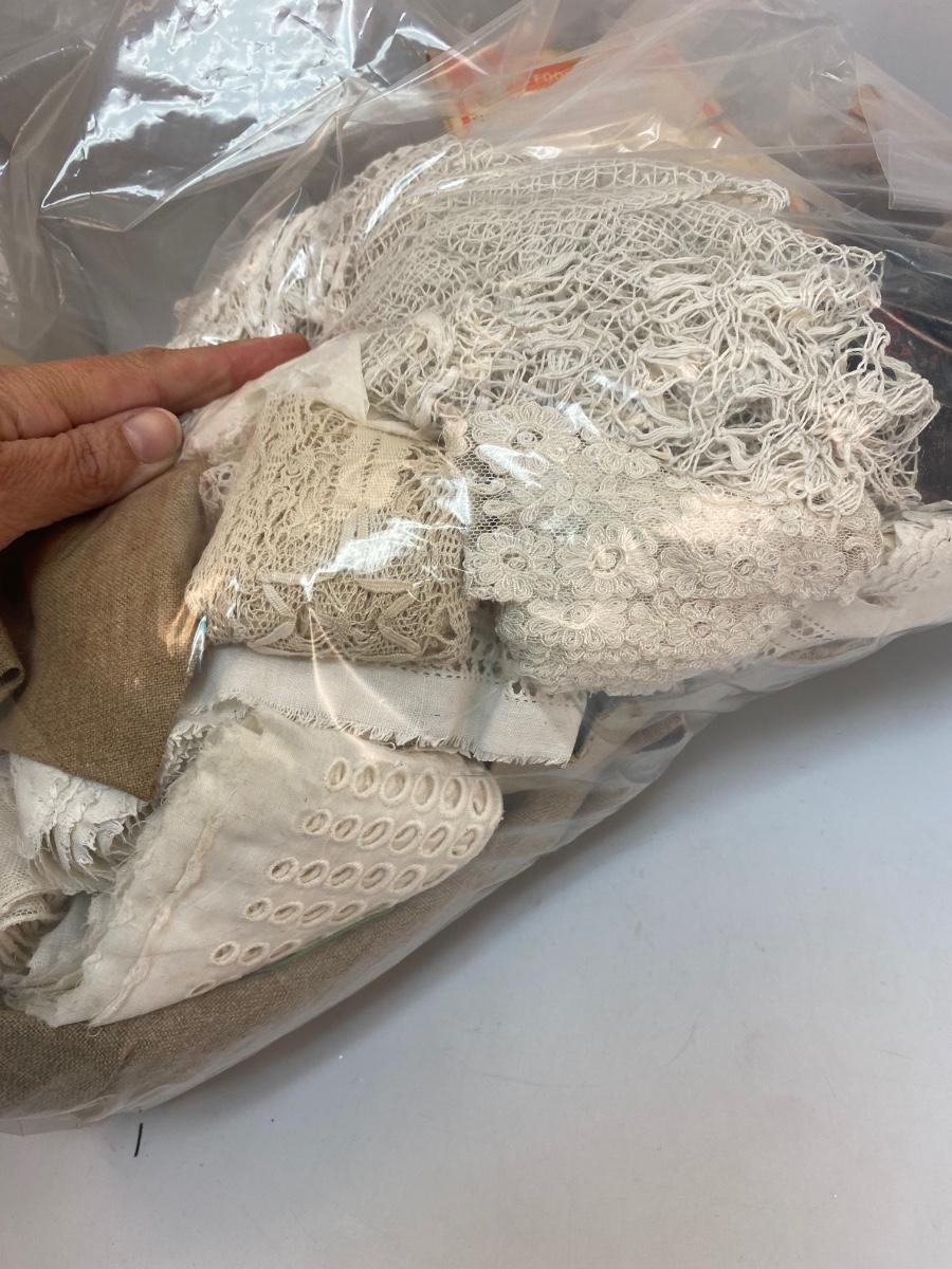 Large Bag of Mixed Vintage Lace, Sewing Notions, & Linens