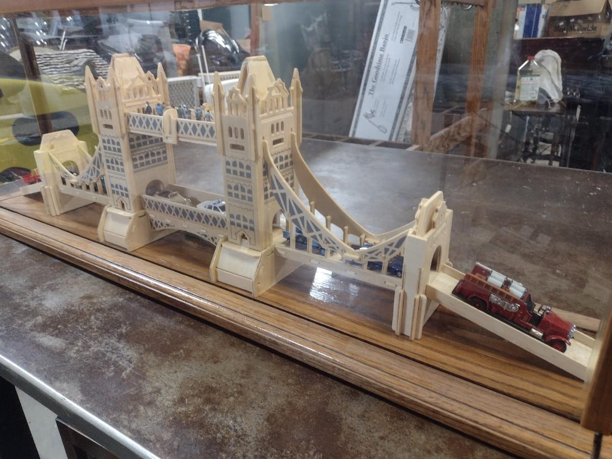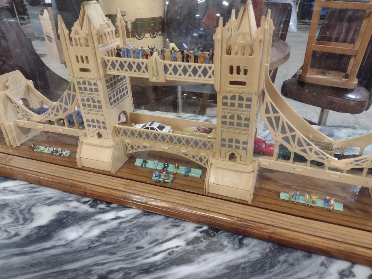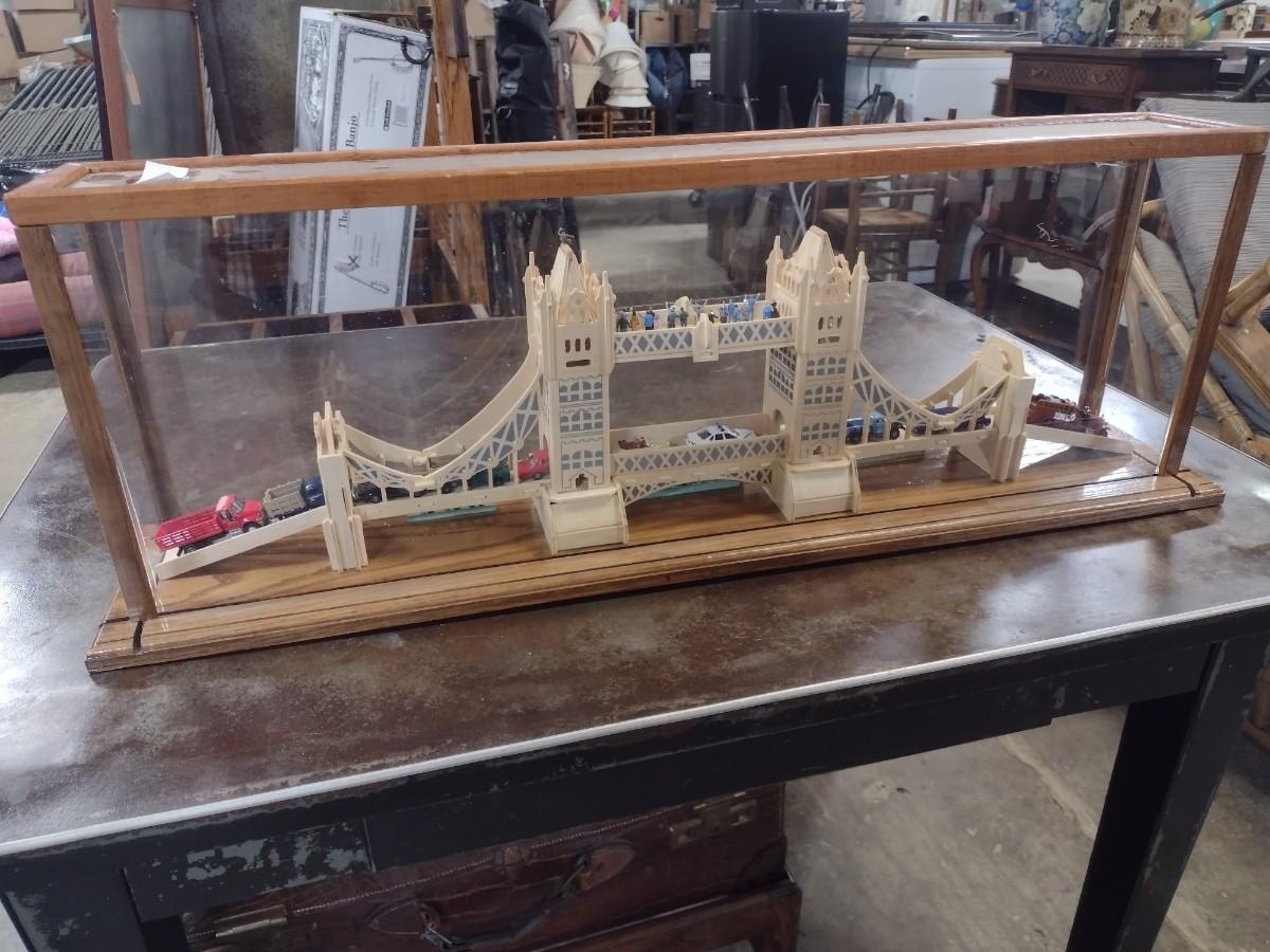 Large Balsa Wood London Bridge Diorama in Glass Display Case