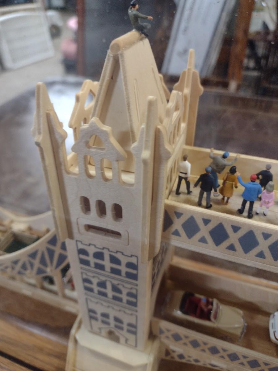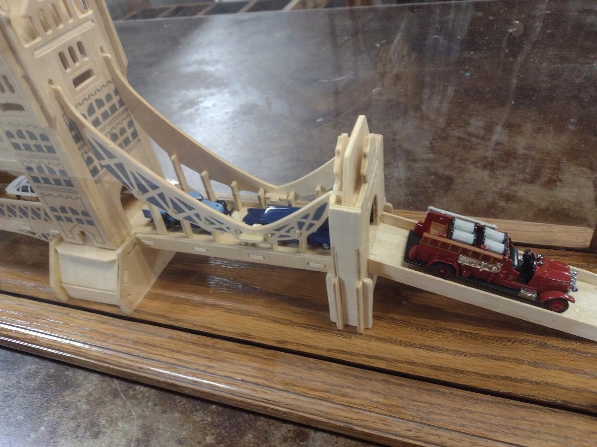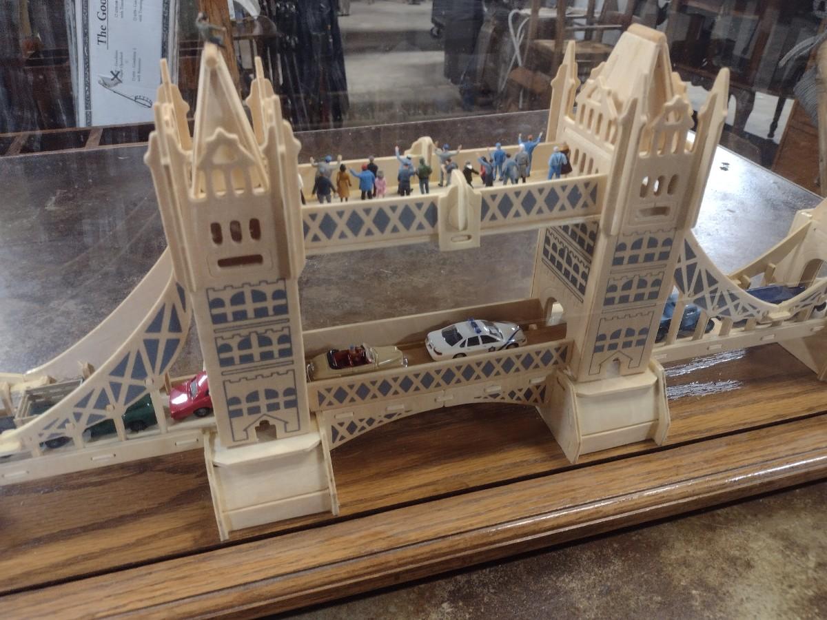 Large Balsa Wood London Bridge Diorama in Glass Display Case