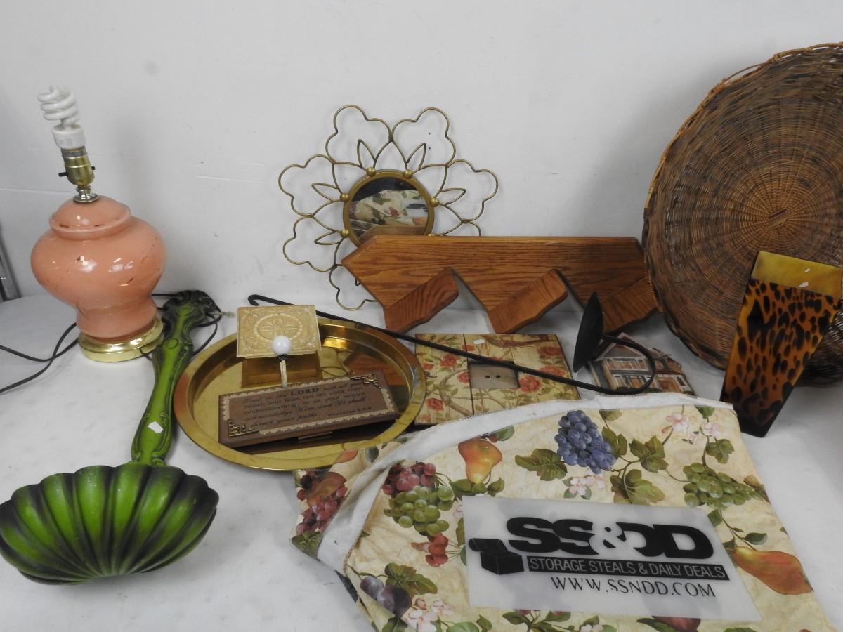 Large Basket, Pink Lamp no shade, other decorations