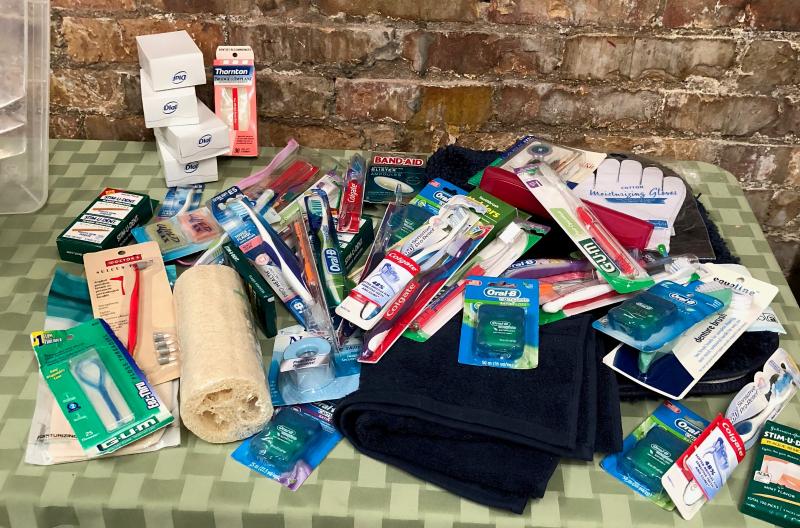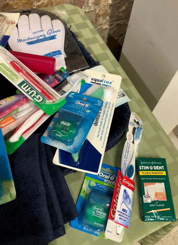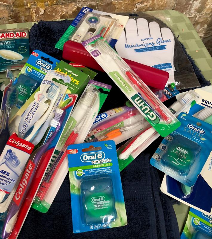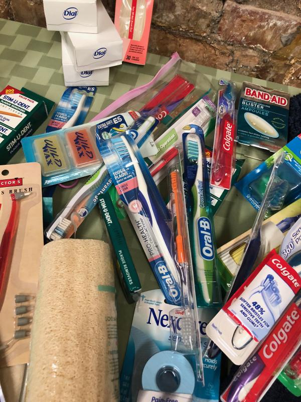 As shown in new condition...bathroom lot with rug..toothpaste..First Aid items....