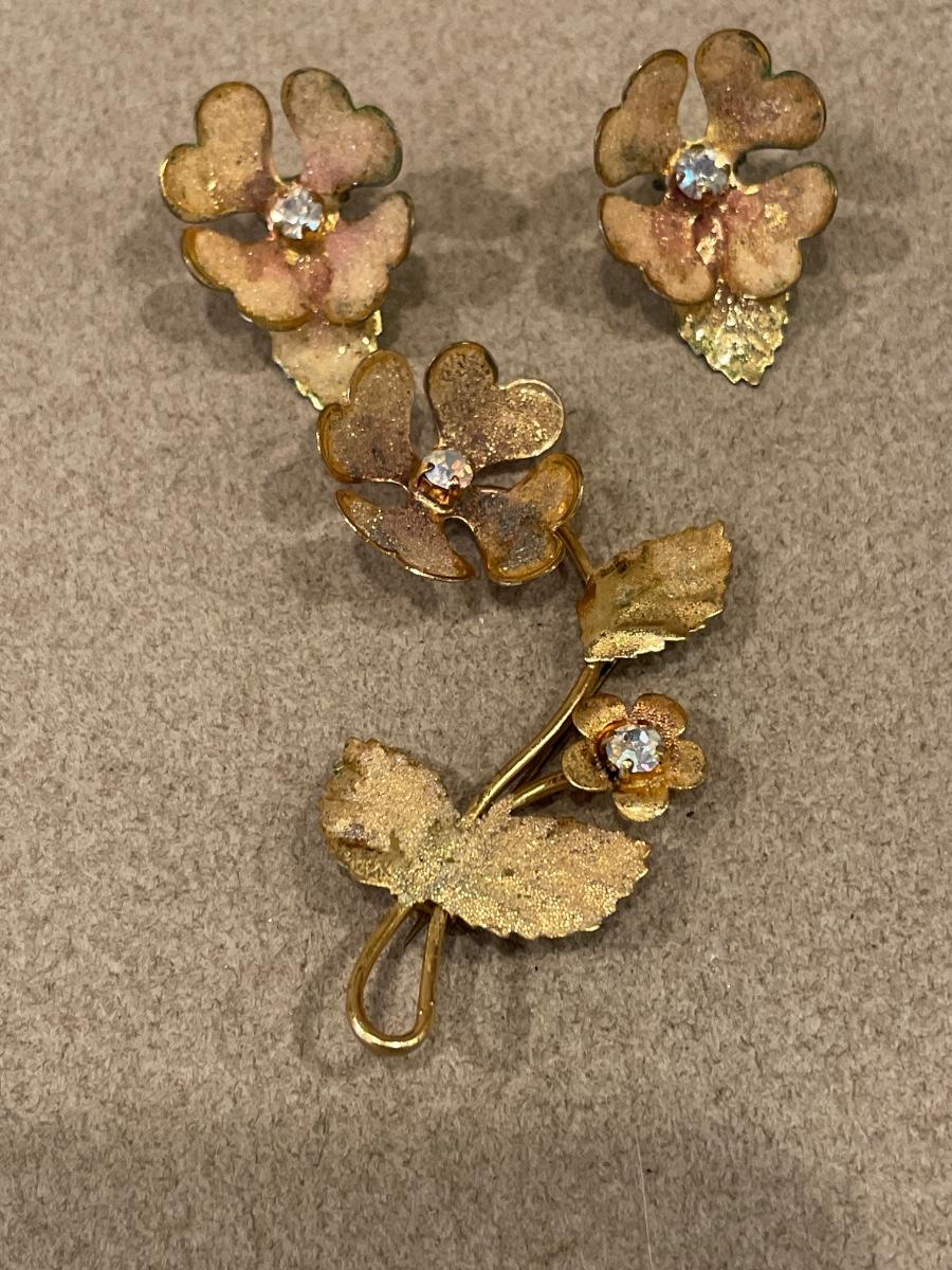 1 vintage brooch and clip on earring set