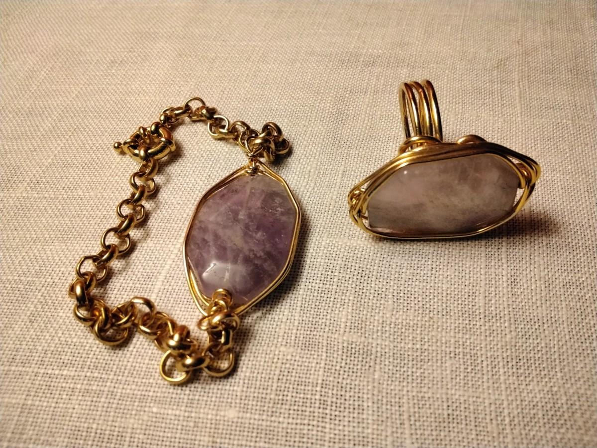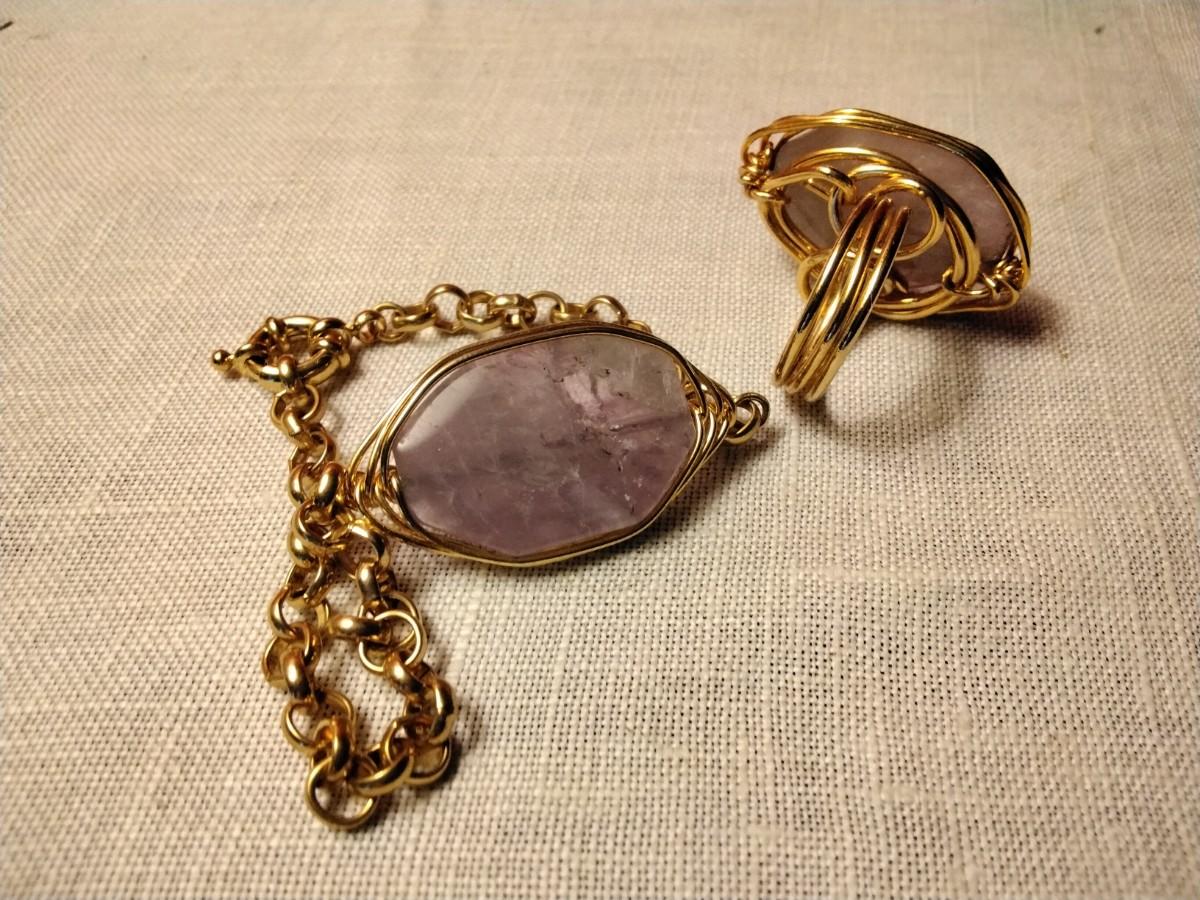 Large Beautiful Amethysts Ring (8) and Bracelet 7,5"