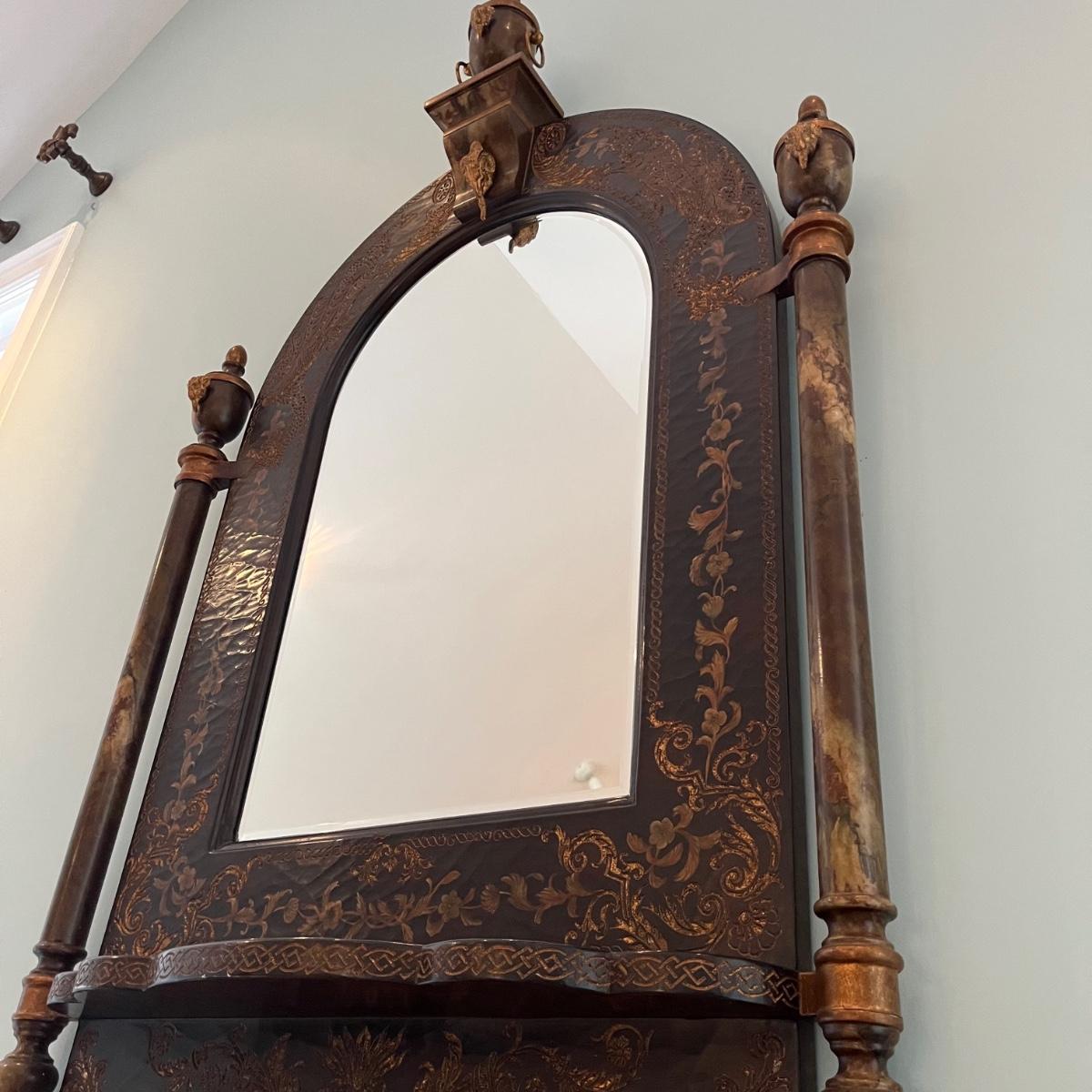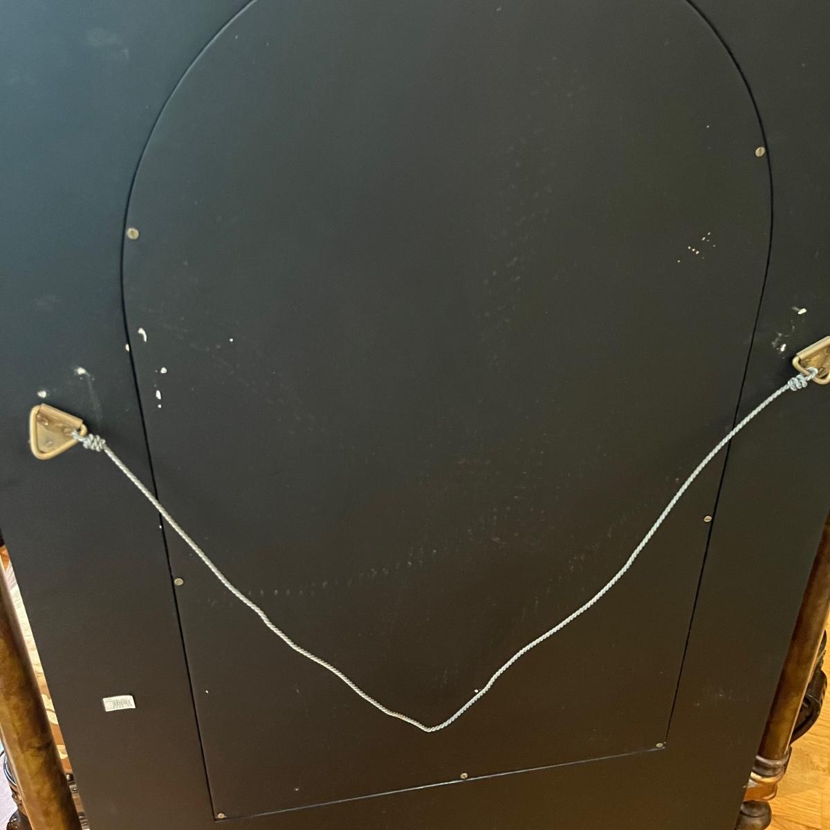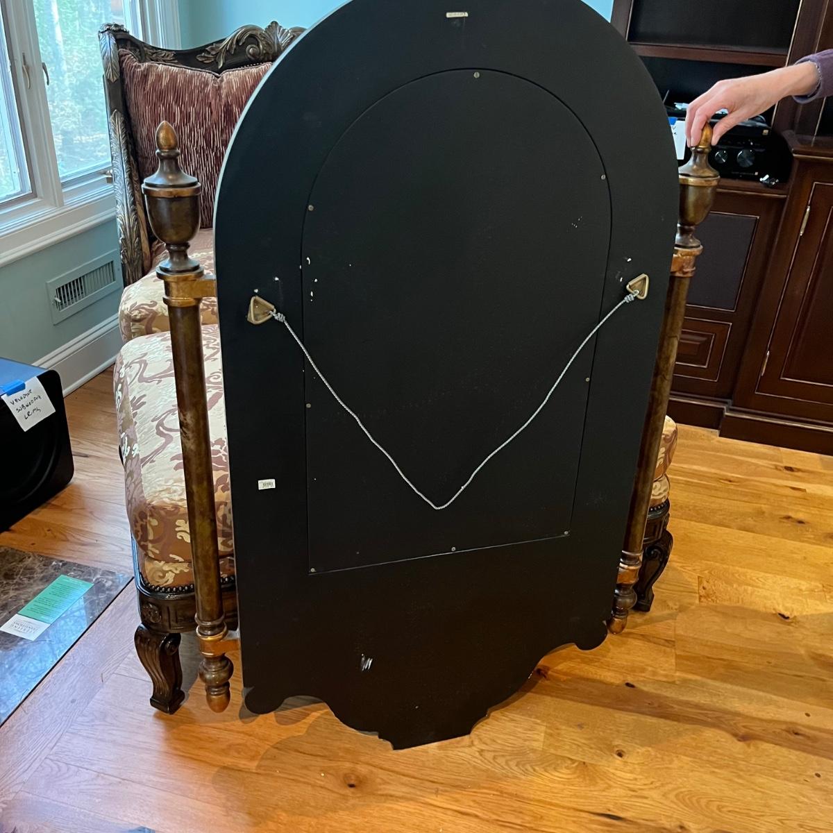 Lot includes a large arched beveled glass mirror with what appears to be wood as the frame, see pictures. Piece measures 36” x 7.5” x 66”H.
