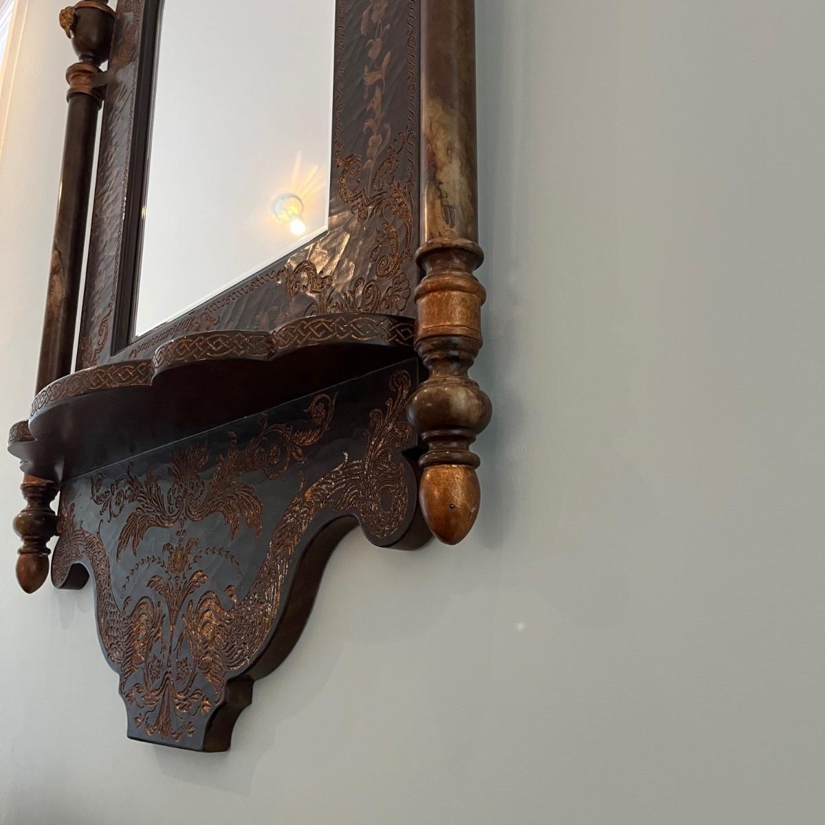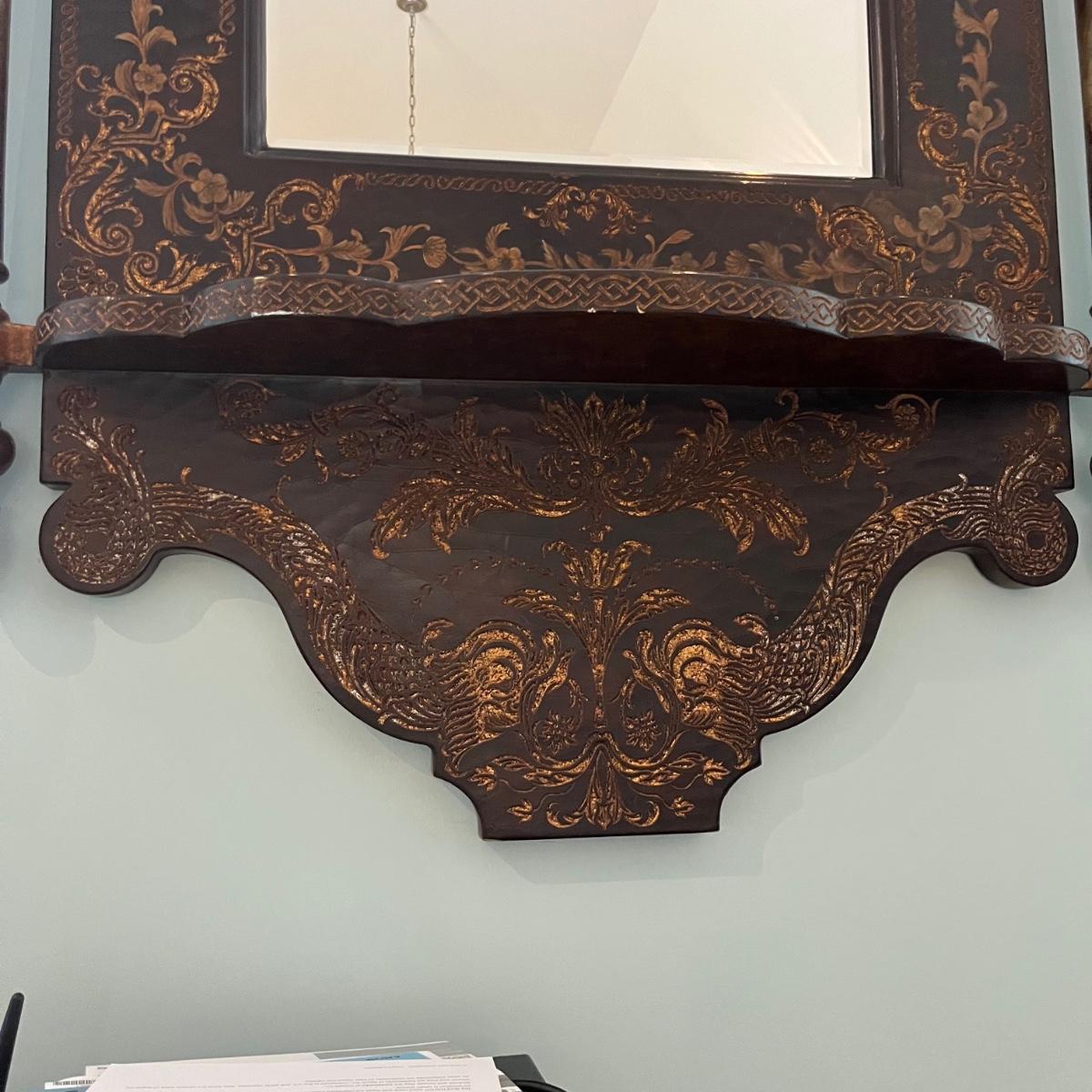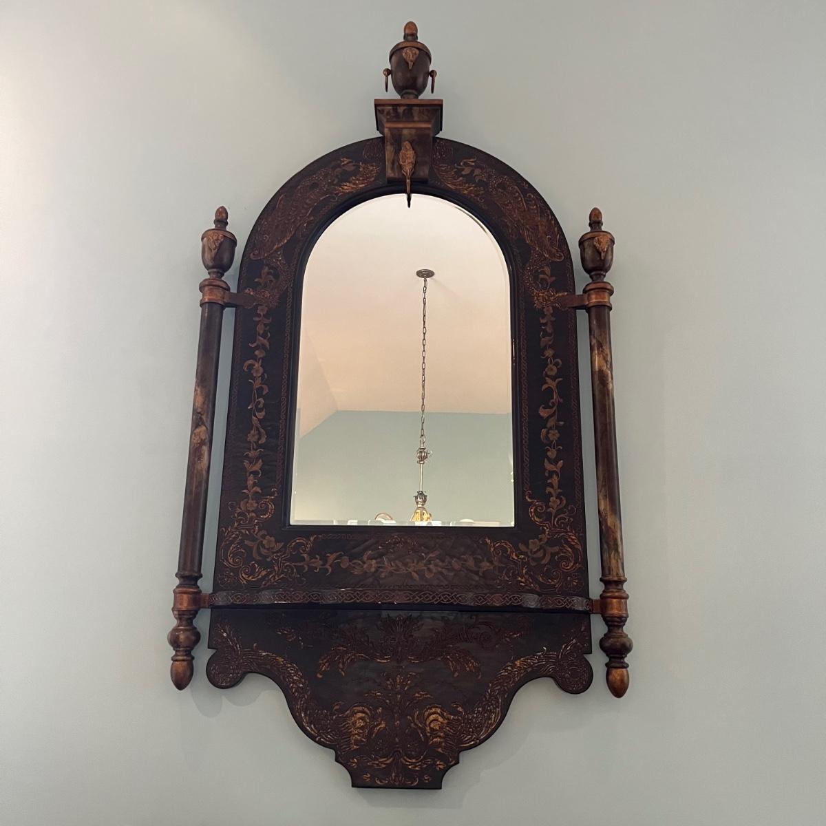 Lot includes a large arched beveled glass mirror with what appears to be wood as the frame, see pictures. Piece measures 36” x 7.5” x 66”H.