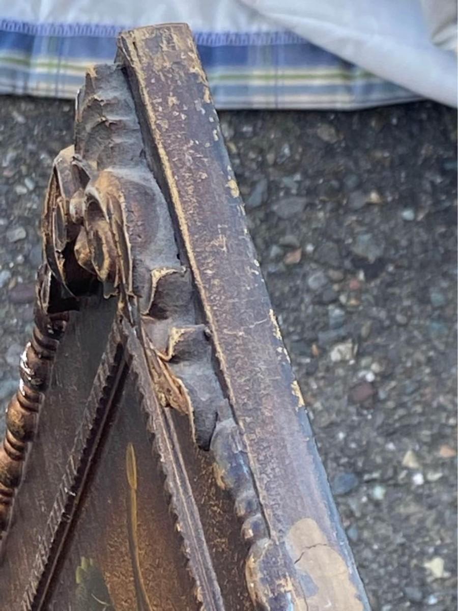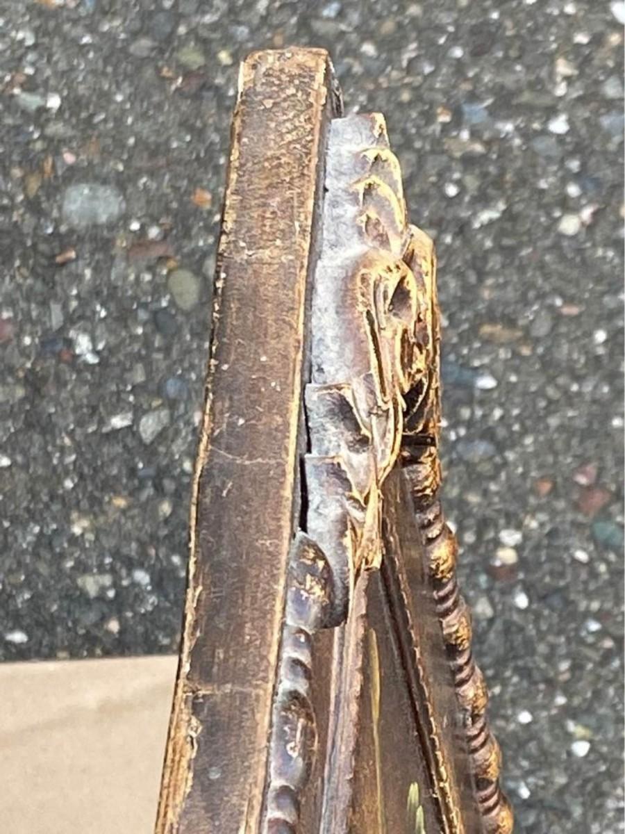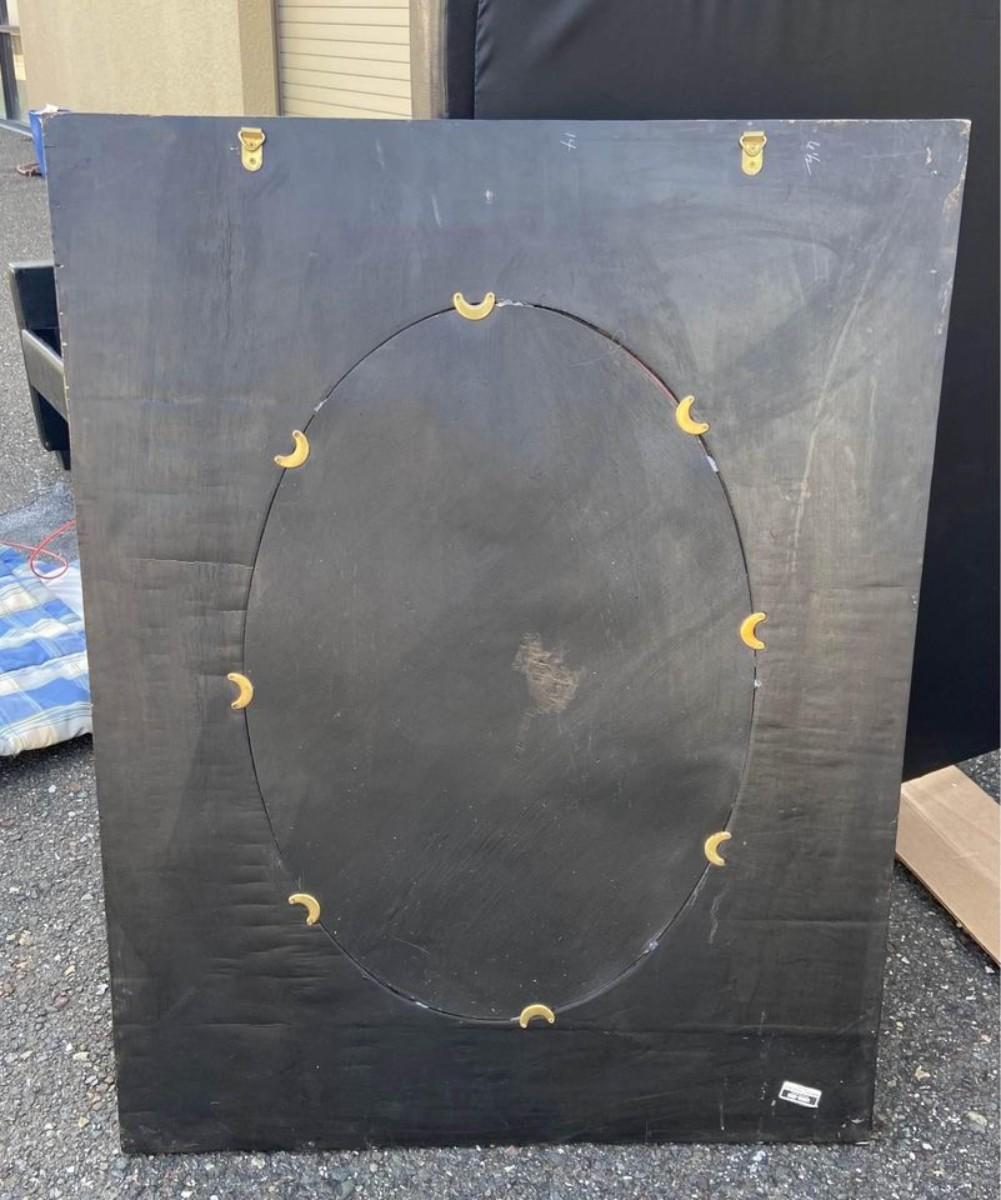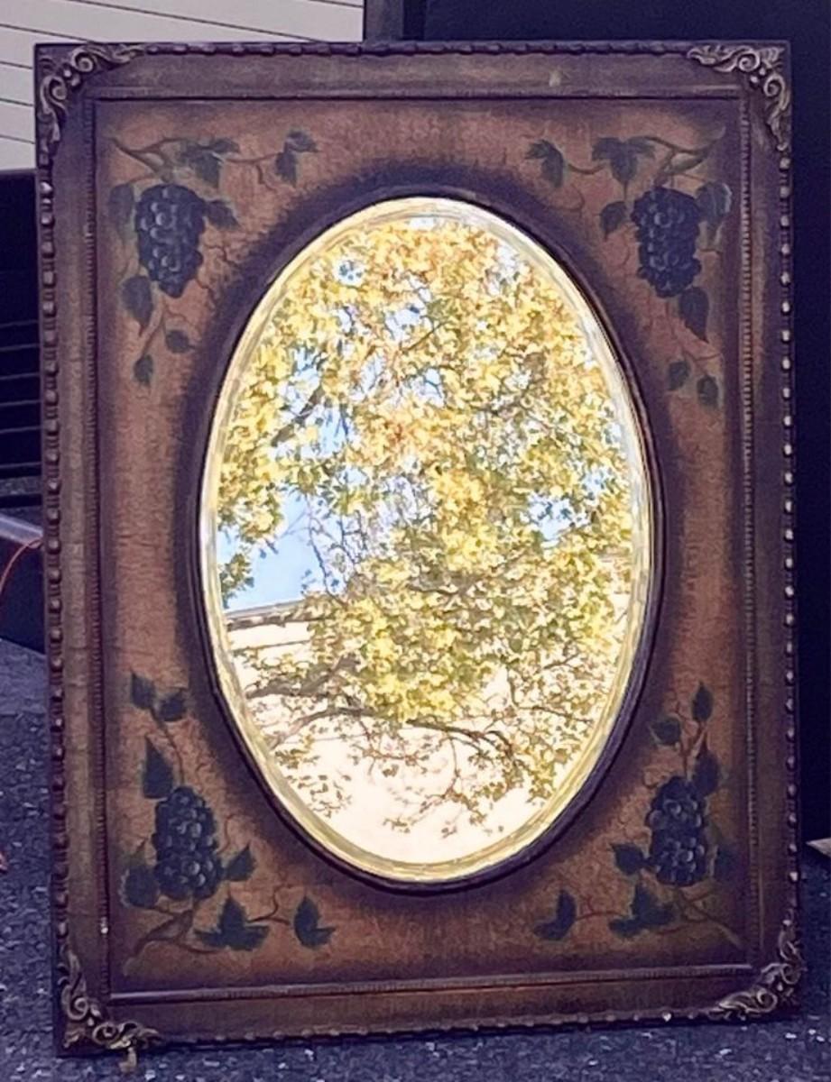 Large beveled oval mirror with rectangle frame. Has a few scratches on the outside edges of the frame. Please see photos.