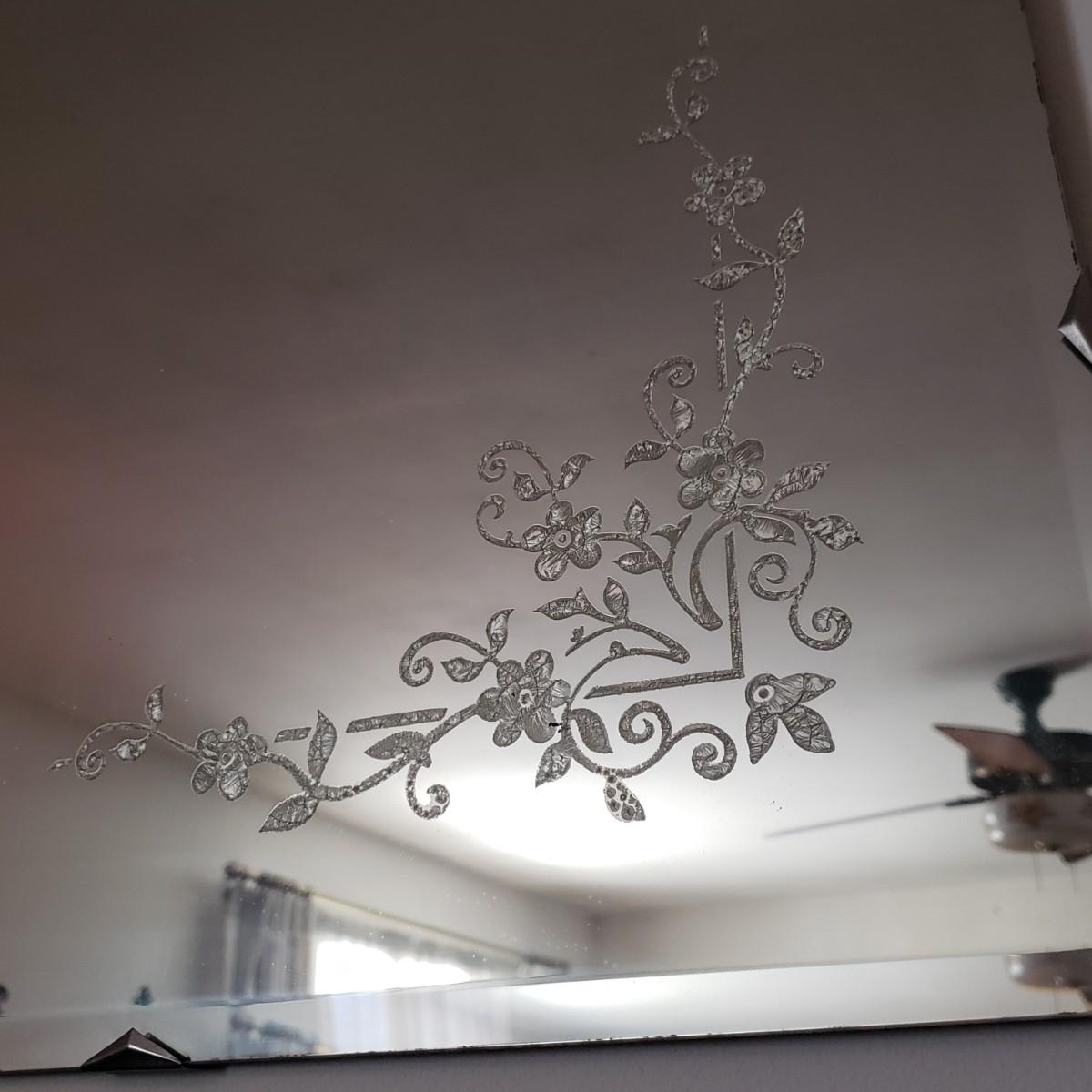 Large Beveled Mirror with Frosted Flowers (LR-KD)