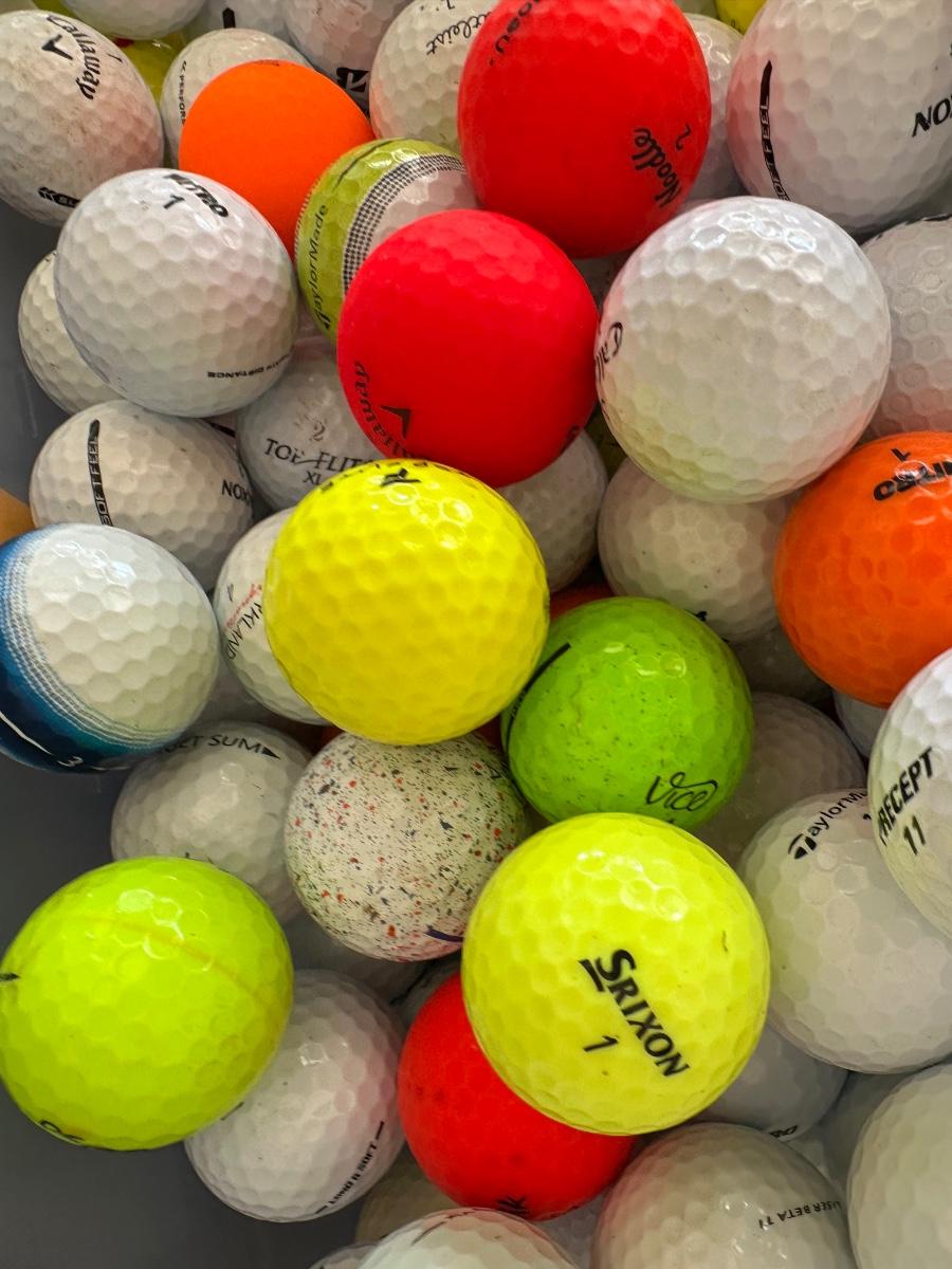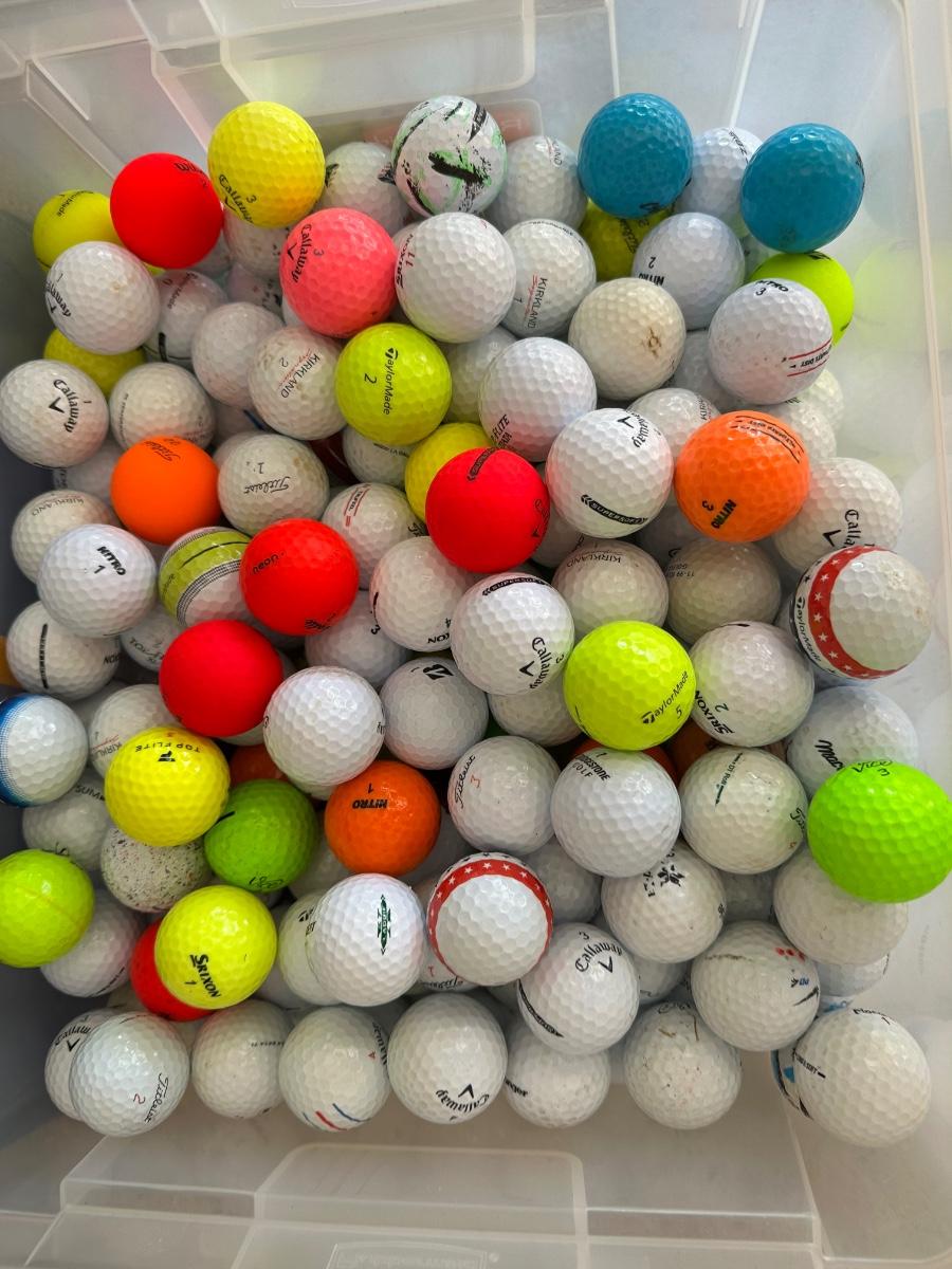 Large Bin of Mixed Golf Balls – Various Brands & Colors