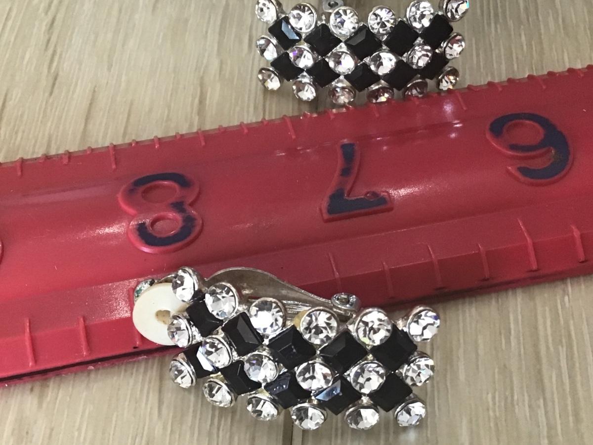 Large Black Glass Rhinestone Clip ons