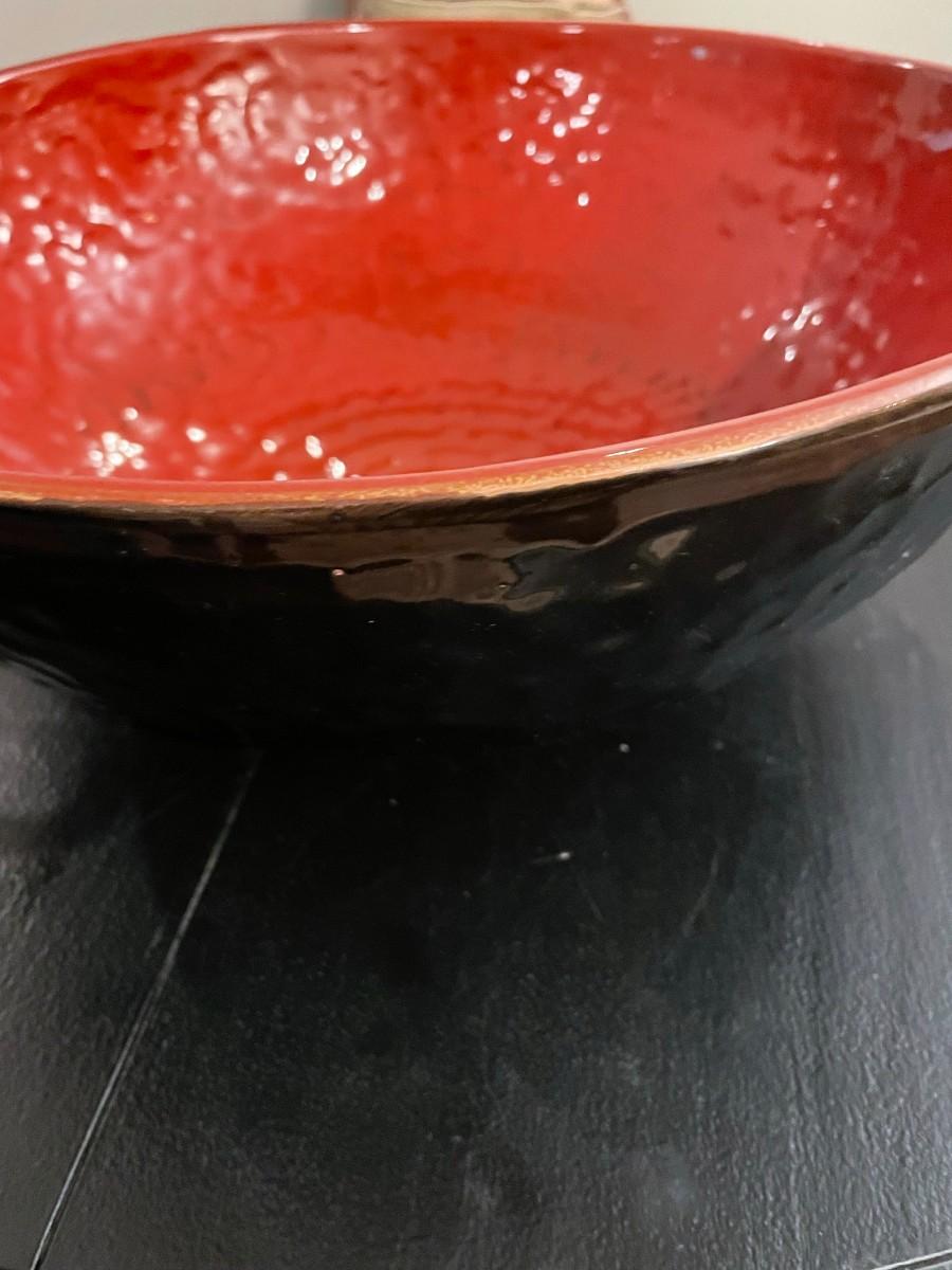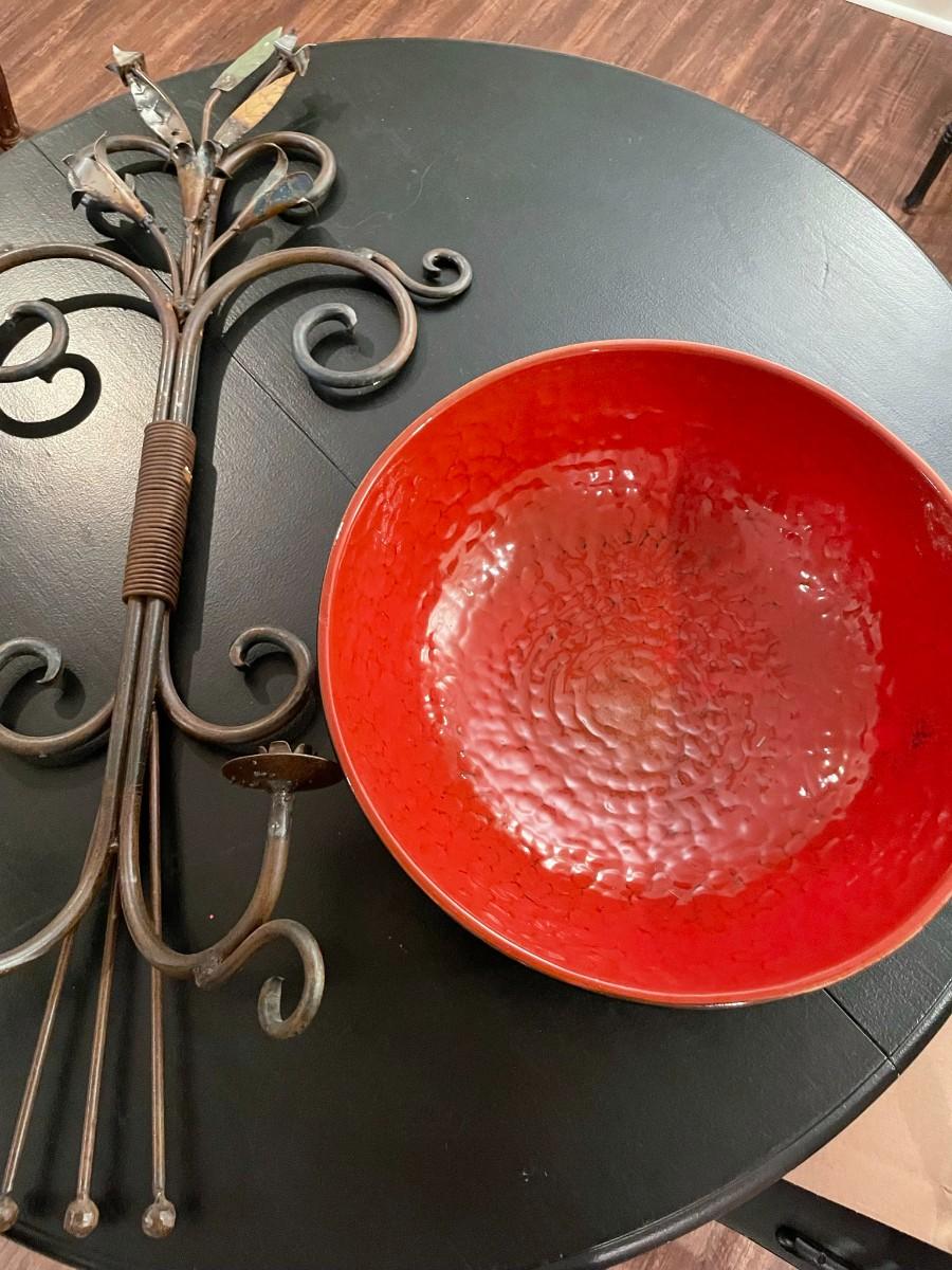 Large Black/Red Bowl, Candle Holder Metal Wall Art