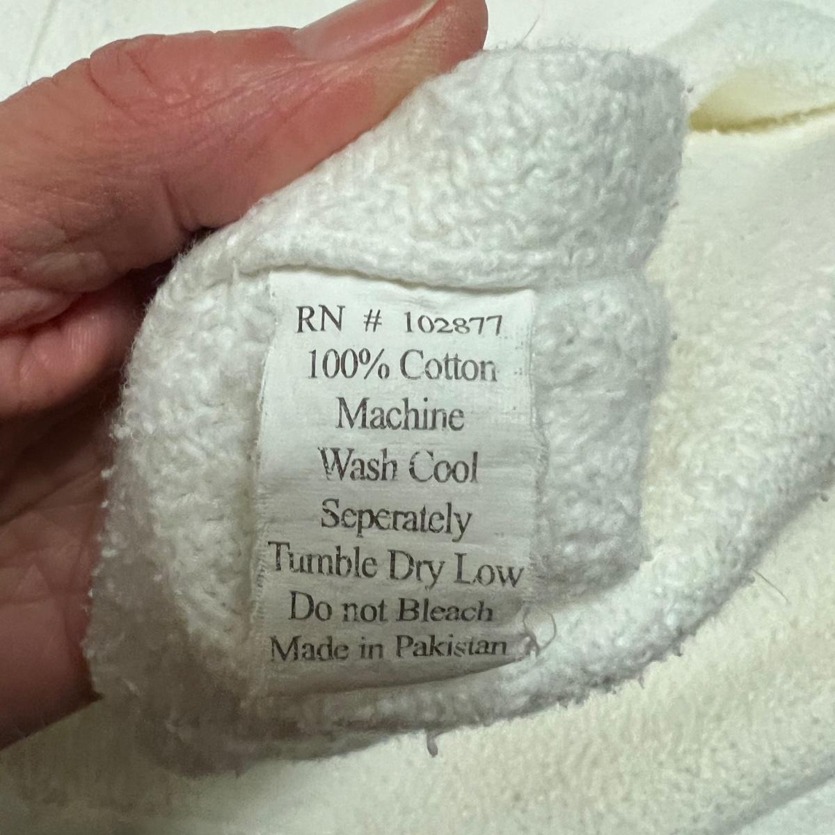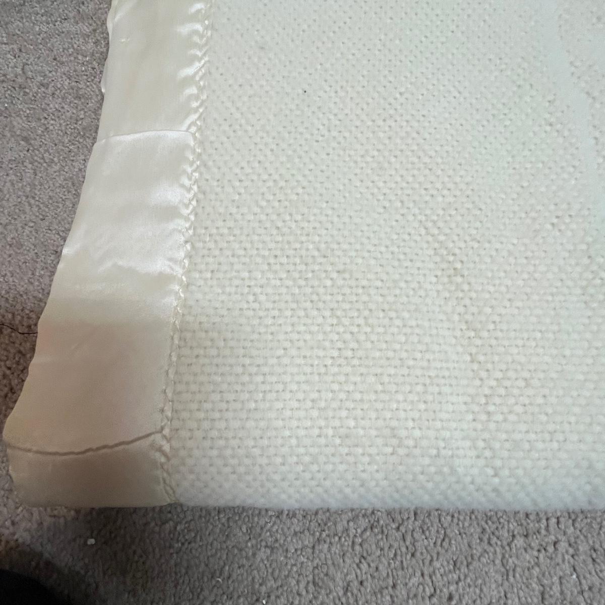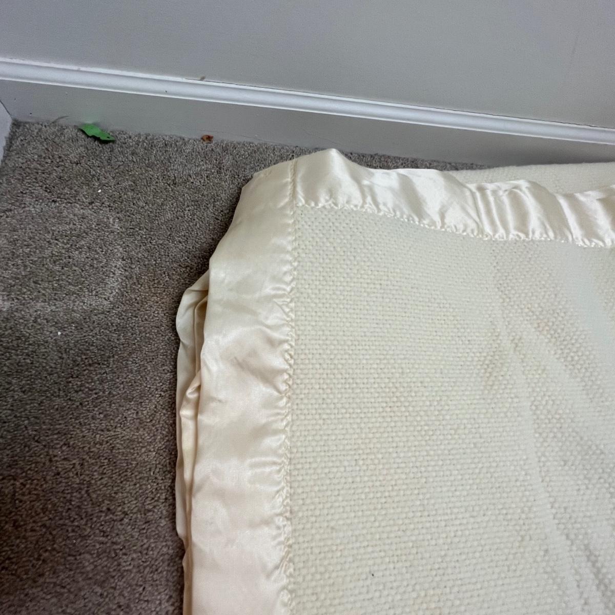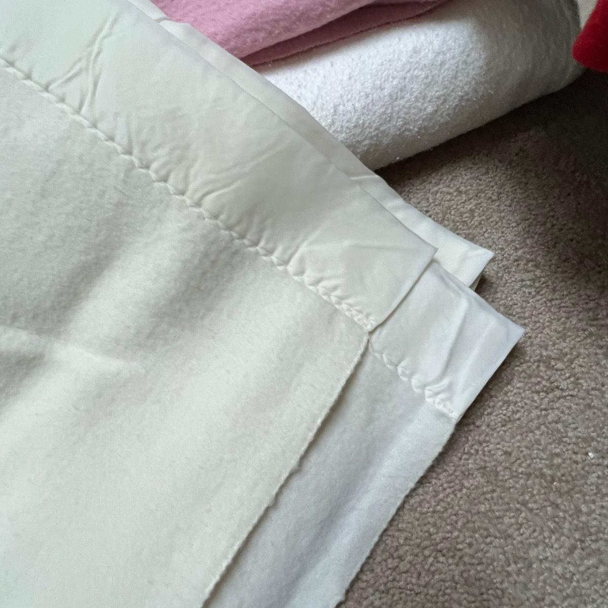 Four large blankets in this lot. The largest is photographed on a king sized bed (bed not included) and measures 90” x 108”. Any labels found are in images. Note that there is some light yellowing on the one blanket.