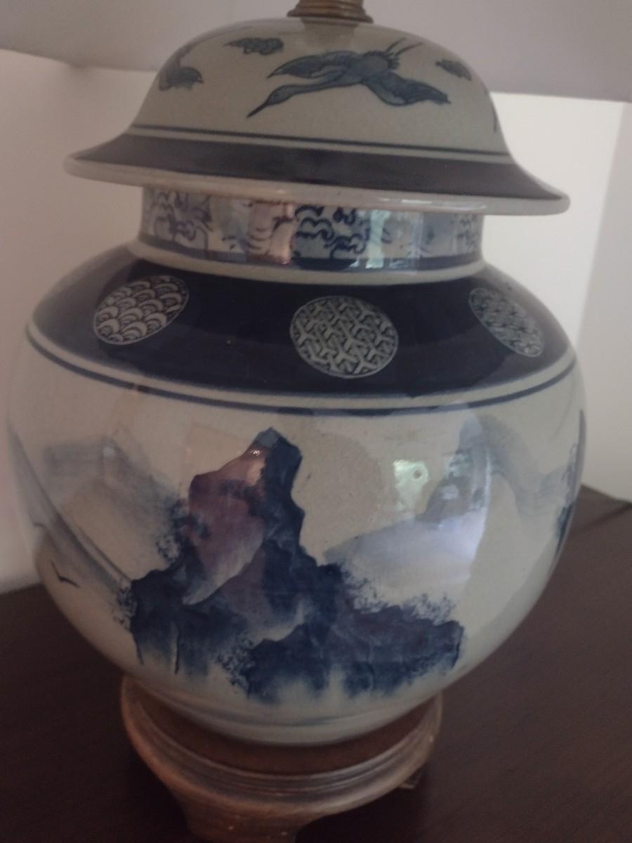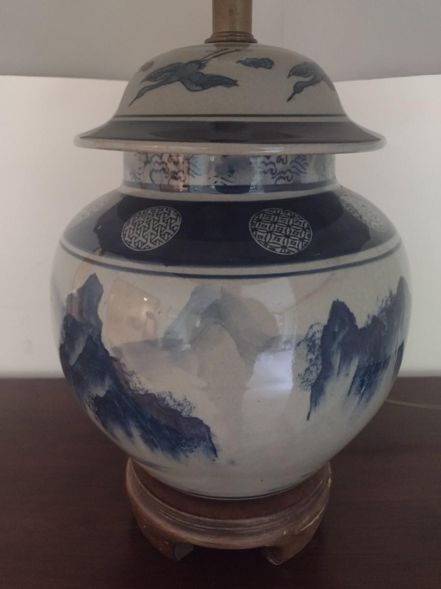 Large Blue and White Ceramic Ginger Jar Table Lamp