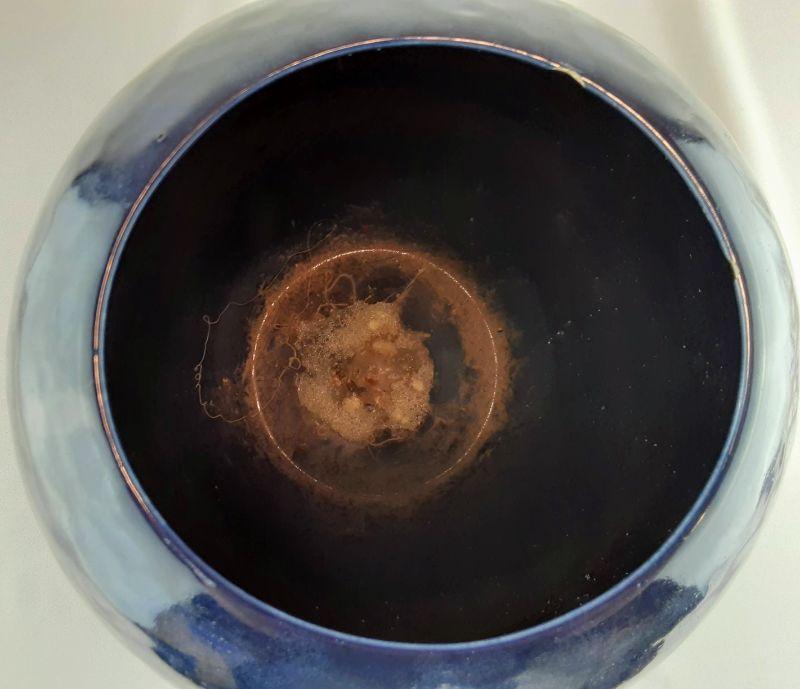 Shiny planter that measures 8in. tall and 5.5in. across. There are two chips in the inside rim.