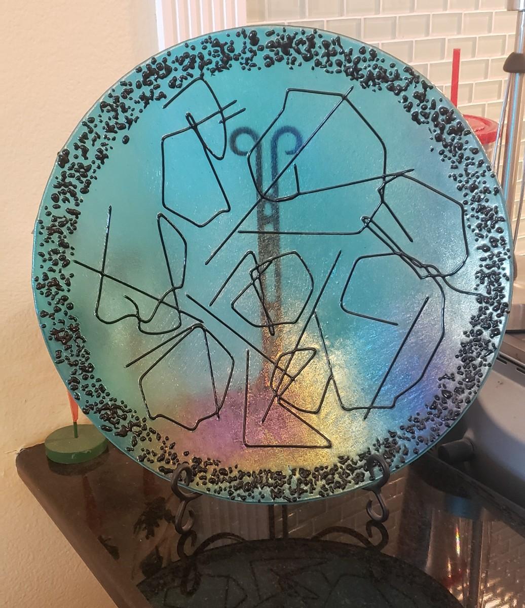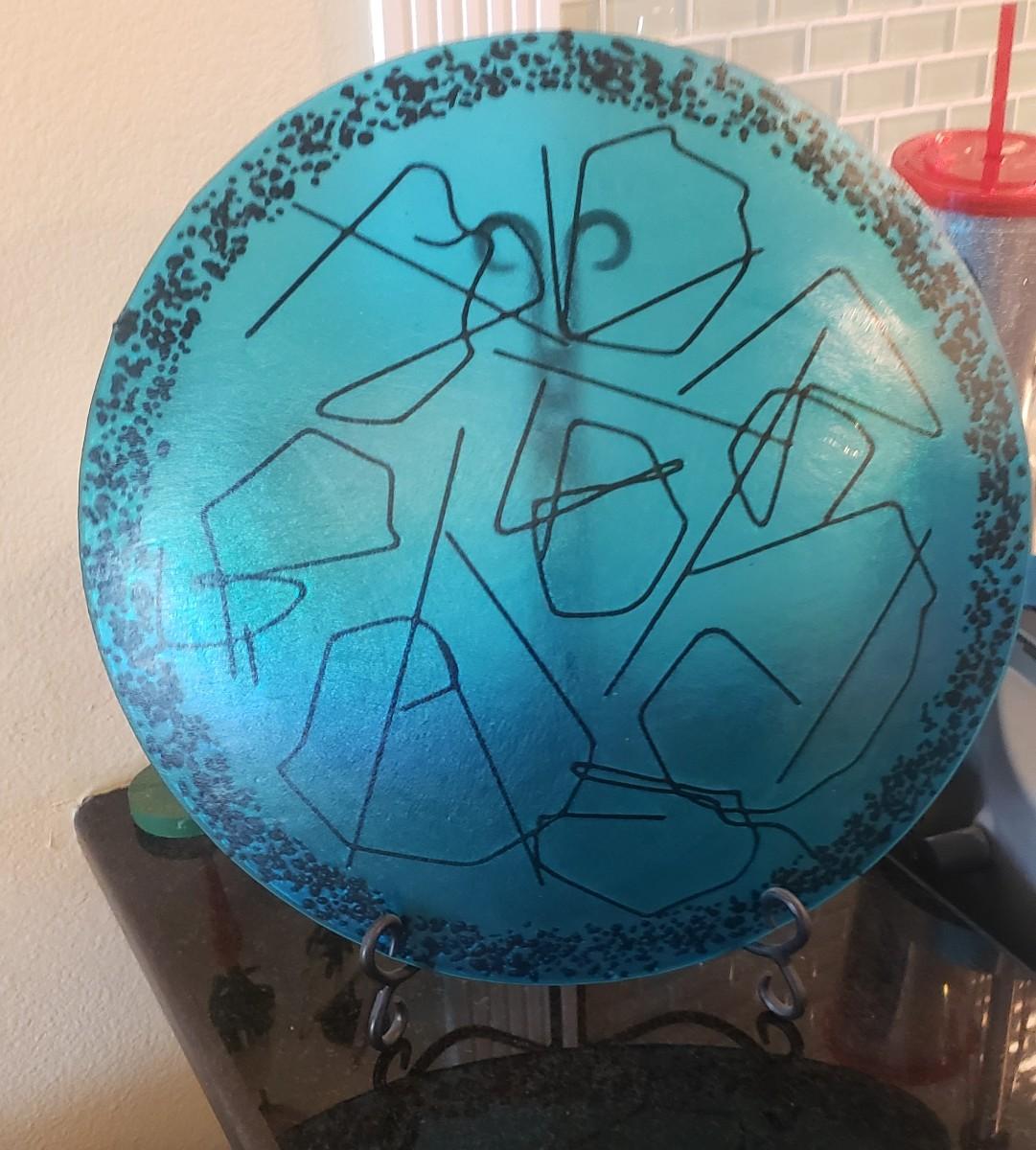 Large Blue Decorative Plate with Stand