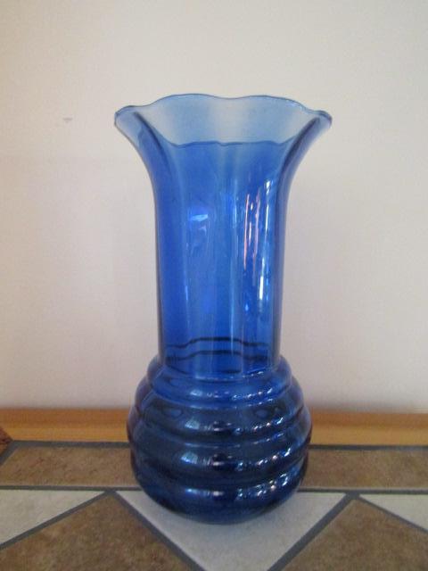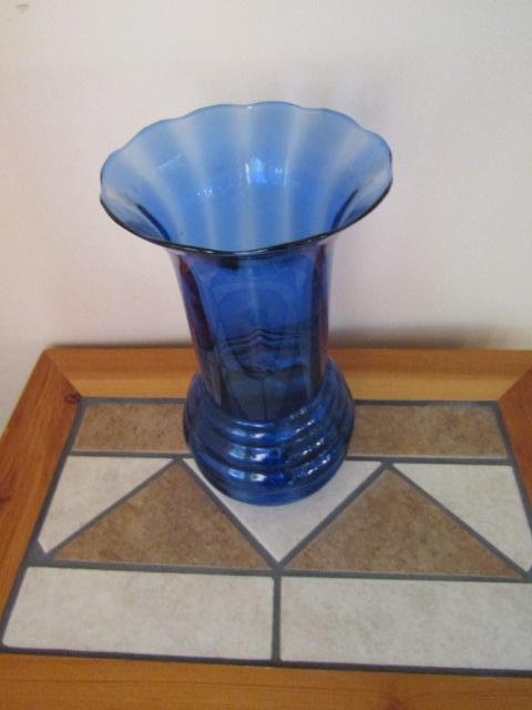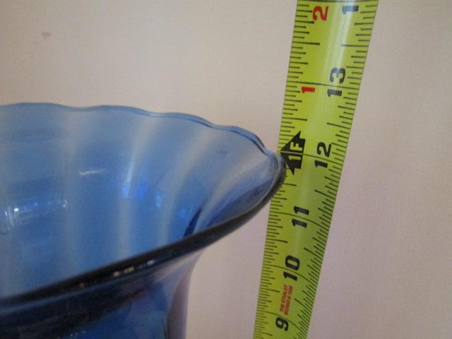 Large, Blue Glass Vase- Approx 12" Tall