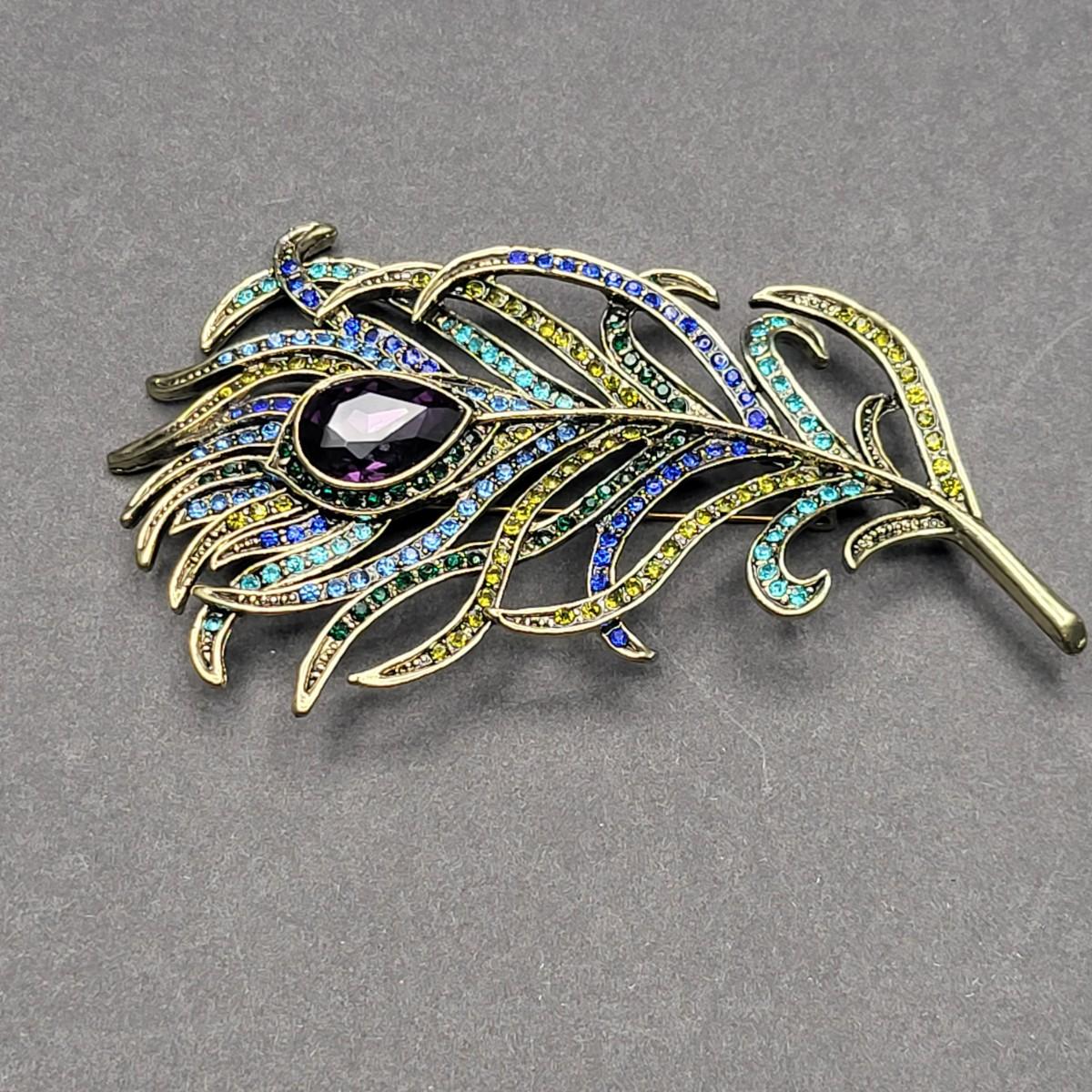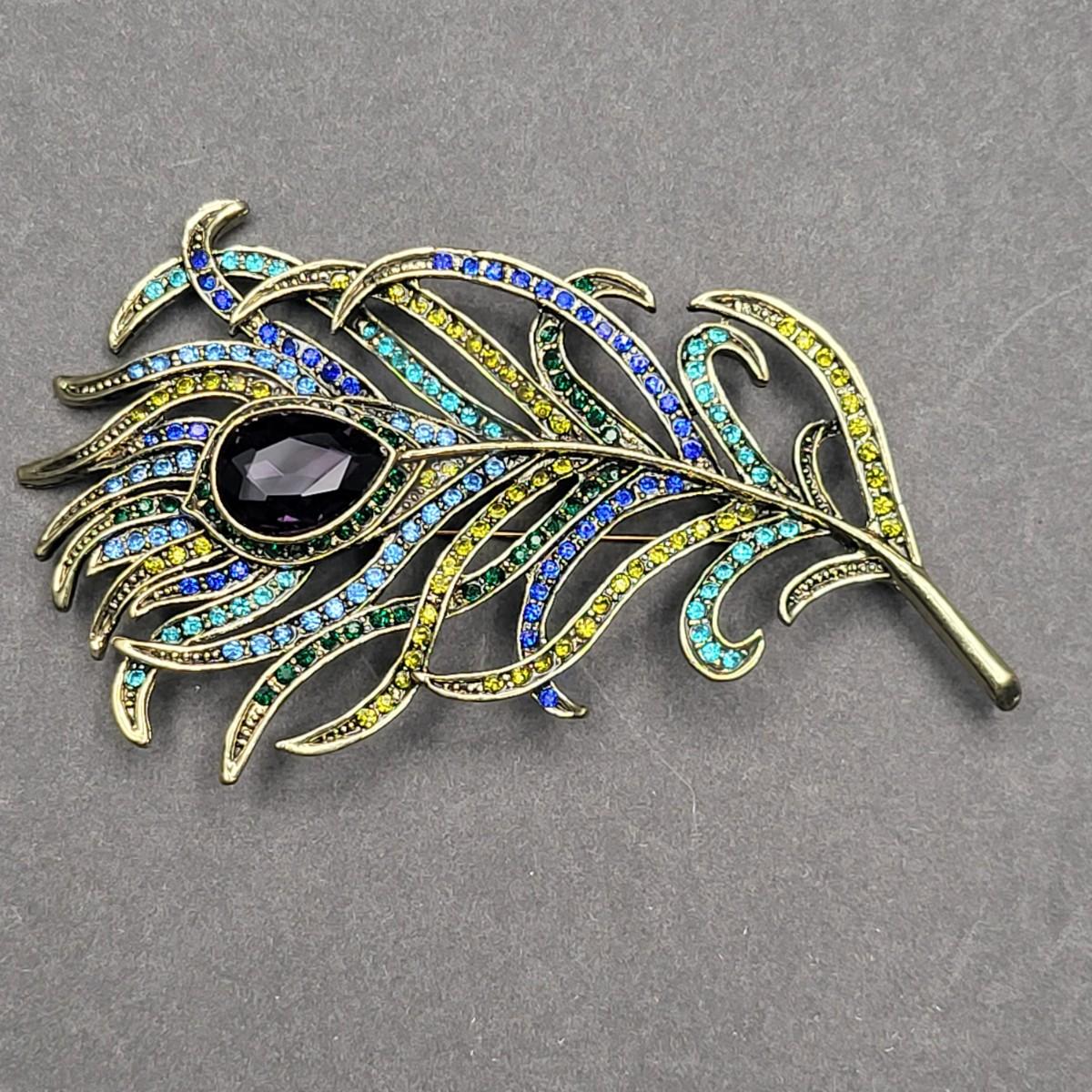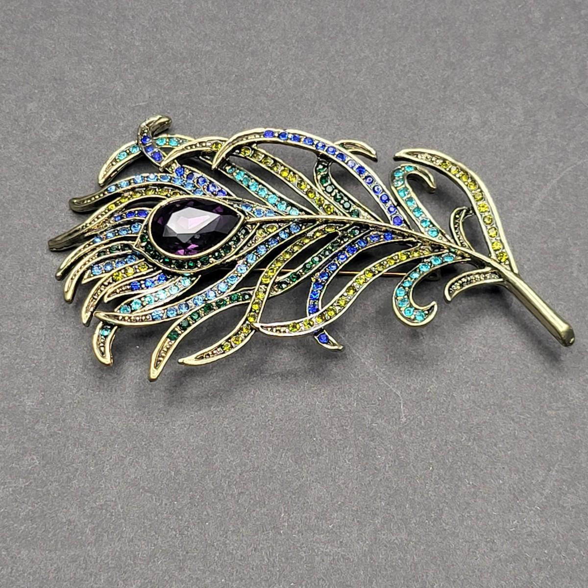 Large feathery spray pattern fashion brooch 4" x 2.5"