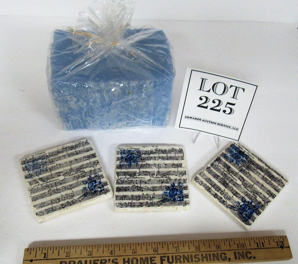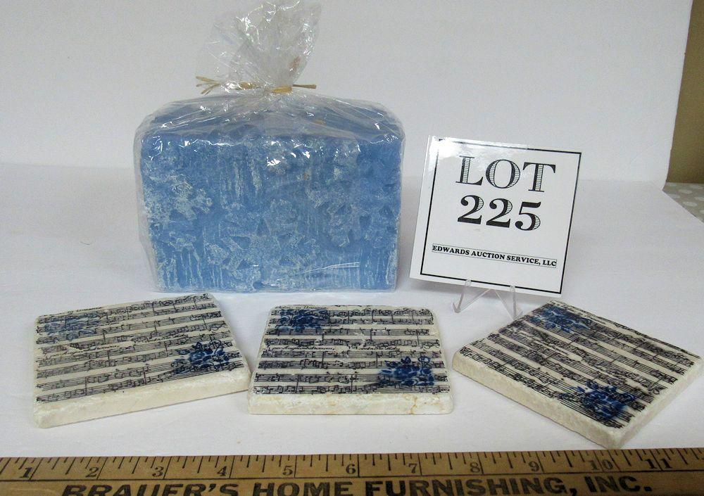 Large Blue Snowflake Candle and 3 Stone Coasters, Musical Theme